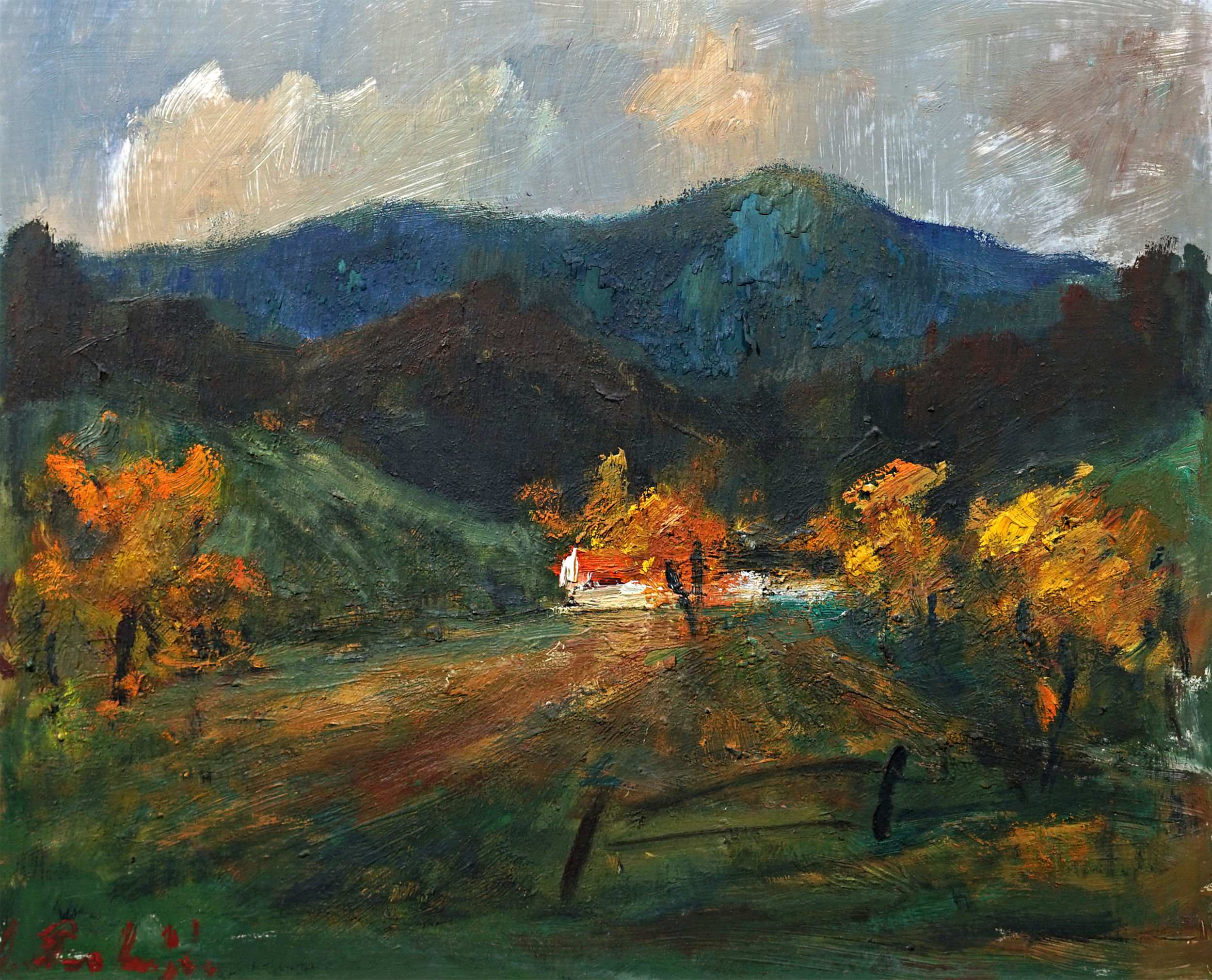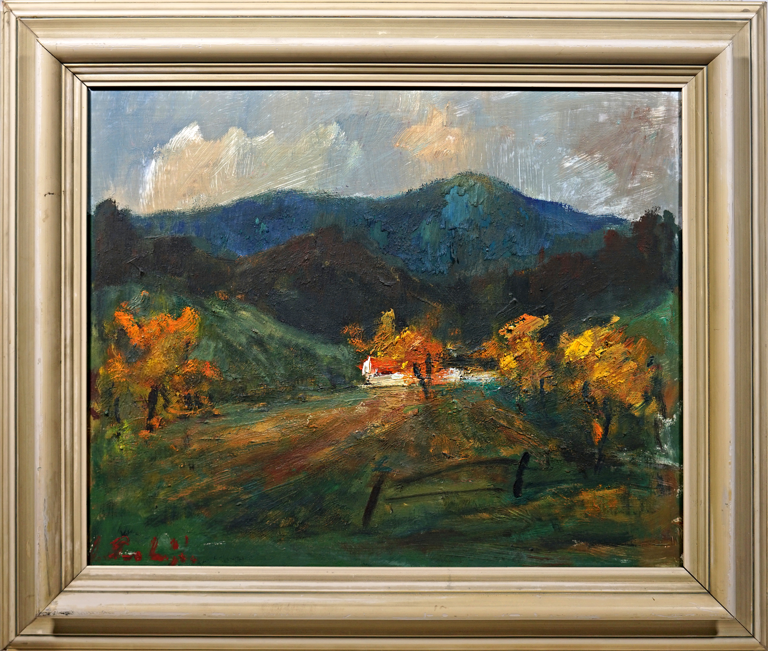 Technika: Olej na kartonu Výška: 42 cm, šířka: 50 cm, rámování: 54 x 63,5 cm Stav: Dobrý Signatura: signováno