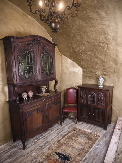 Ručně řezbovaná skříň z 18. století. Jemná florální řezba. Šatní skříň, která má uvnitř police. Spoje jsou na drážku, čep + kolíček. Velmi dobrý stav bez červotoče. Skříň je celá z masivního dubu (i záda a police). Zámek je funkční (novodobější) a klíč součástí. Skříň je pro převoz a stěhování možné demontovat na díly. Provenience: Holandsko – Maasland. Datace: druhá polovina 18. století.