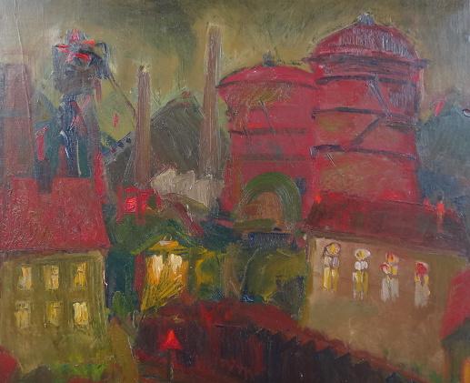 Olej na plátně 60 x 50 cm. Bílý rám 76 x 66 cm. Vzadu na rámu papírová etiketa s popisem díla.