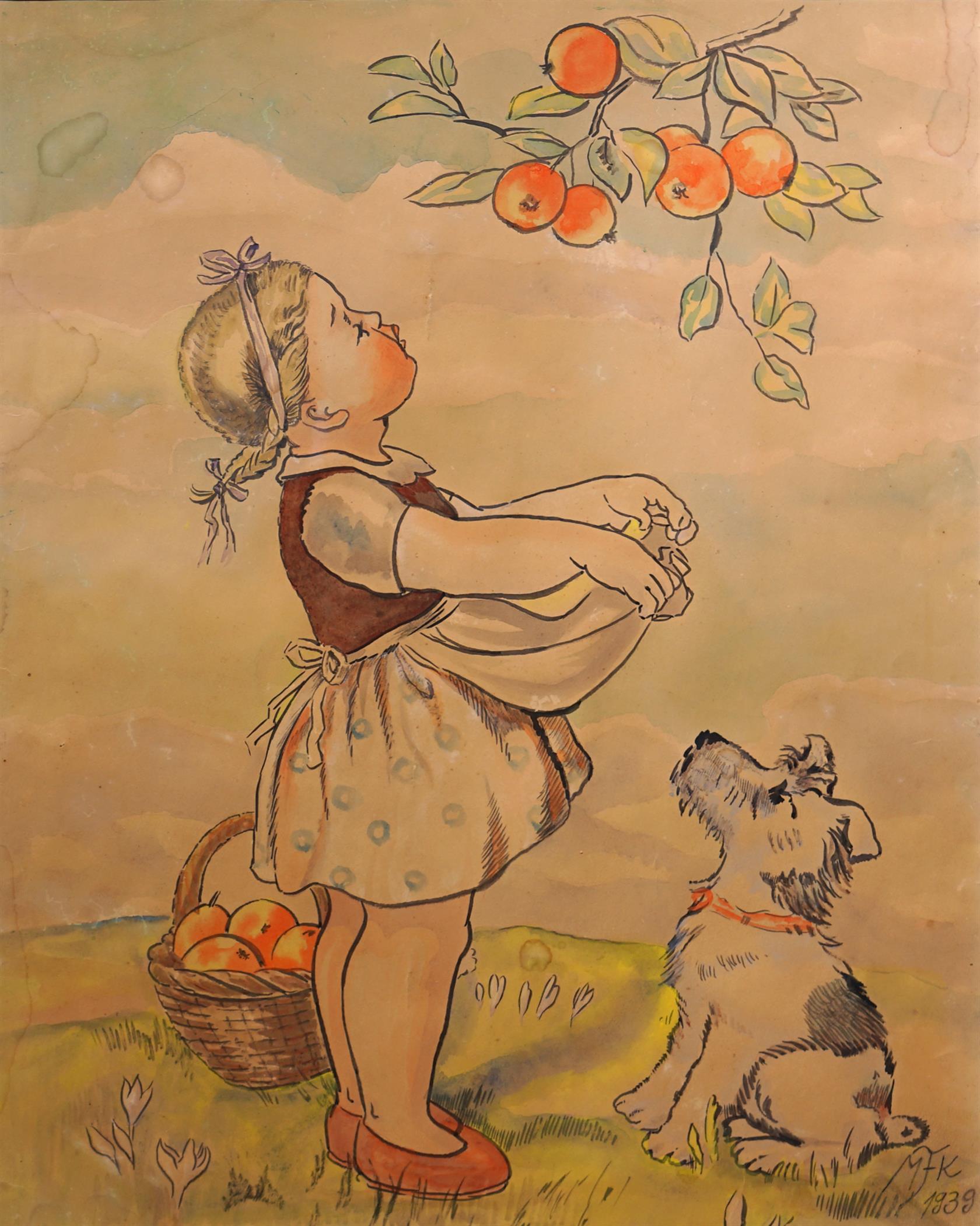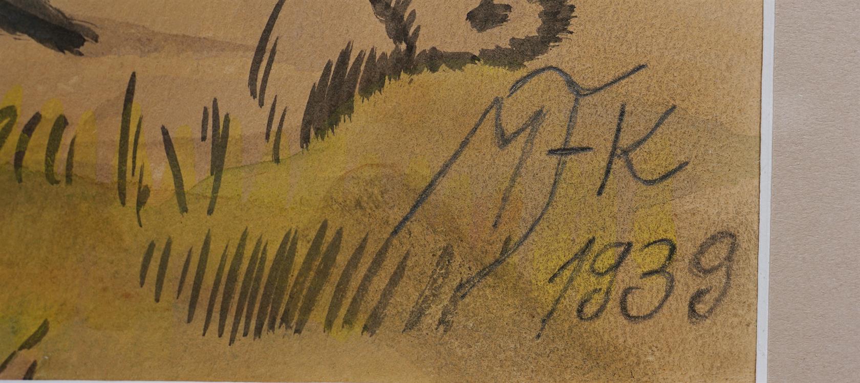 Technika: Akvarel Výška: 52,7 cm, šířka: 42 cm, rámování: 68,7 x 56,5 cm Stav: Mírně poškozeno Signatura: signováno