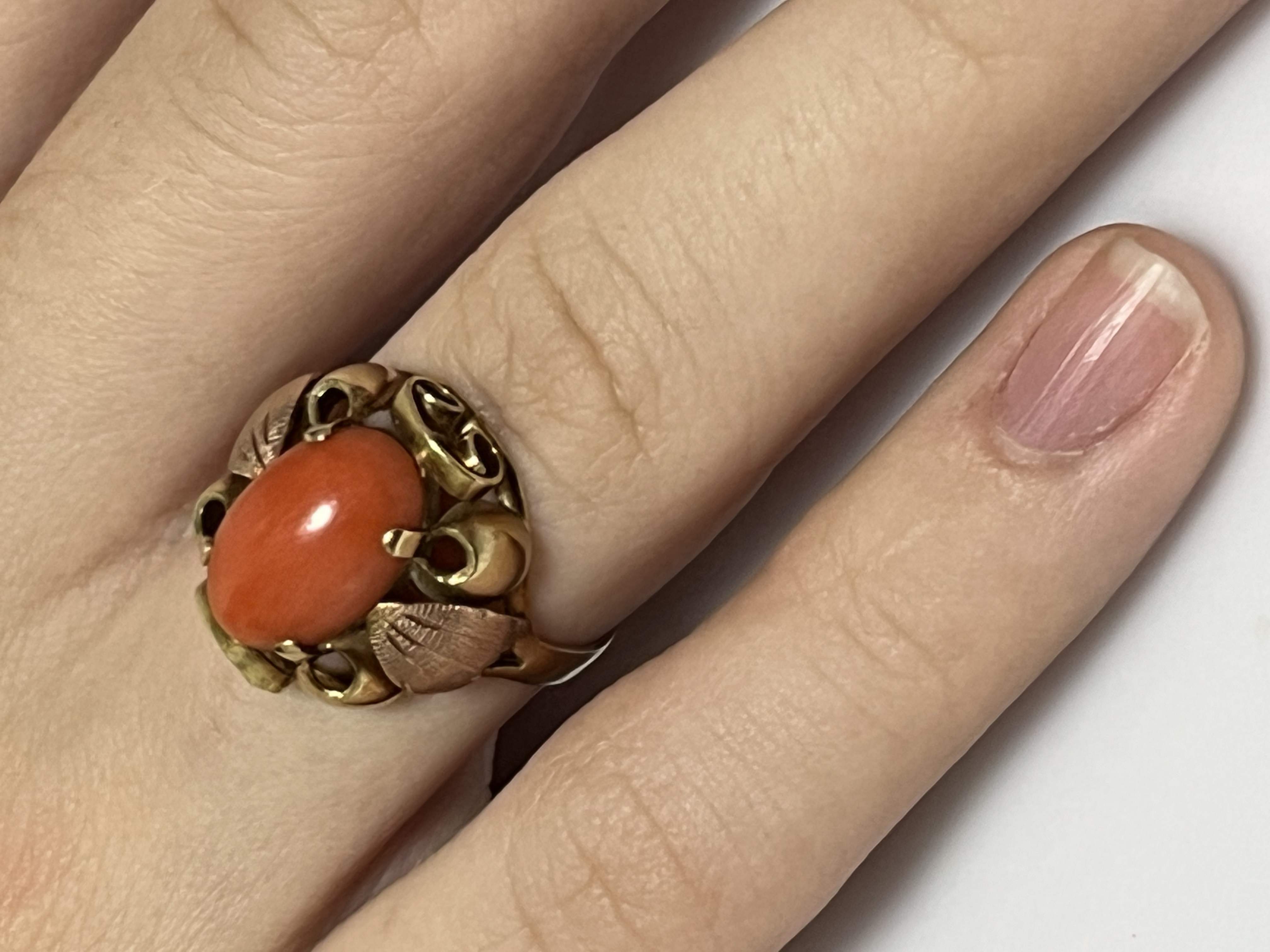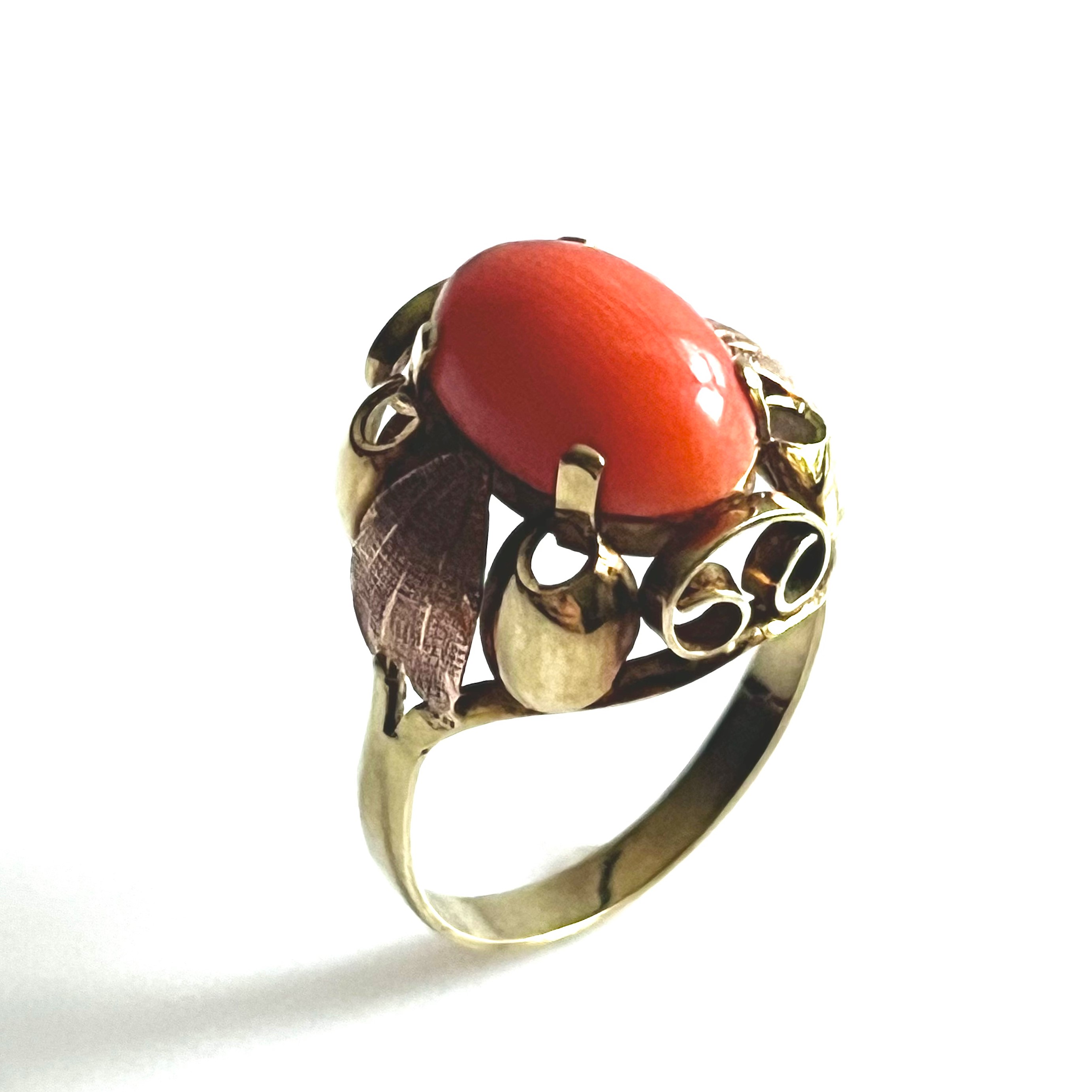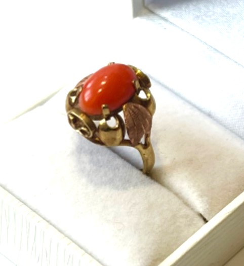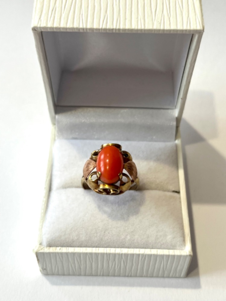 Masivní starožitný zlatý prsten 3,45 gramů s velkým přírodním mořským korálem