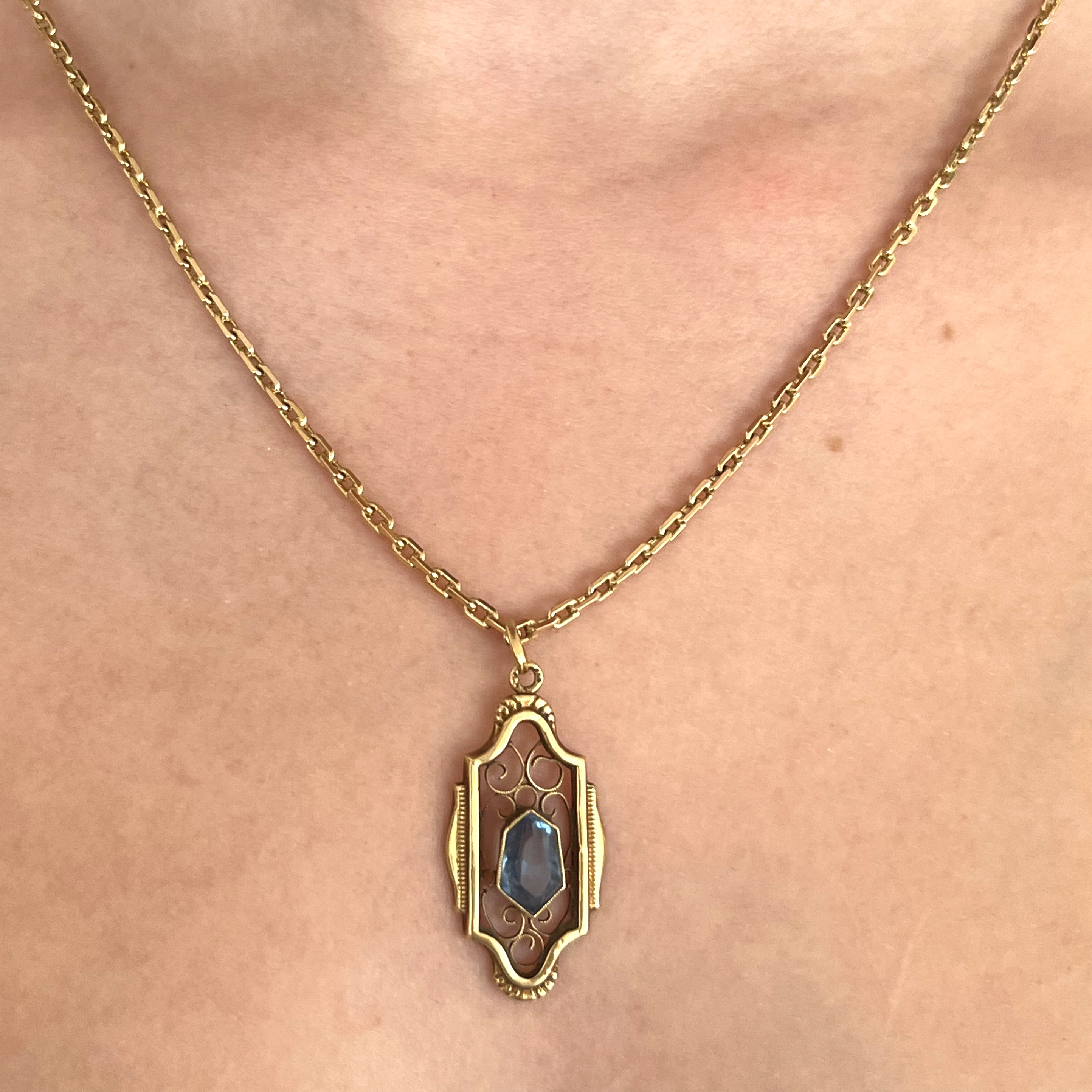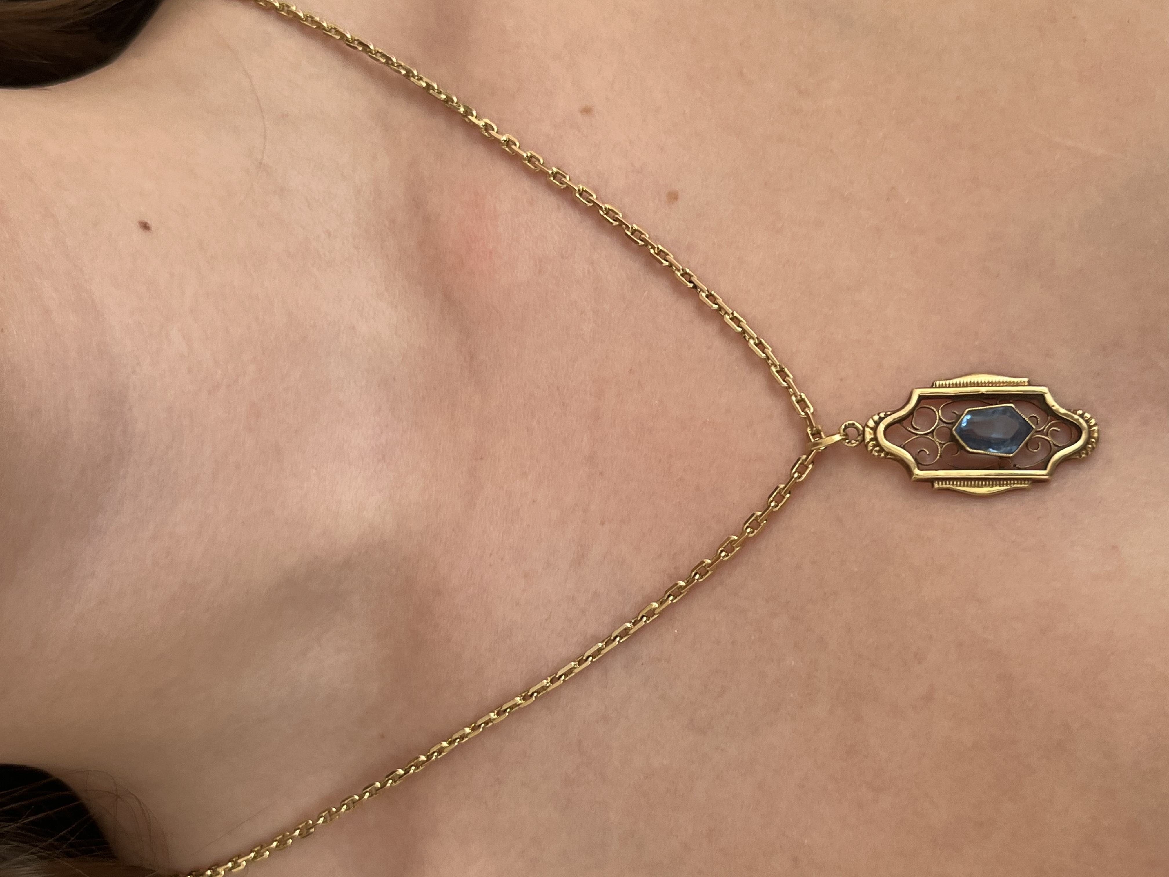 Krásný starožitný šperk – velmi masivní řetízek s přívěškem z období Rakousko-Uherska 14 karátů punc Liška, váha šperku celkem 11,64 gramů, délka řetízku 54 cm.