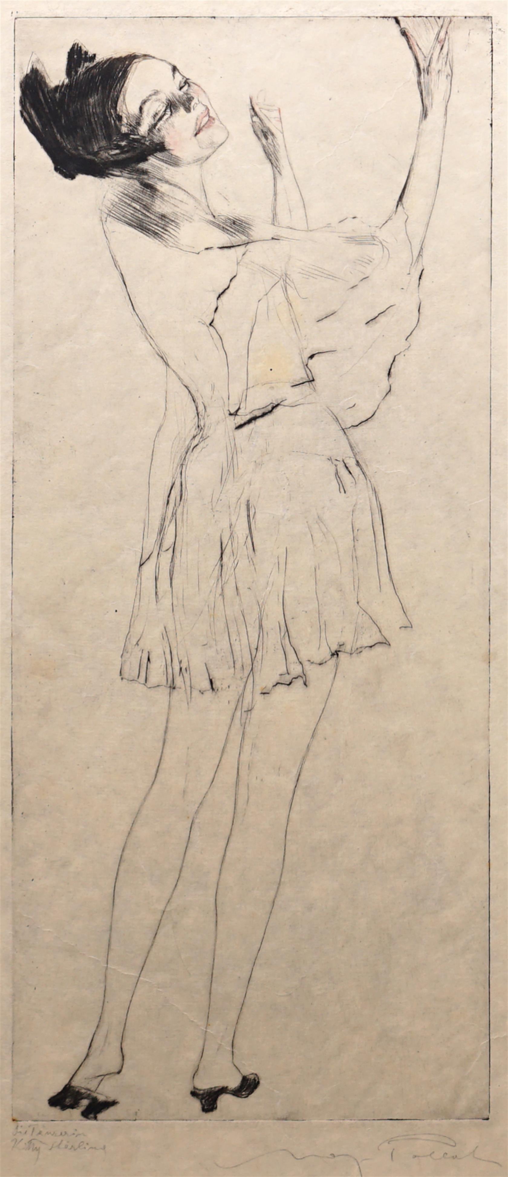 Technika: Suchá jehla Výška: 35,8 cm, šířka: 15,2 cm, rámování: 52,5 x 30,5 cm Stav: Dobrý Signatura: signováno