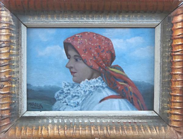 Olej na dřevěné desce 21 x 32 cm. Vlevo dole podpis malíře. Původní rám 31 x 41 cm.