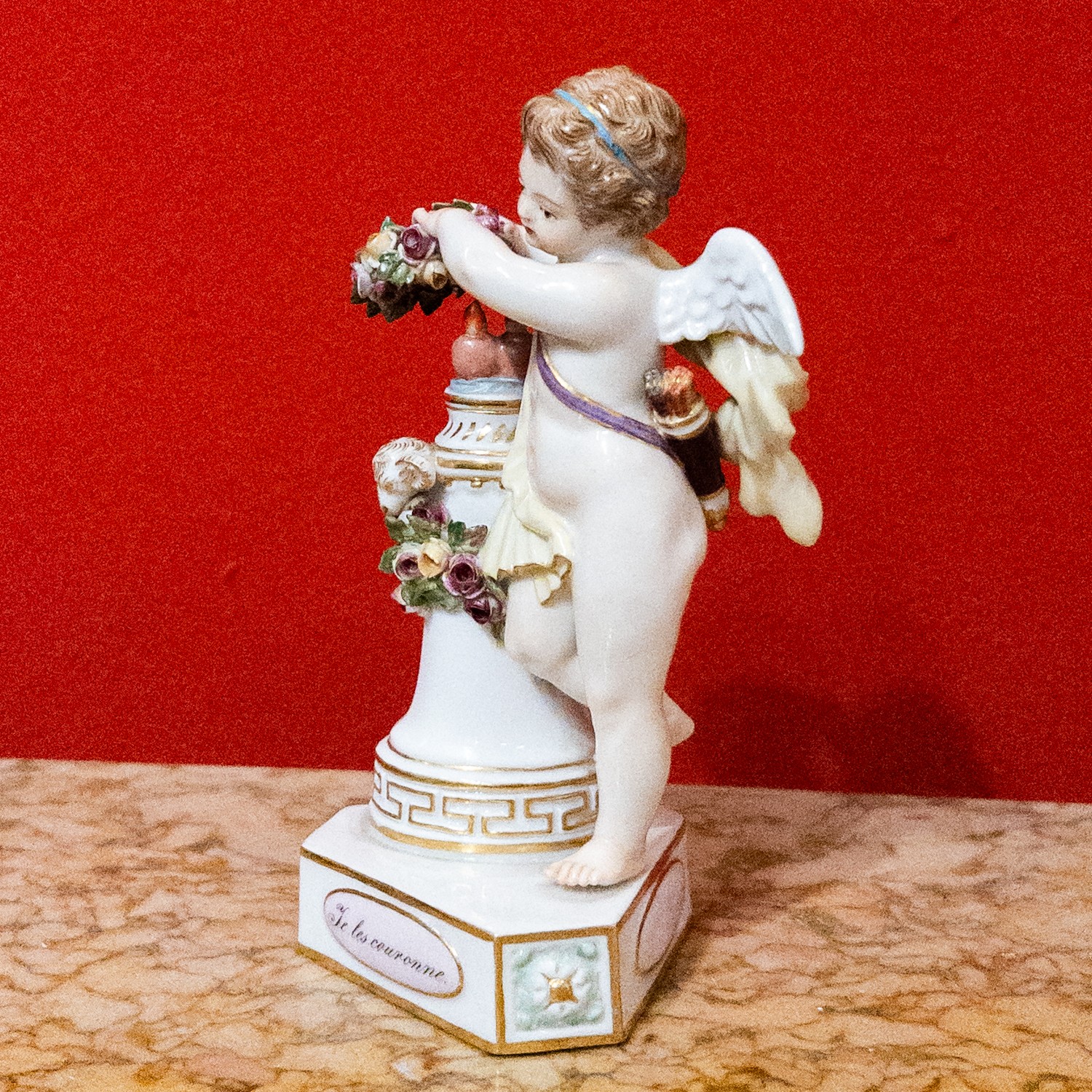Míšeň, Putti Německo, 19. století, porcelán ručně malovaný, glazovaný, zlacený,