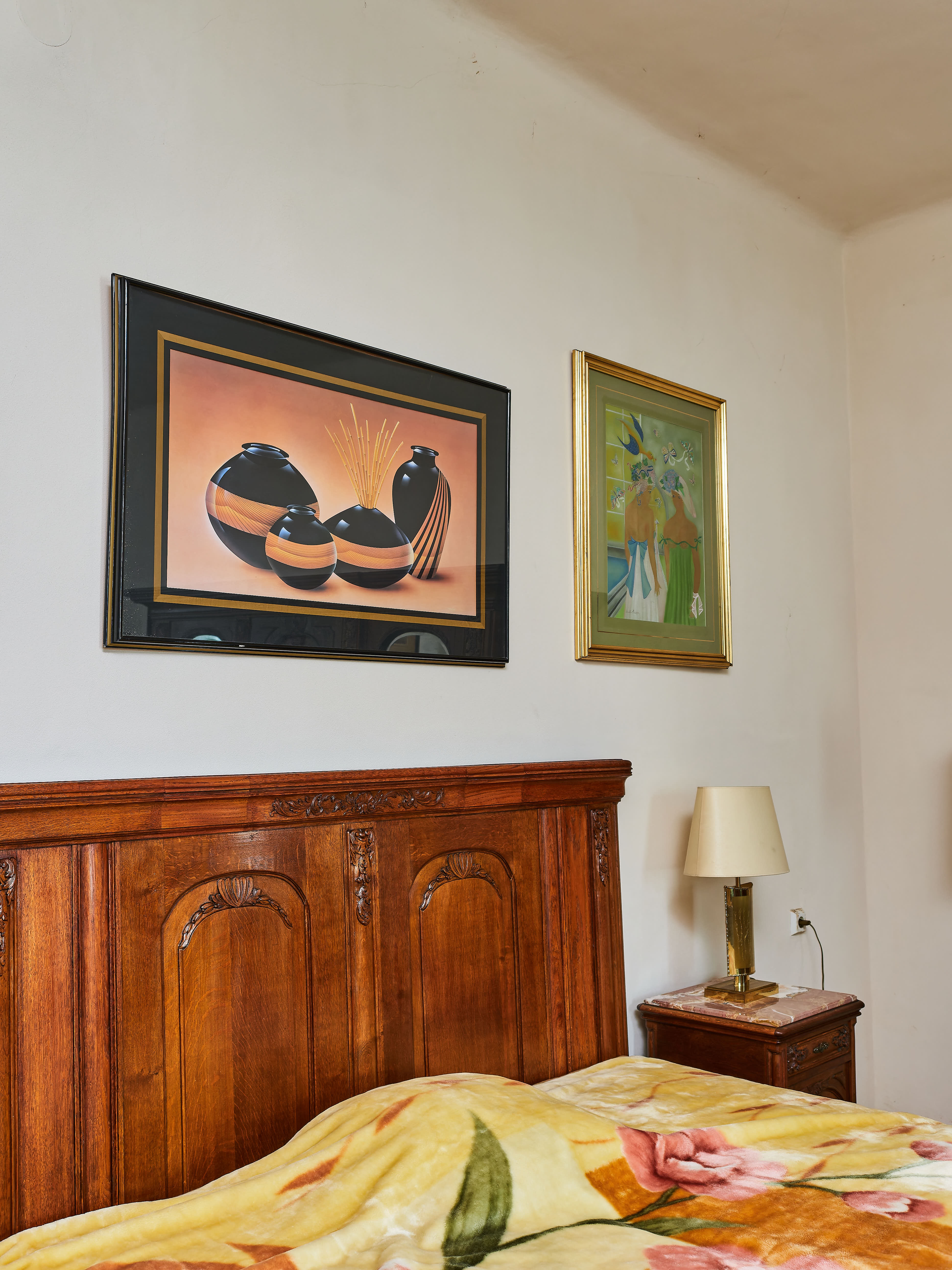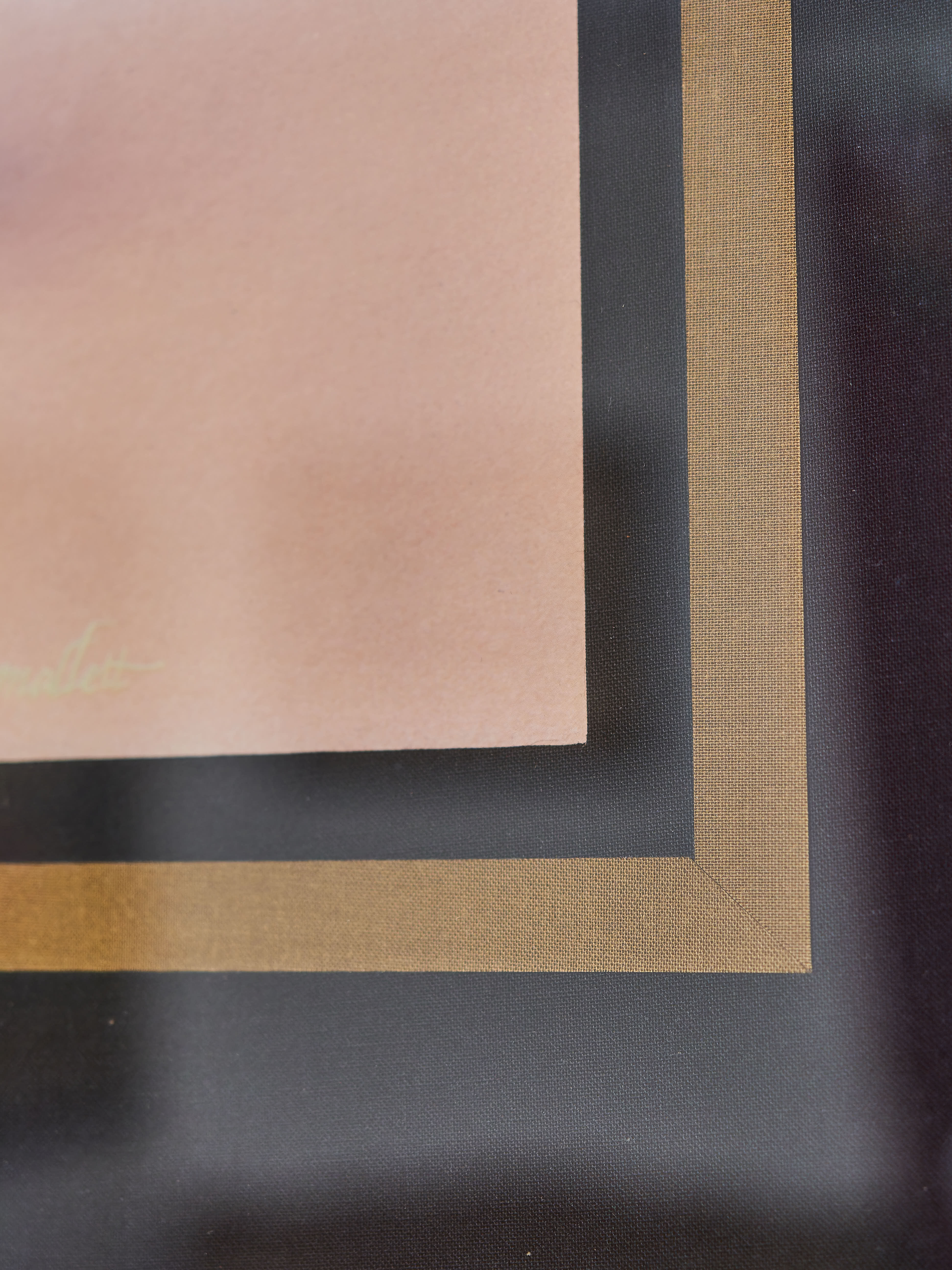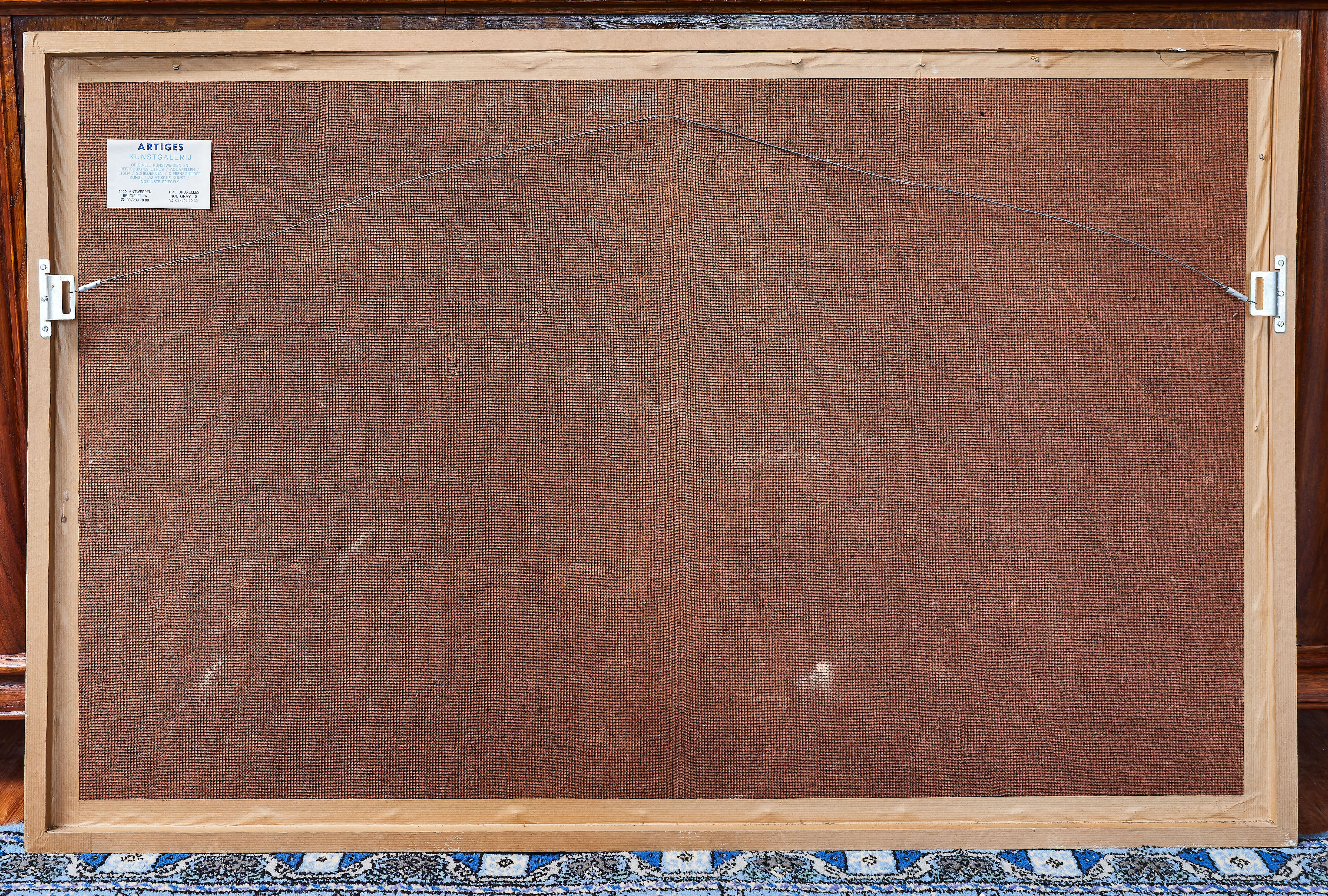 Obraz je zarámován v černém lesklém rámu se zlatým dekorem a krytý sklem. Podpis autora „Mallett“ je umístěn v levém dolním rohu. Na zadní straně je štítek z kunstgalerie Artiges.
