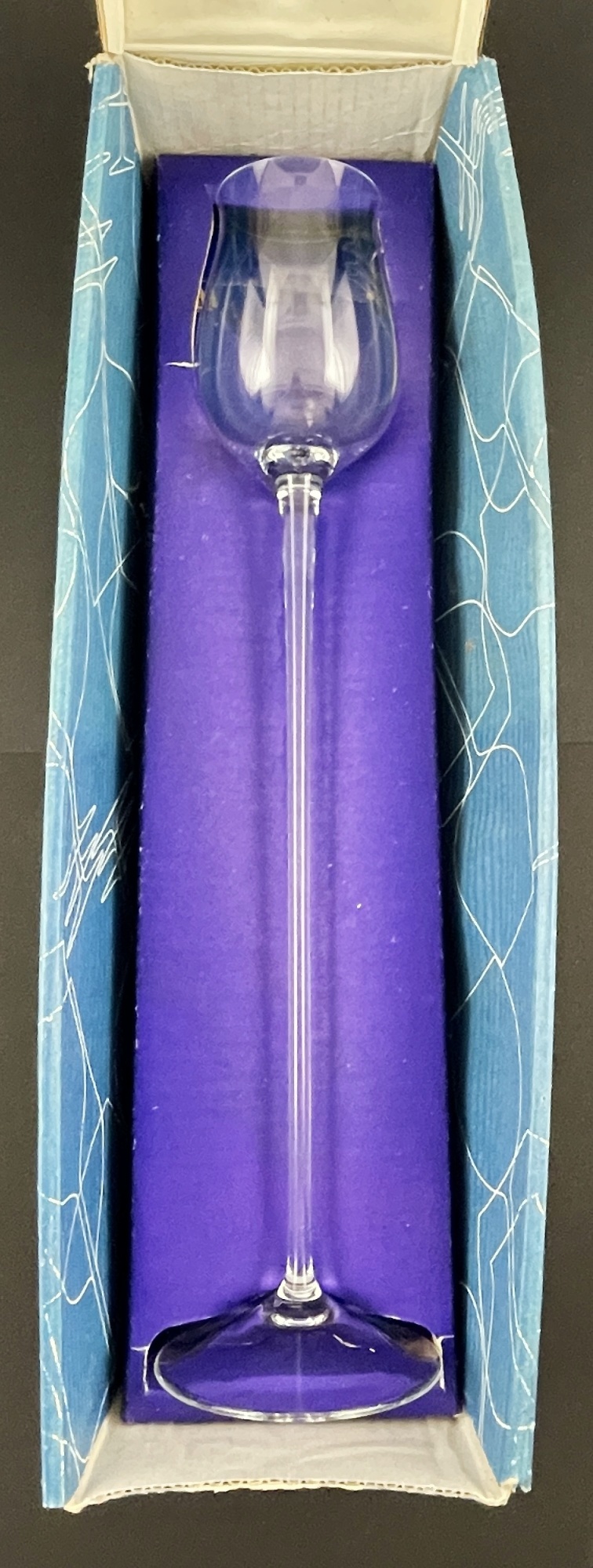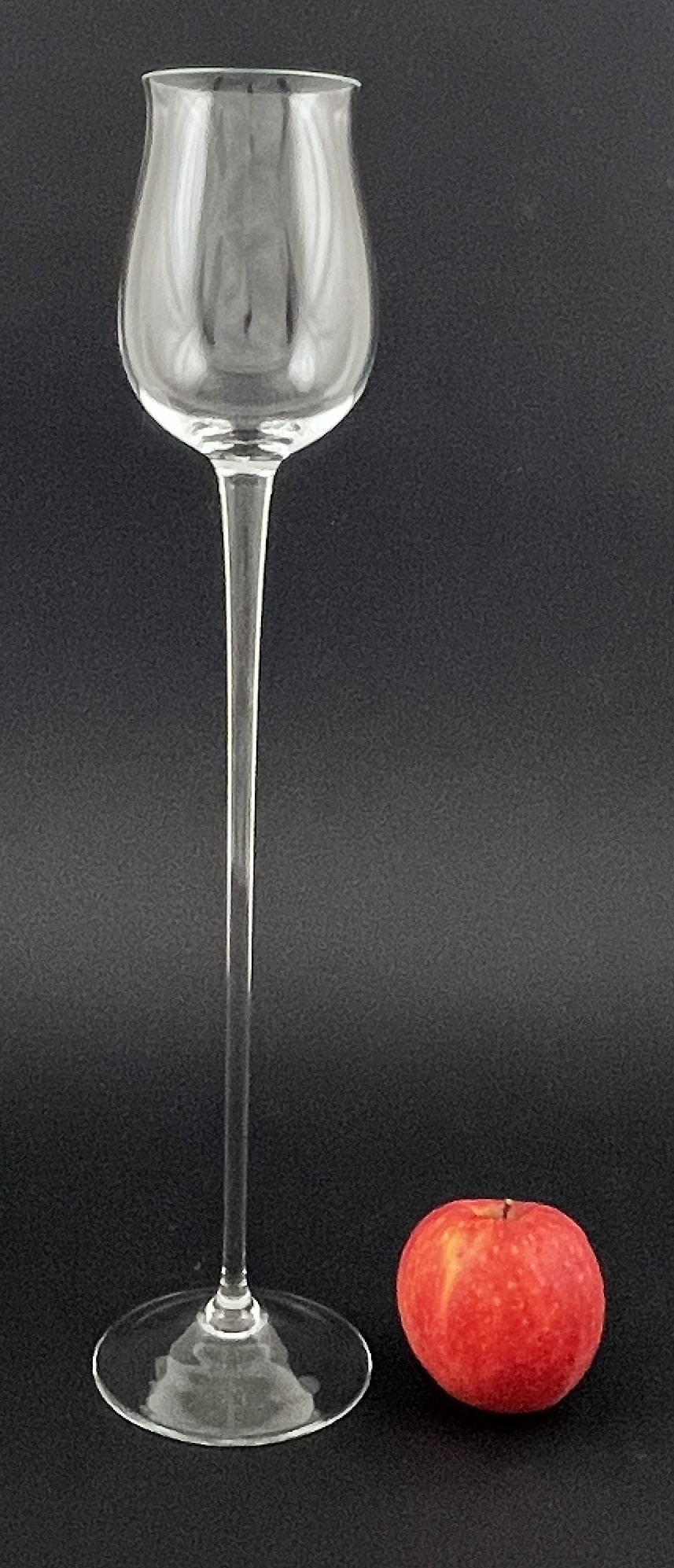 Křišťálové sklo. Autor nápadu na kolekci obřích číší ke 100. výročí založení firmy Moser a zároveň i autor návrhu jejich designu: František Chocholatý (nar. 1944) český výtvarník i tehdejší vedoucí pražské prodejny Moseru. Návrh z roku 1957. Název kolekce obřích číší: Fyziognomický bar. Tato kolekce proslula na Světové výstavě EXPO konané v roce 1958 v Bruselu. Podle této kolekce šesti osobitých obřích číší pojmenovaných Štíhlá dáma, Tlouštík, Tlustá Berta, Měsíční tvář, Dlouhý pán a Optimista vznikl v roce 1960 i Mezinárodní klub obřích číší. Každý zájemce o klubové členství si musel vybrat jednu ze šesti obřích číší, jež odpovídá jeho typu osobnosti. Československo, Karlovy Vary 1950 – 1960. Výška číše nazvané Štíhlá dáma 45,5 cm. V původní originální etui se zlatým nápisem Moser.