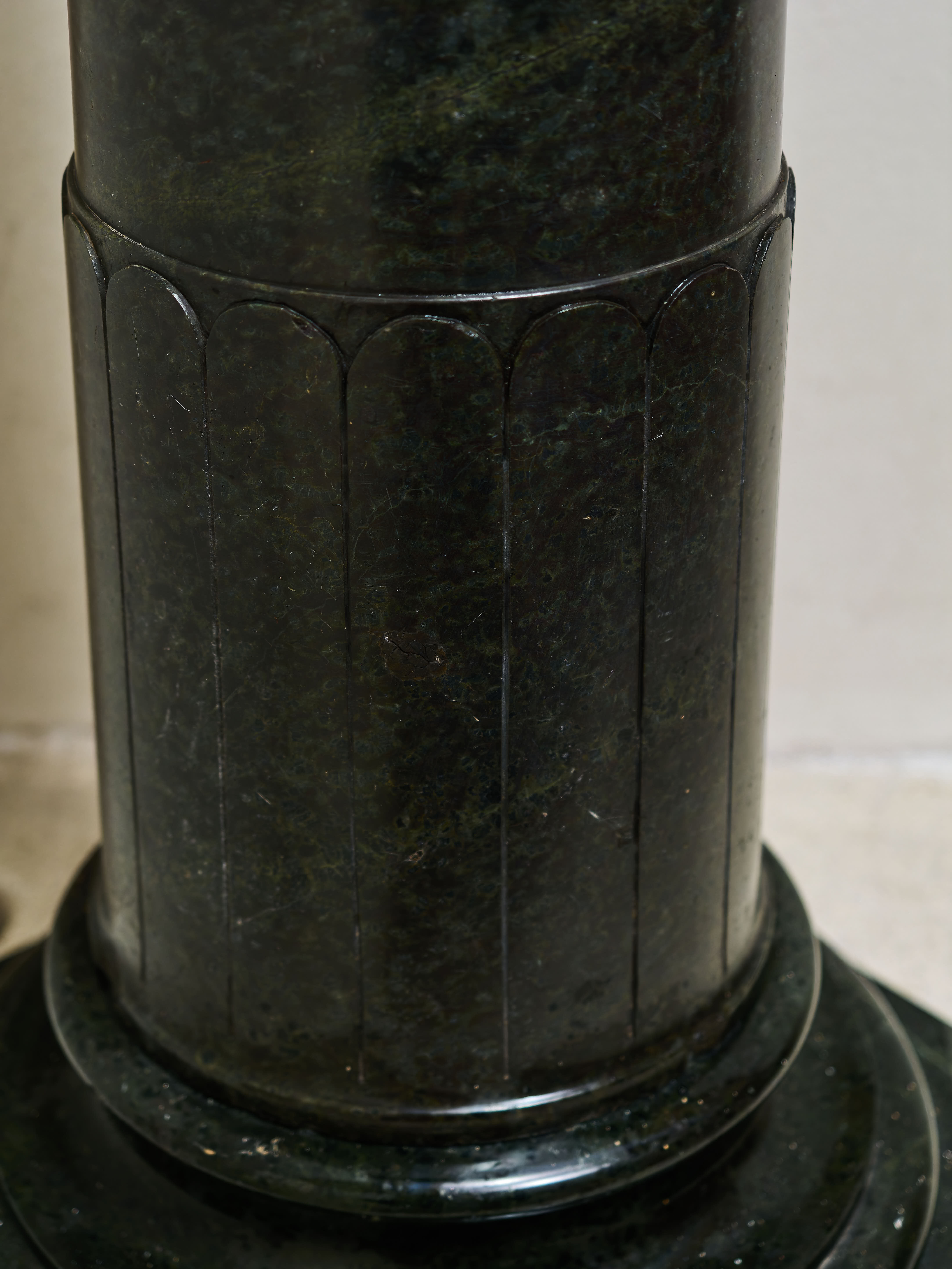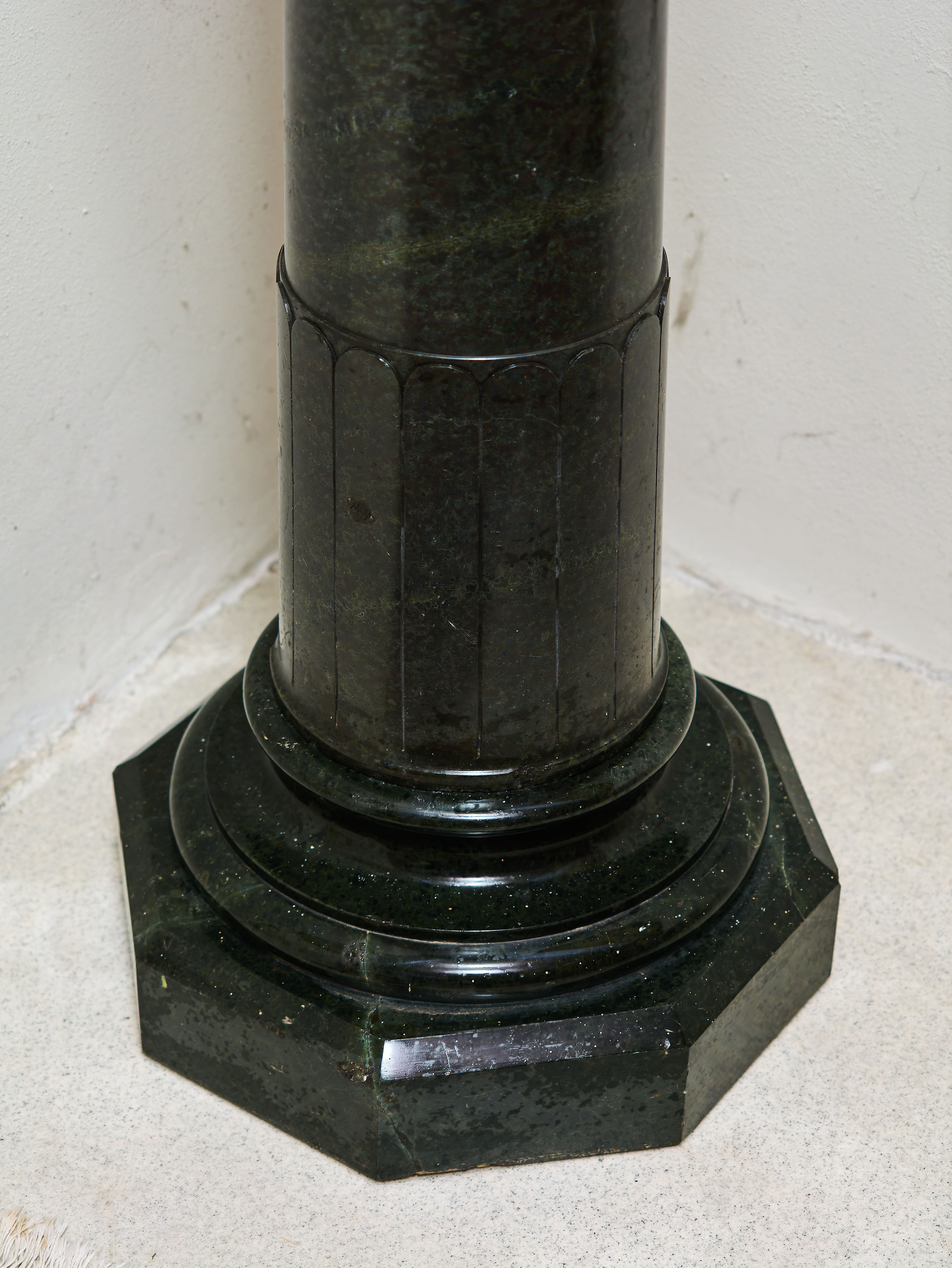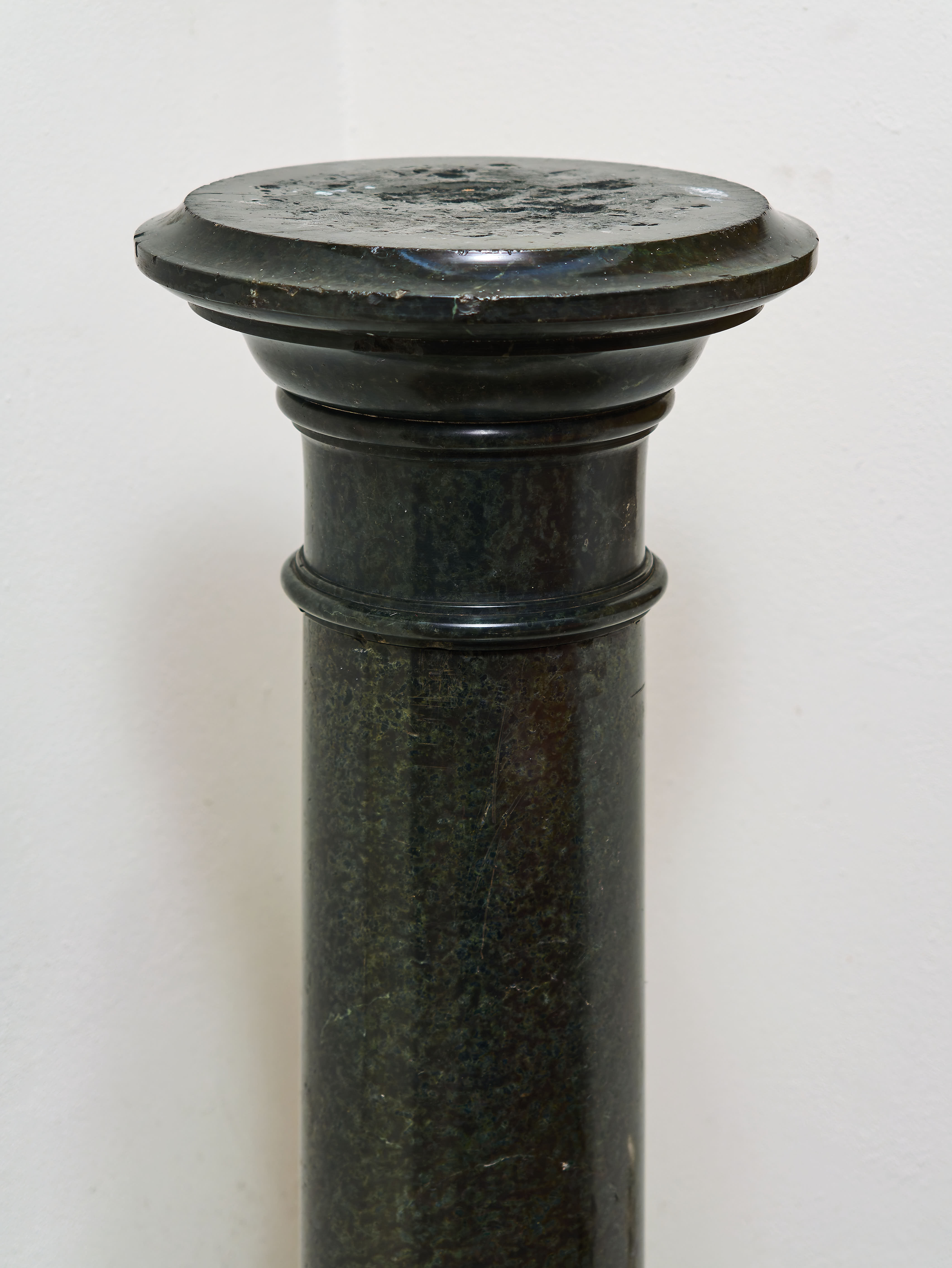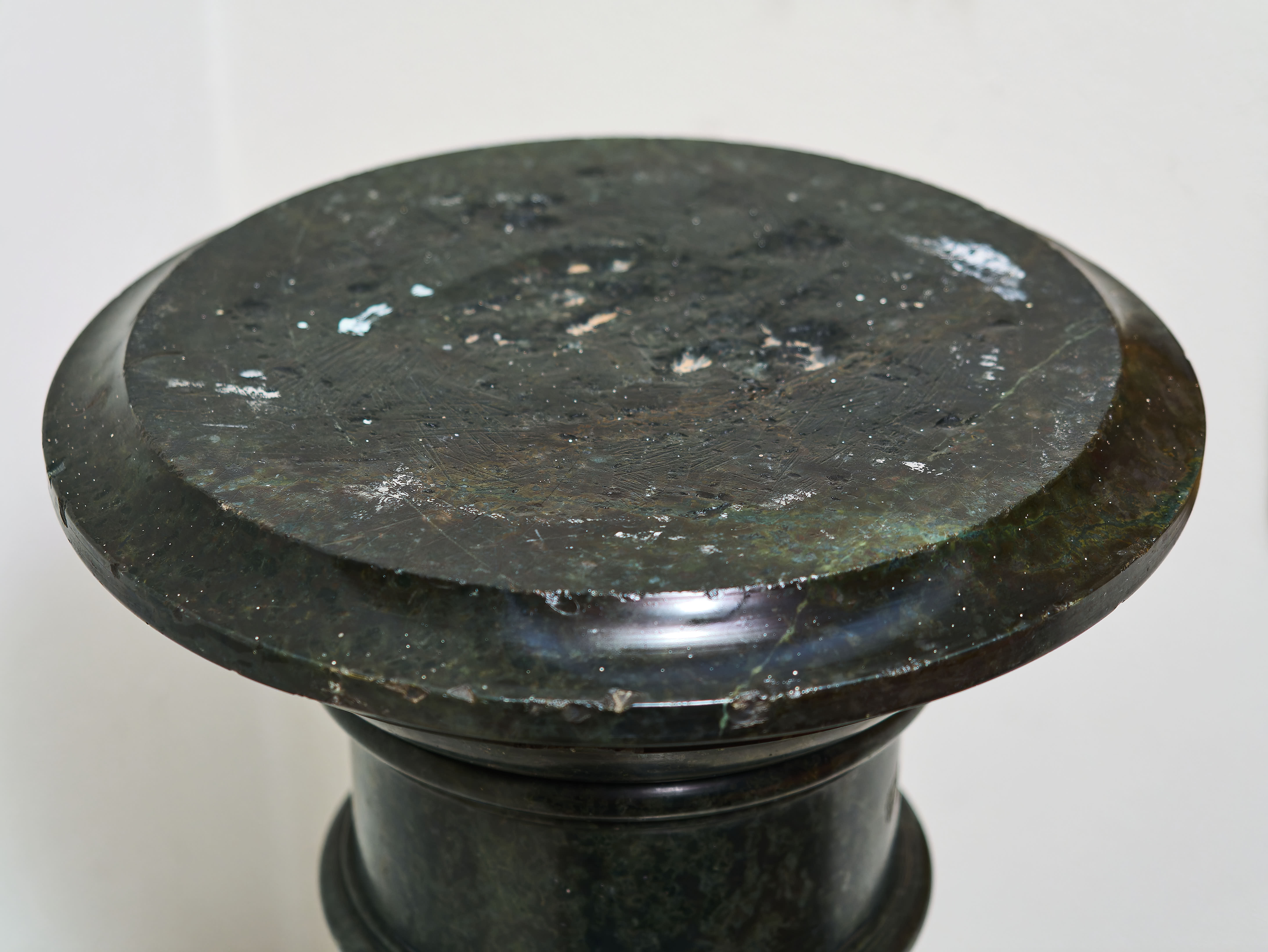 Zelený mramorový starožitný sloup z francouzského zámku. V dobrém stavu. Krásná ruční kemenická práce. Není to polská ani čínská kopie. Sloup je možné pro převoz rozdělit na tři díly a tudíž ho unese i jedna fyzicky zdatná osoba. Stav: velmi dobrý, jen pár menších škrábanců a oťuků. Datace: kolem roku 1840. Provenience: Francie.