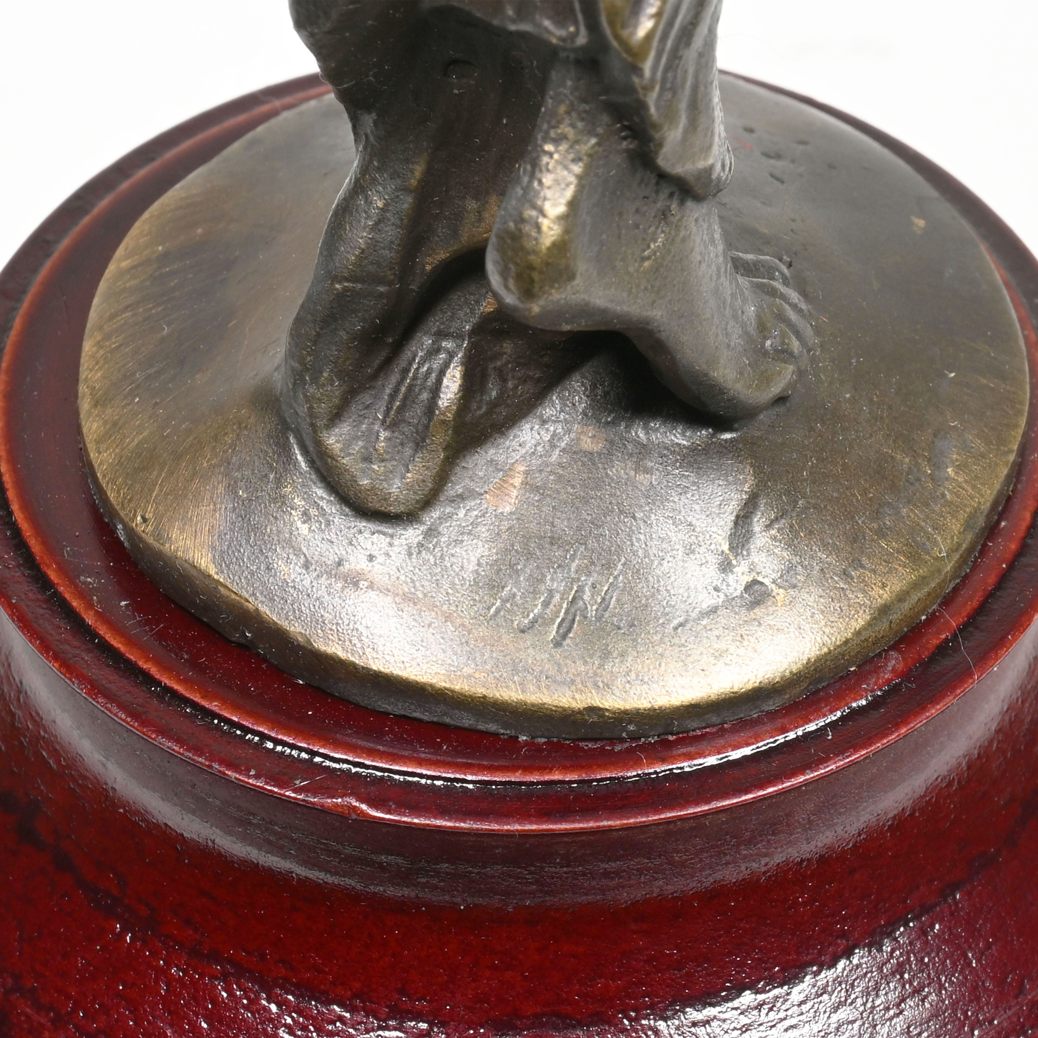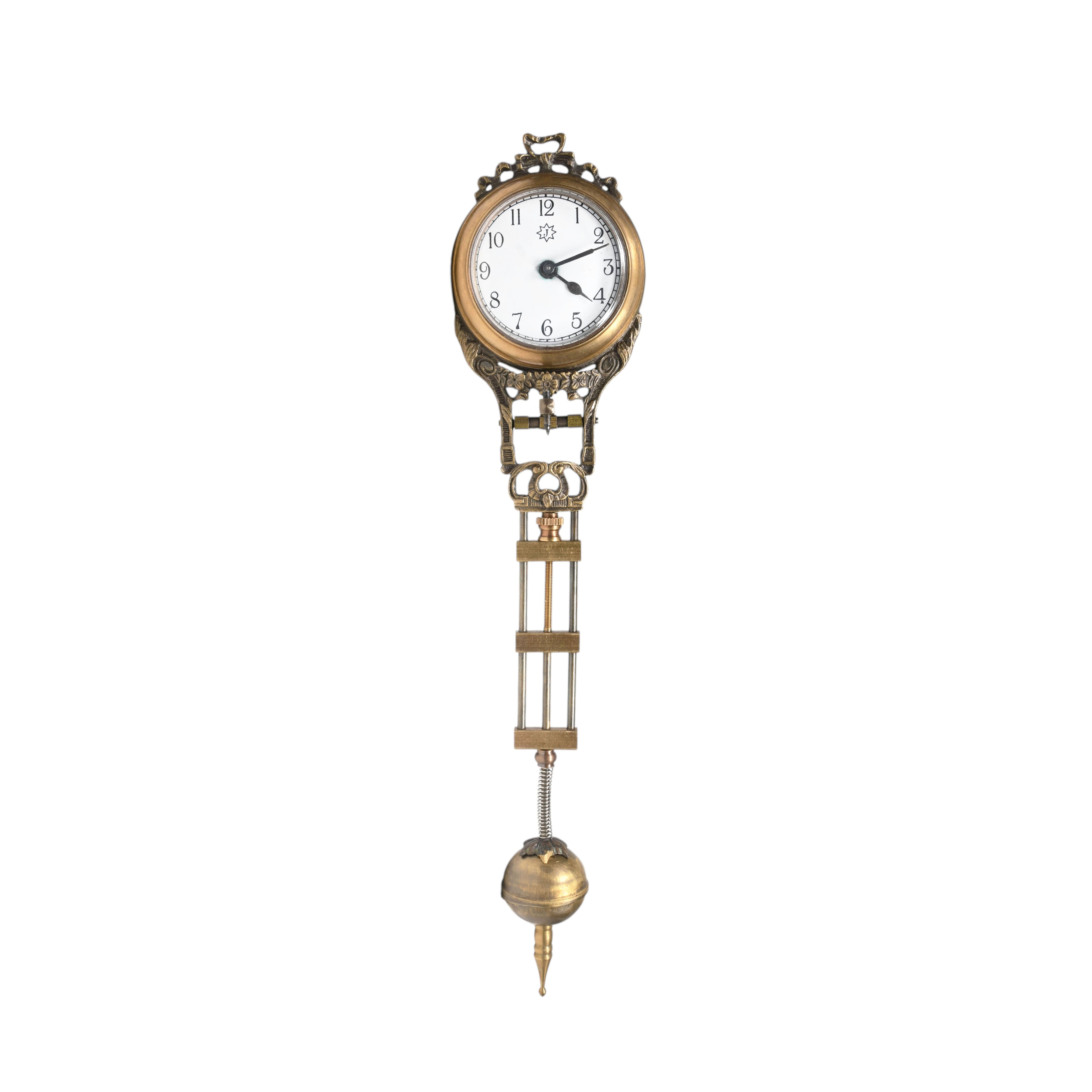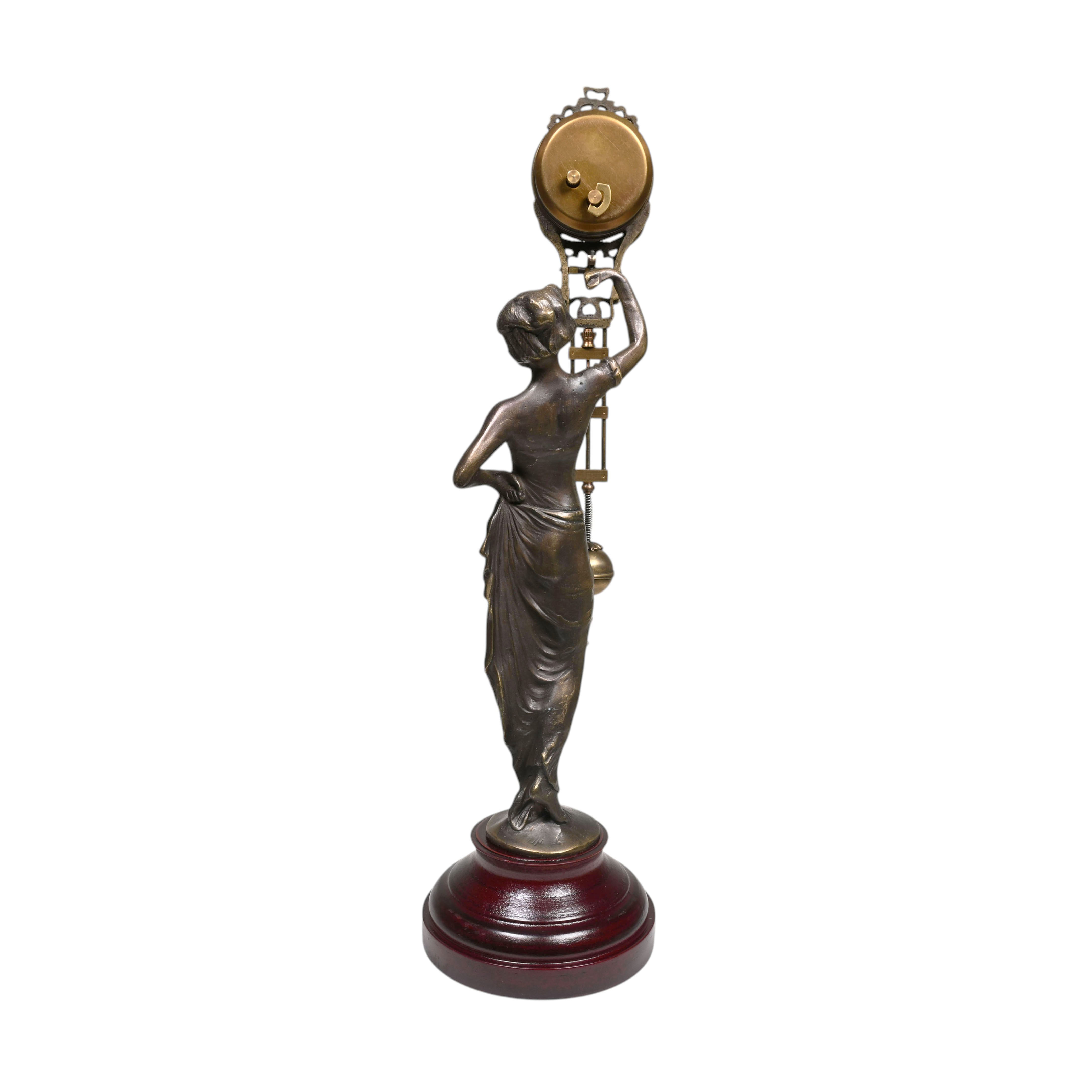 Materiál: bronz, dřevěný podstavec Rozměry: výška 38 cm, šířka 11 cm Stav: funkční, bez záruky chodu, výborný stav