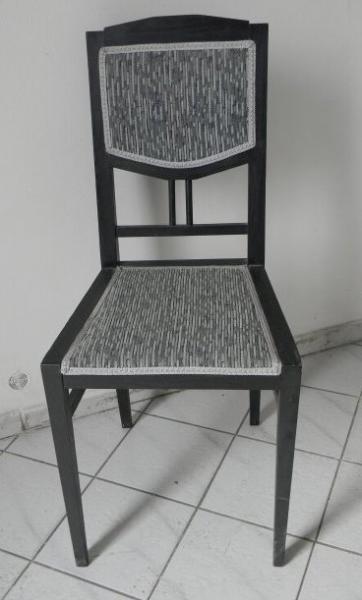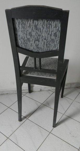 Pozdně secesní židle, černě mořené dřevo, čalouněné sedáky i opěradla. V dobrém stavu. Cena za 4 kusy. Cca kolem roku 1910
