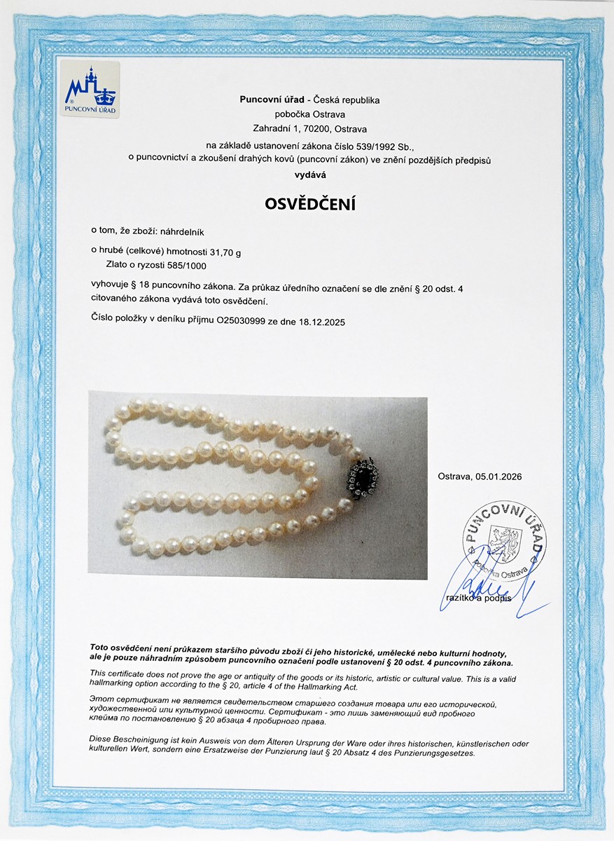 – osvědčení Puncovního úřadu České republiky