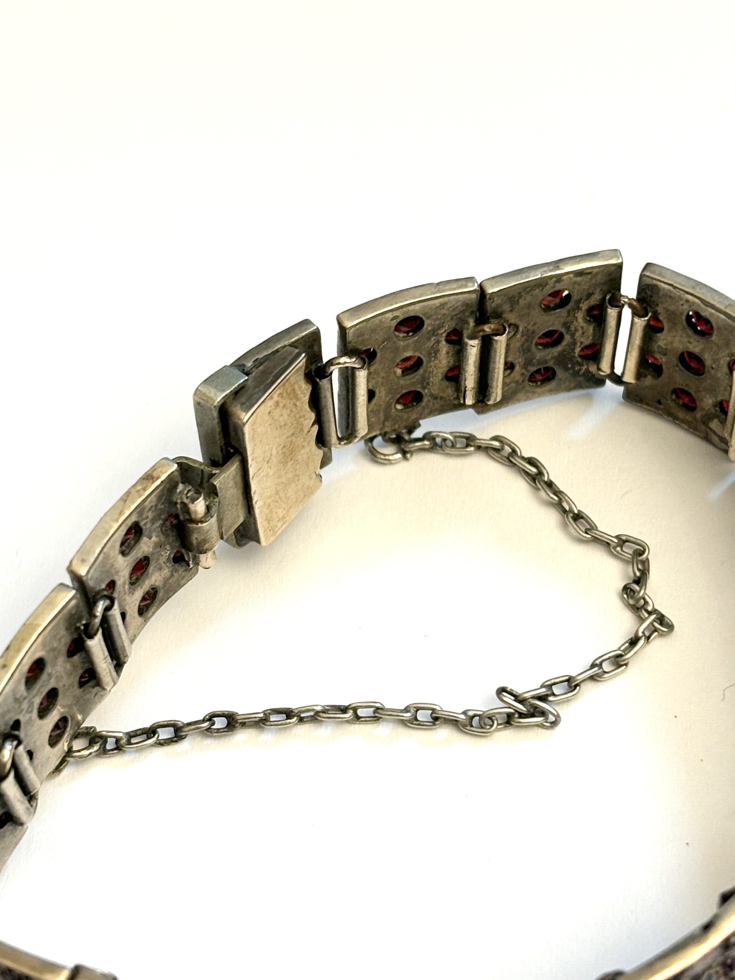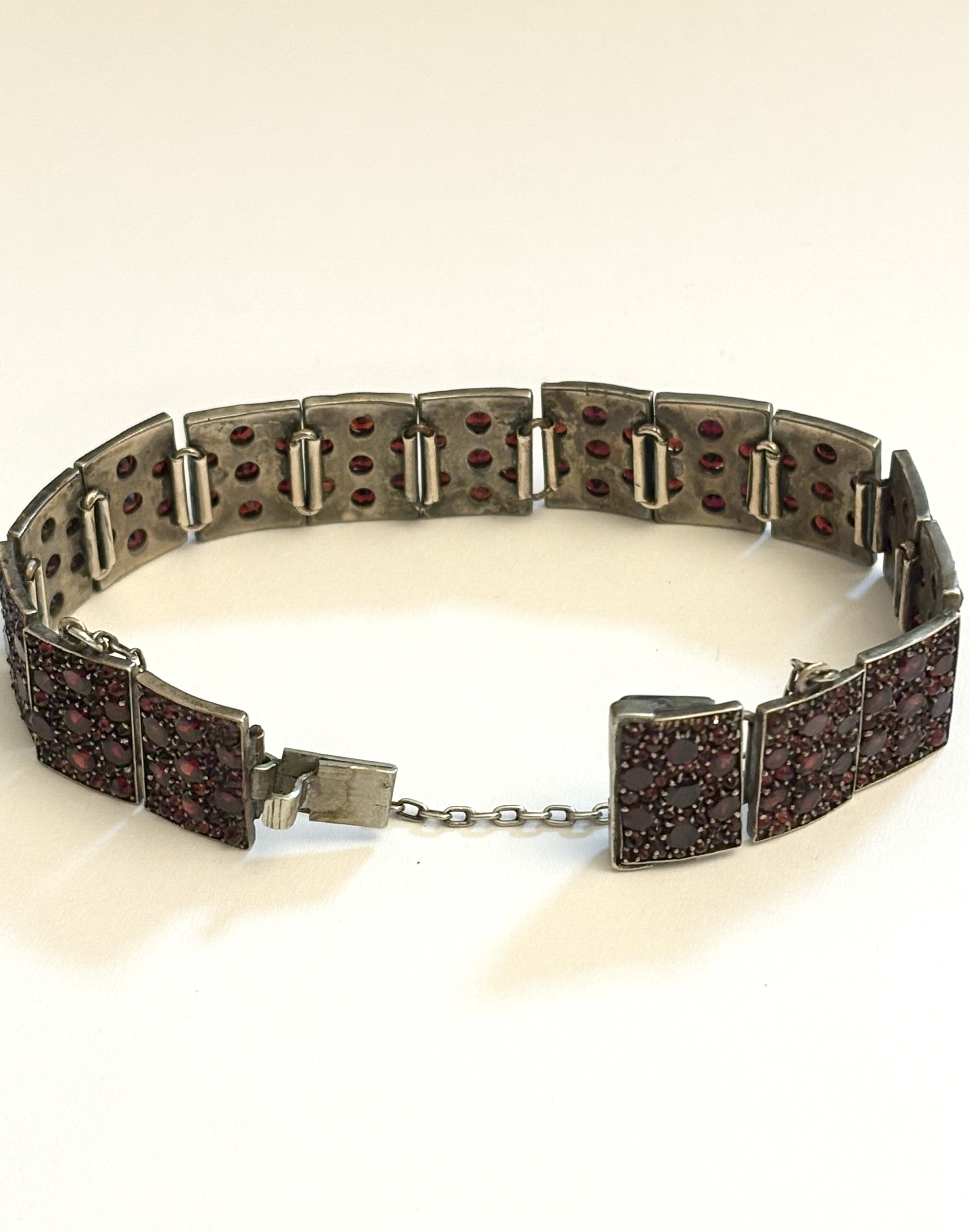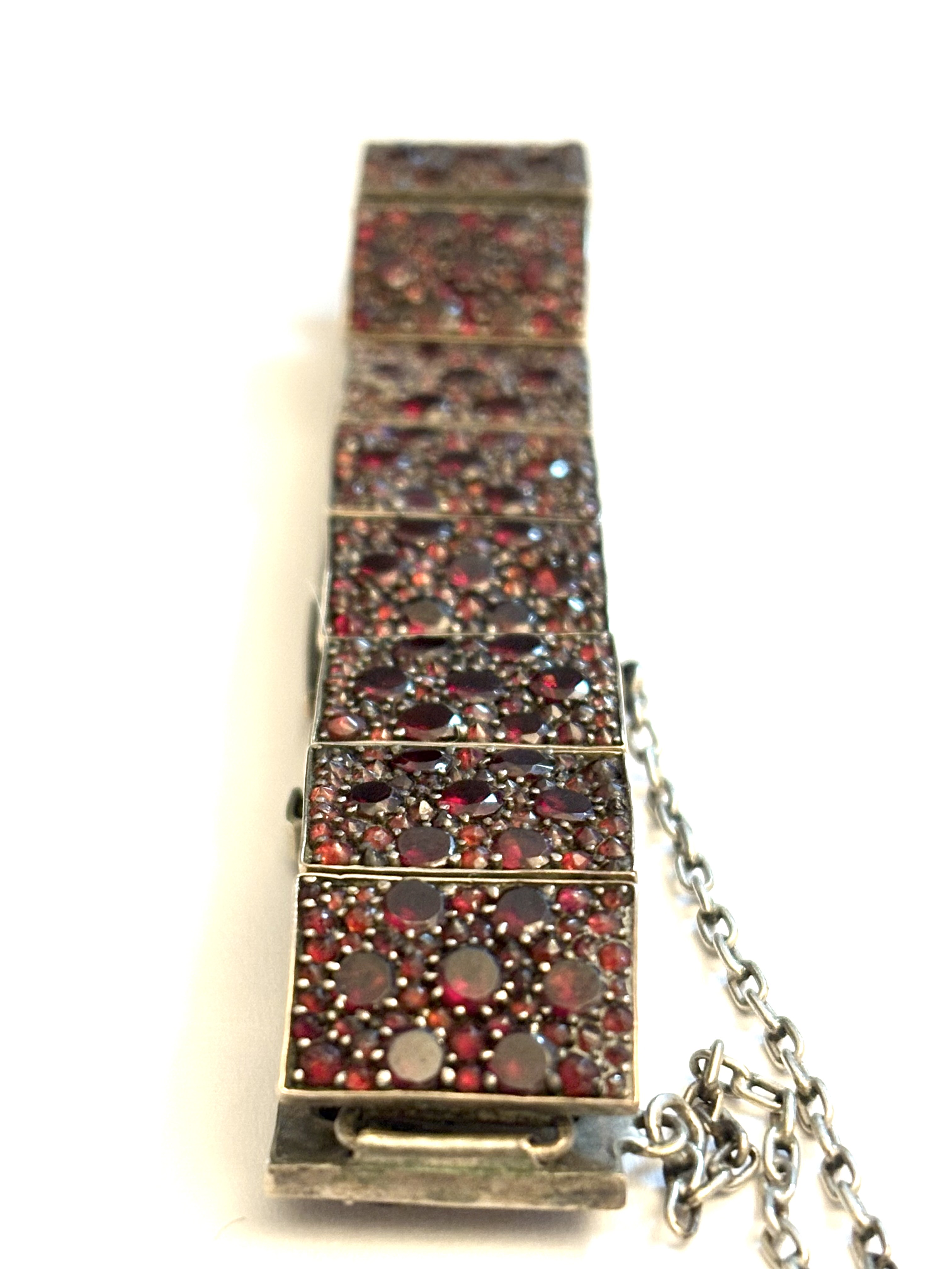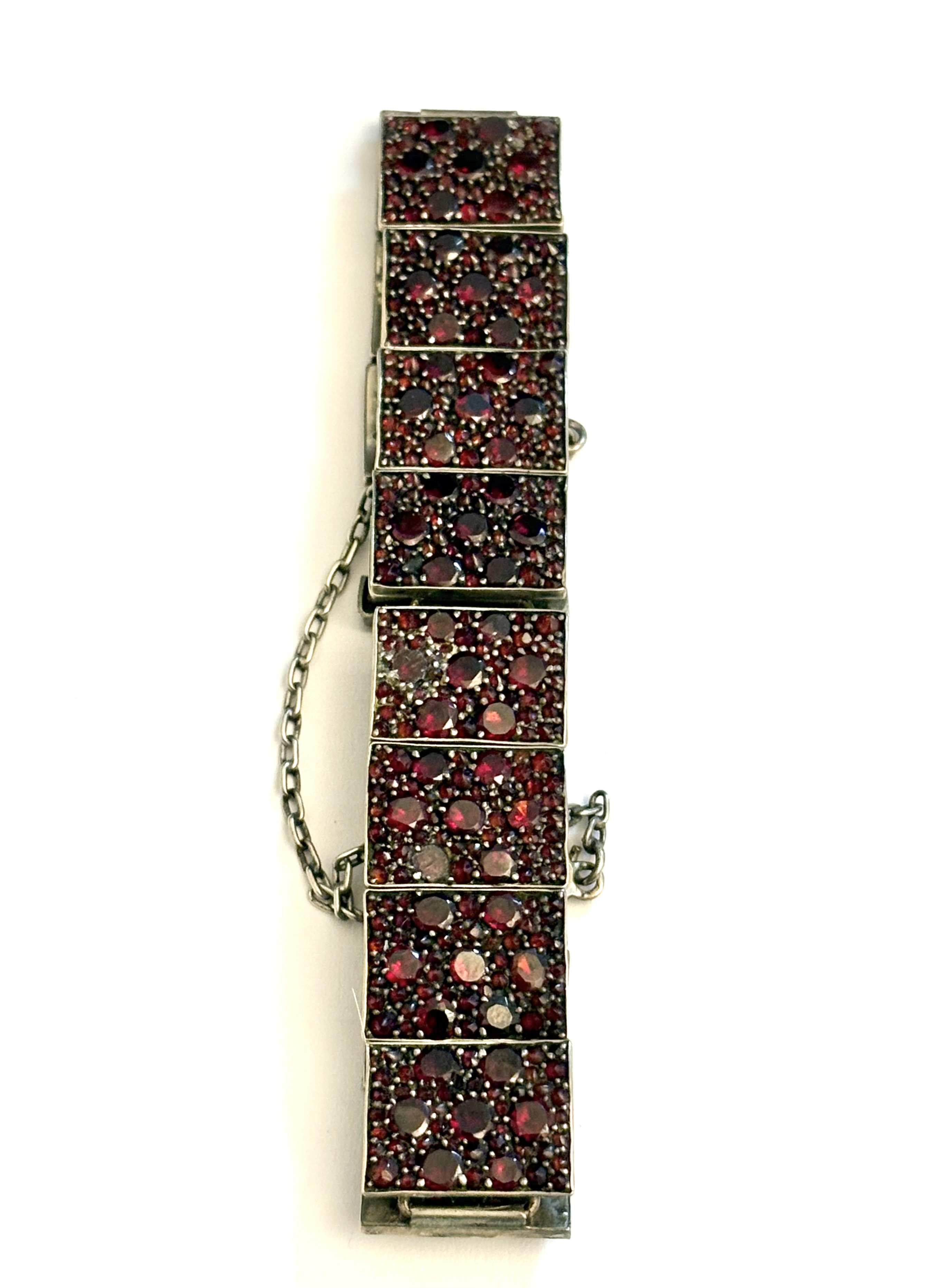 Náramek s českými granáty Tombak Art deko Délka 7 cm, průměr 1, 4 cm