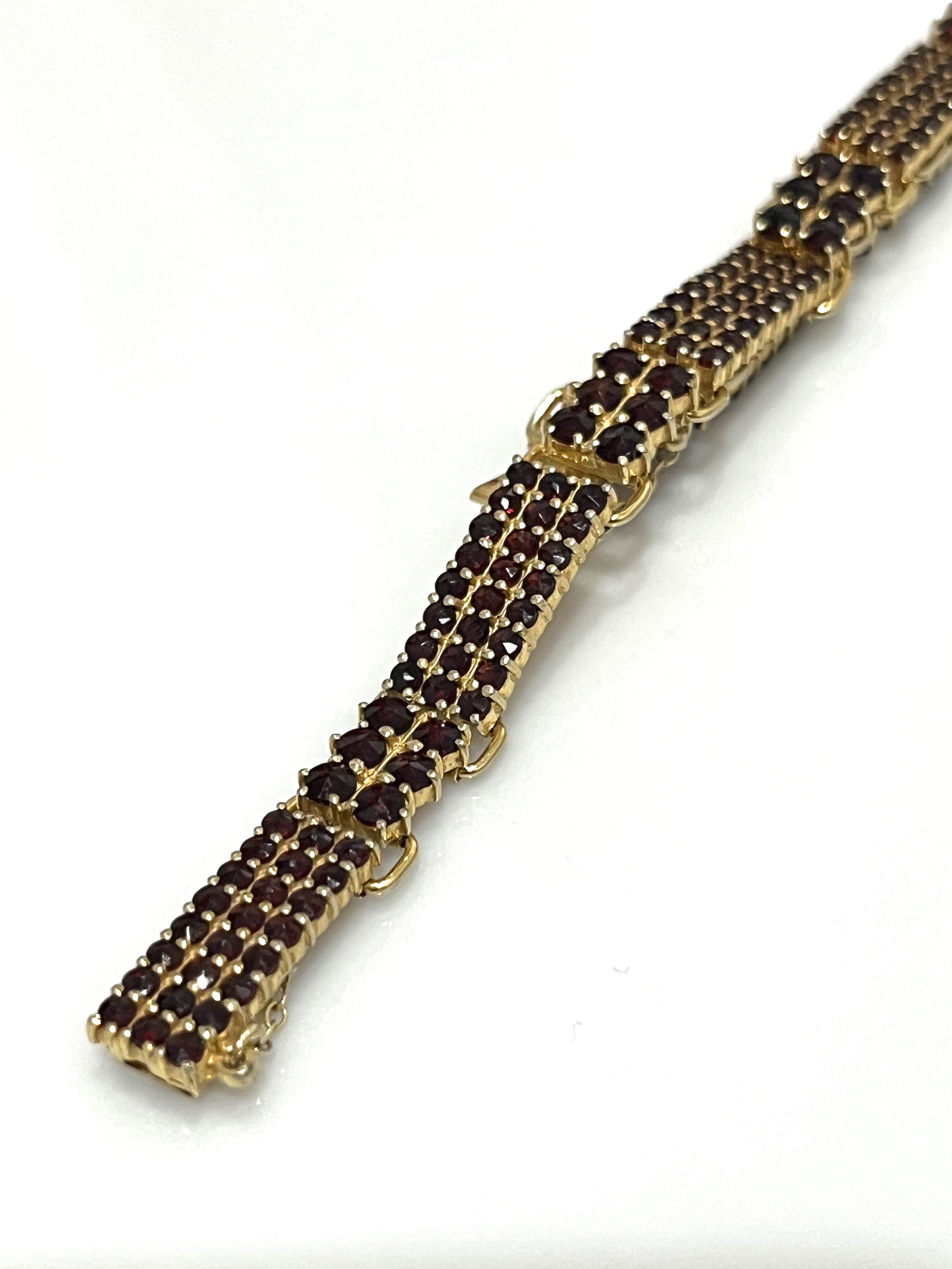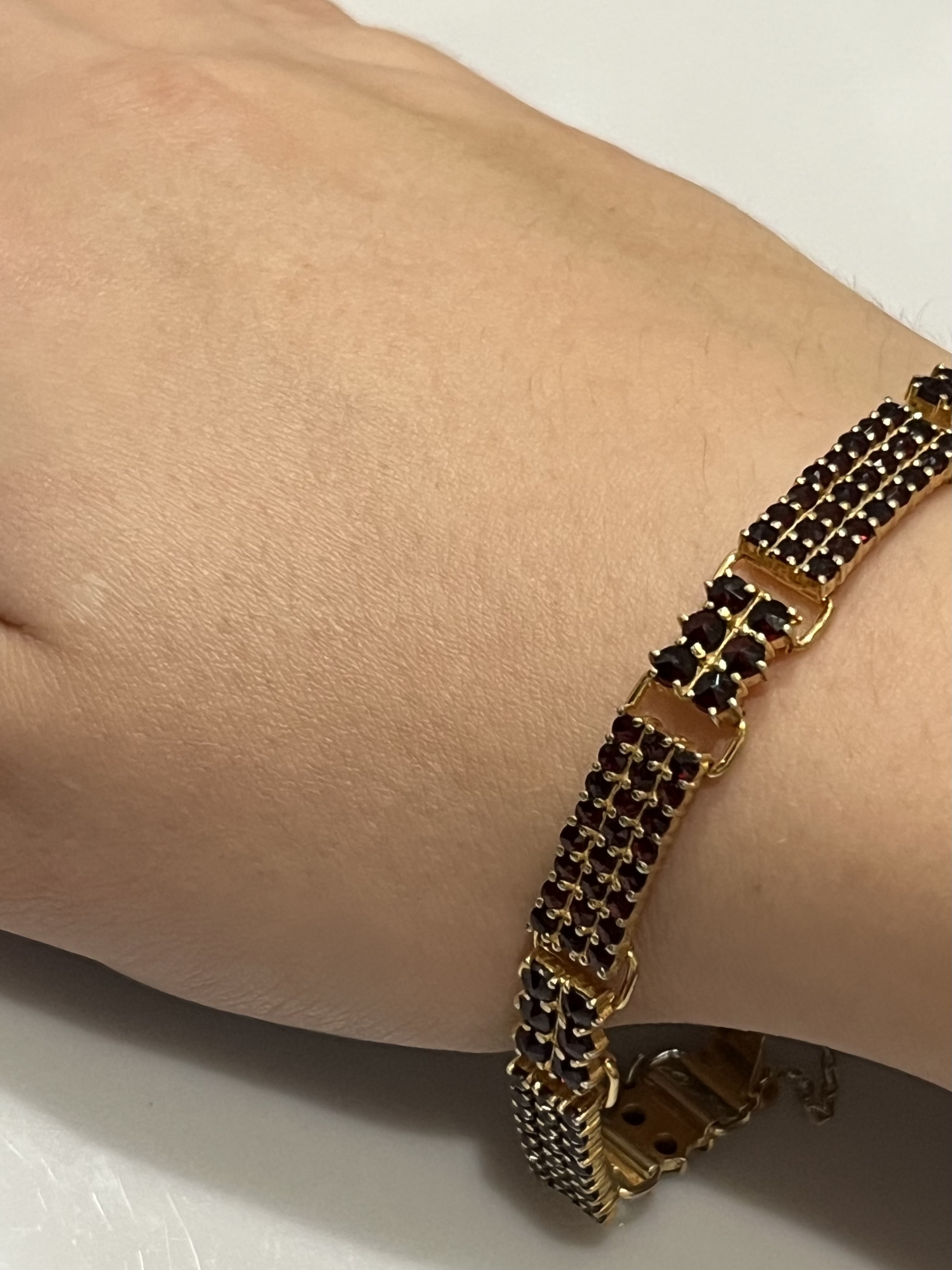 Krásný stříbrný náramek ze stříbra v ryzosti AG 900/1000, v pozlaceném provedení. Náramek je článkový s pojistným řetízkem v perfektní stavu. Váha náramku 20,730 gramů brutto. Náramek nenošený a odborně vyčištěný.
