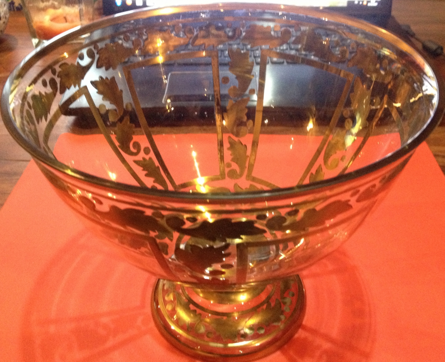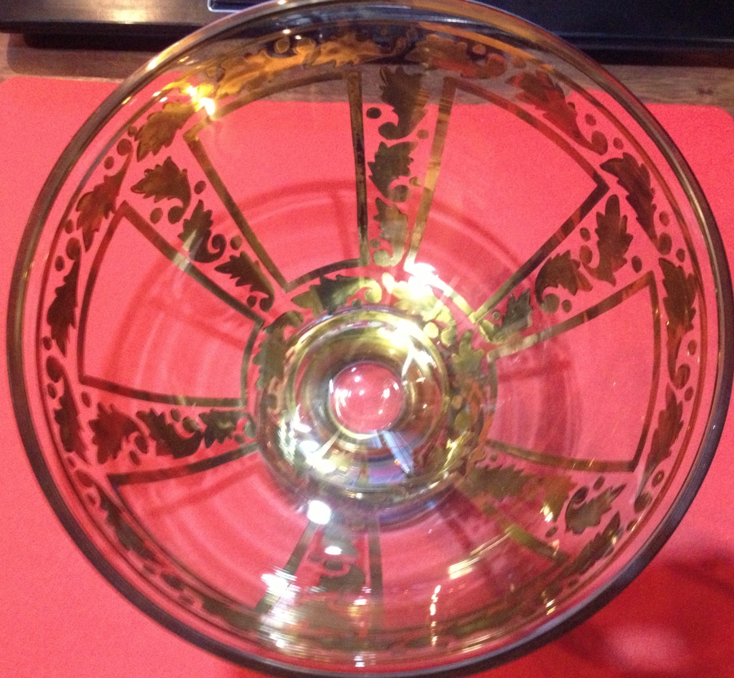 SKLO V ČISTÉ FORMĚ POLOKOULE S OBRÁCENOU MPATKOU,ZLACENO,STAV NENESE STOPY POUŽÍVÁNÍ