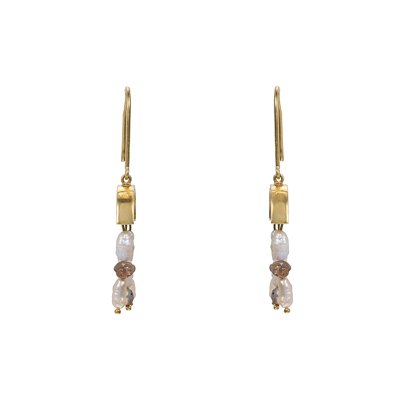 • říční kultivované perly, každá náušnice má 3 závěsy s bílými, hnědými a fialovými perličkami