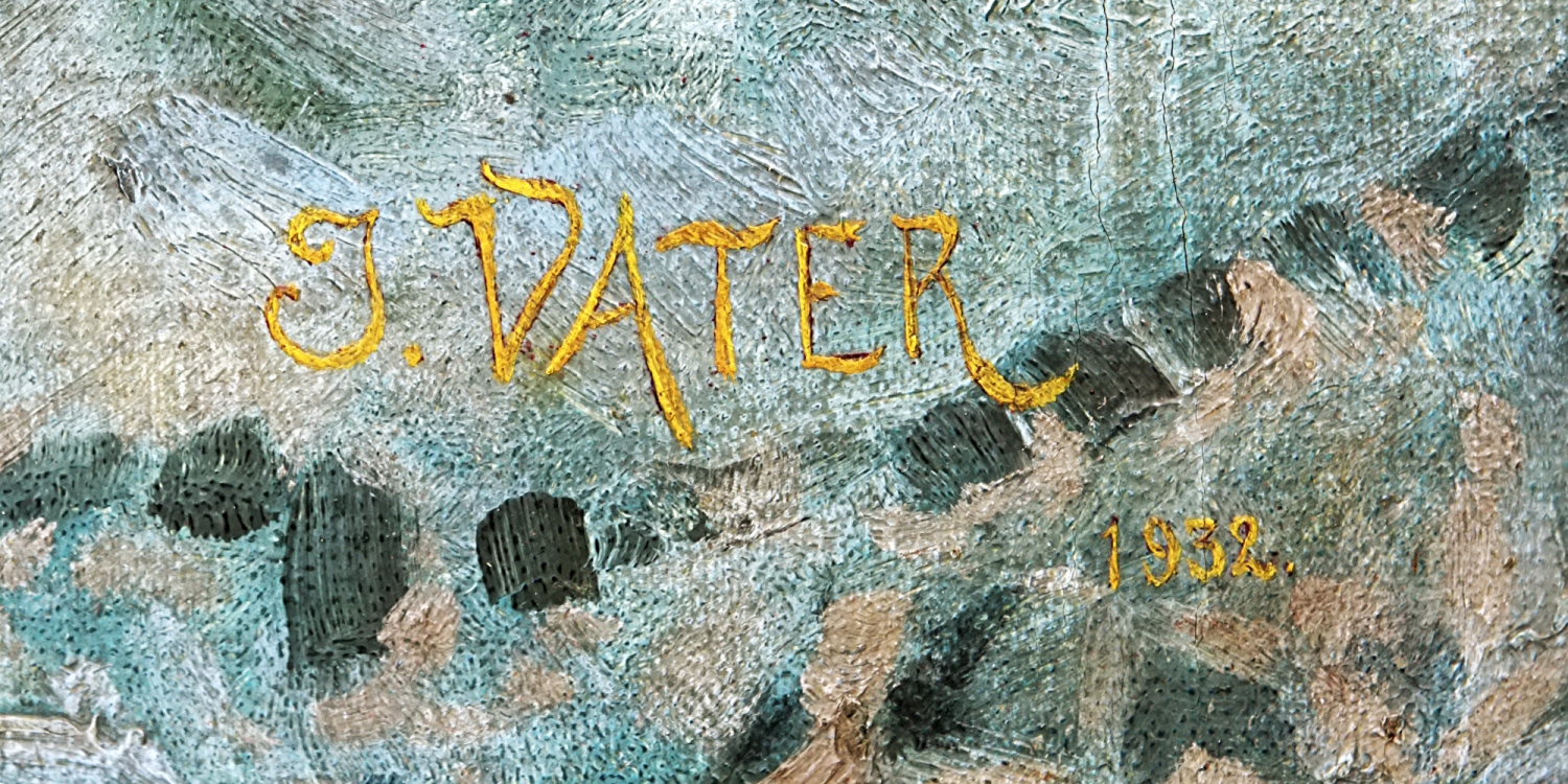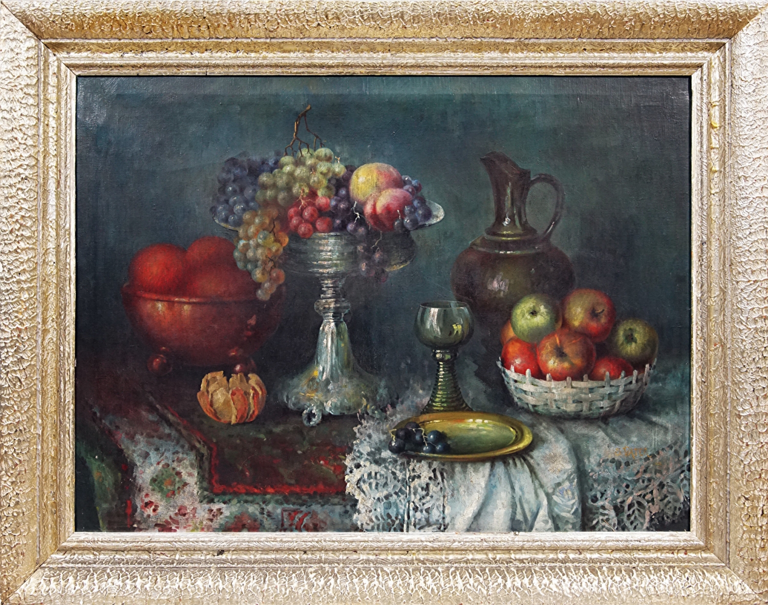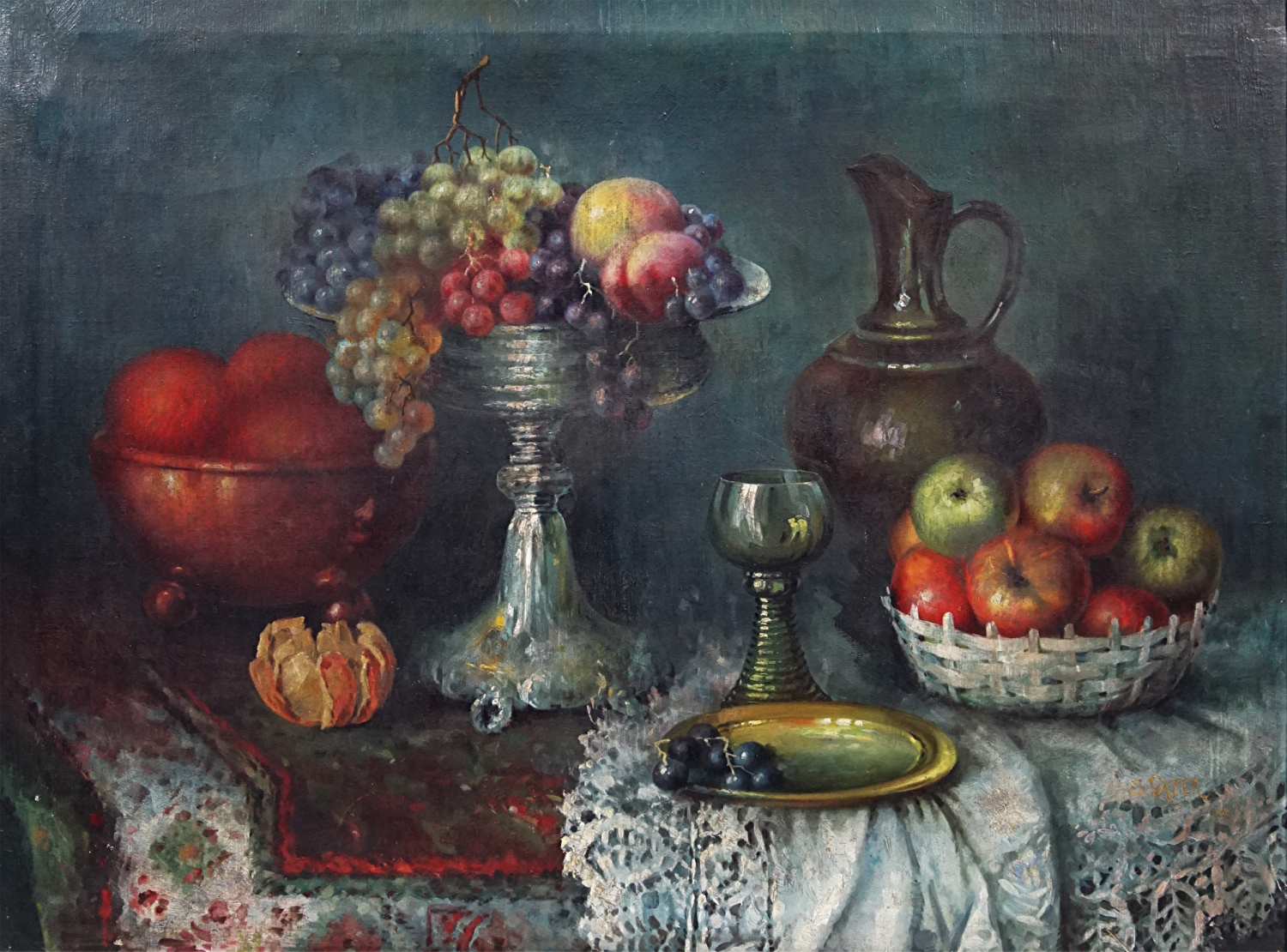 Obraz J. Vater – Zátiší s ovocem, olej na platně, stav viz foto