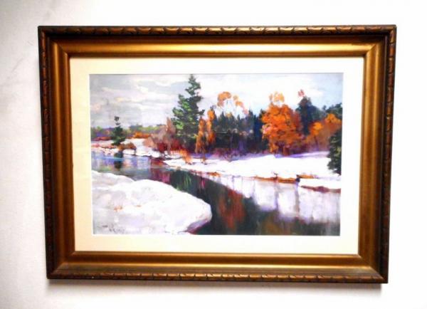 Obraz Tání zimní krajiny, kresba, pastel, zaskleno, pasparta.