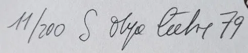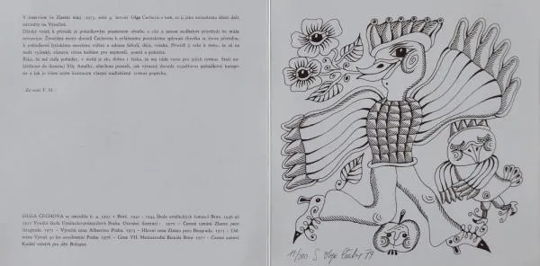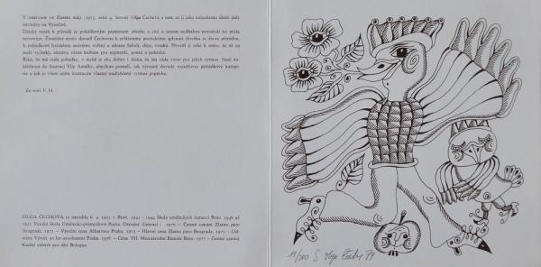 Linoryt na papíře 20,5 x 20,5 cm. Vlevo dole signováno tužkou, s datací 1979. Vlevo dole tužkou číslo listu 11 / 200. Nerámováno. Olga Čechová ( 6. 4. 1925 Brno – 24. 11. 2010 Praha ) studium: Škola uměleckých řemesel v Brně 1941 – 1944 prof. Petr Dillinger, arch. Zdeněk Rossmann. Vysoká škola uměleckoprůmyslová v Praze 1946 – 1951 prof. Antonín Strnadel, prof. Karel Svolinský. členka: skupina Trasa, Sdružení českých umělců grafiků Hollar, Český fond výtvarných umění.