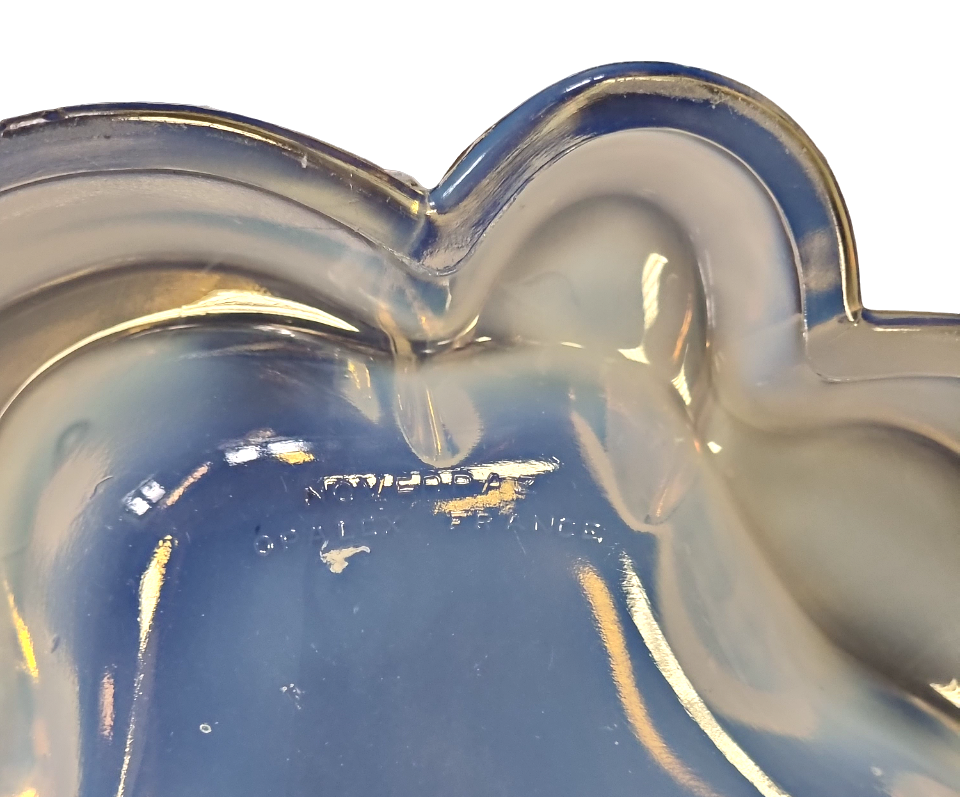 Popis: Popelník z opálového skla. Art deco. Signováno Noverraz Oplalex France.