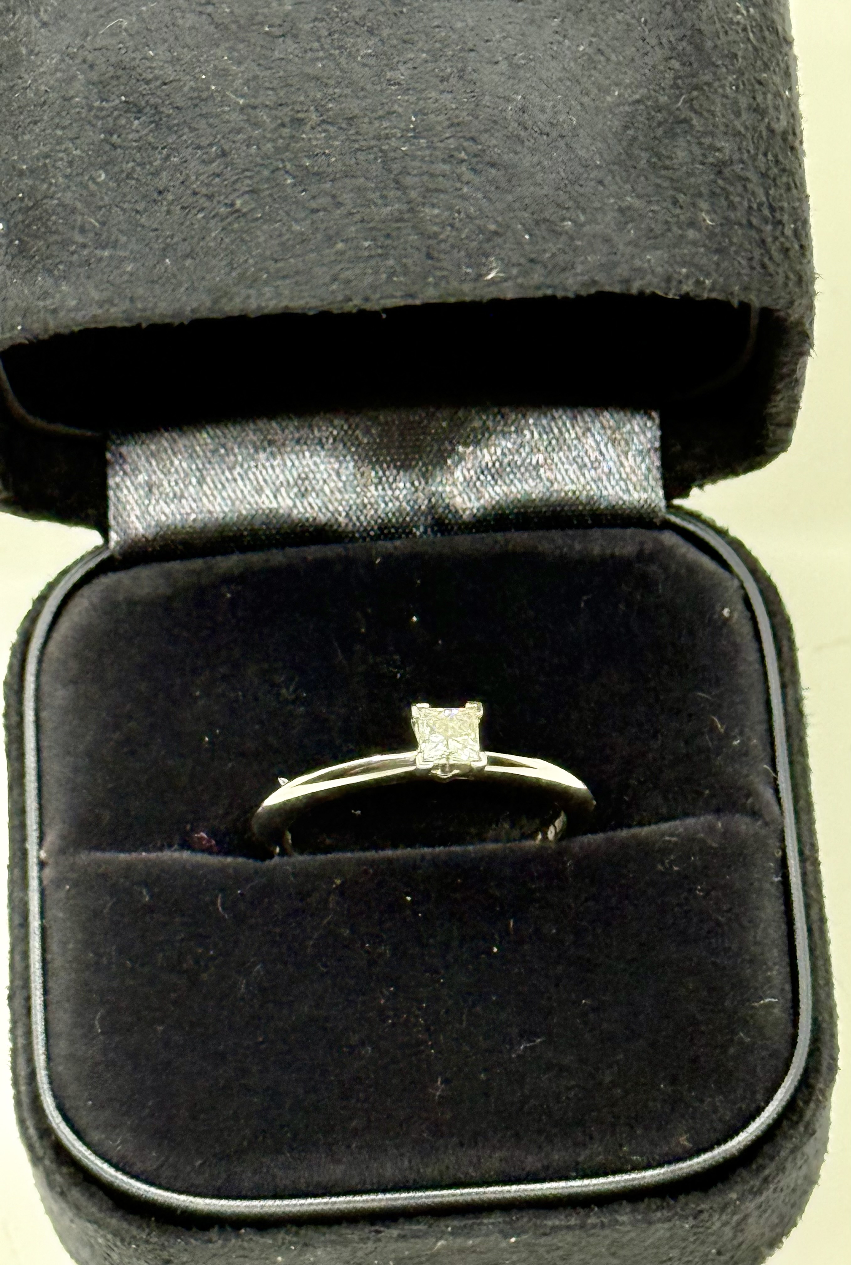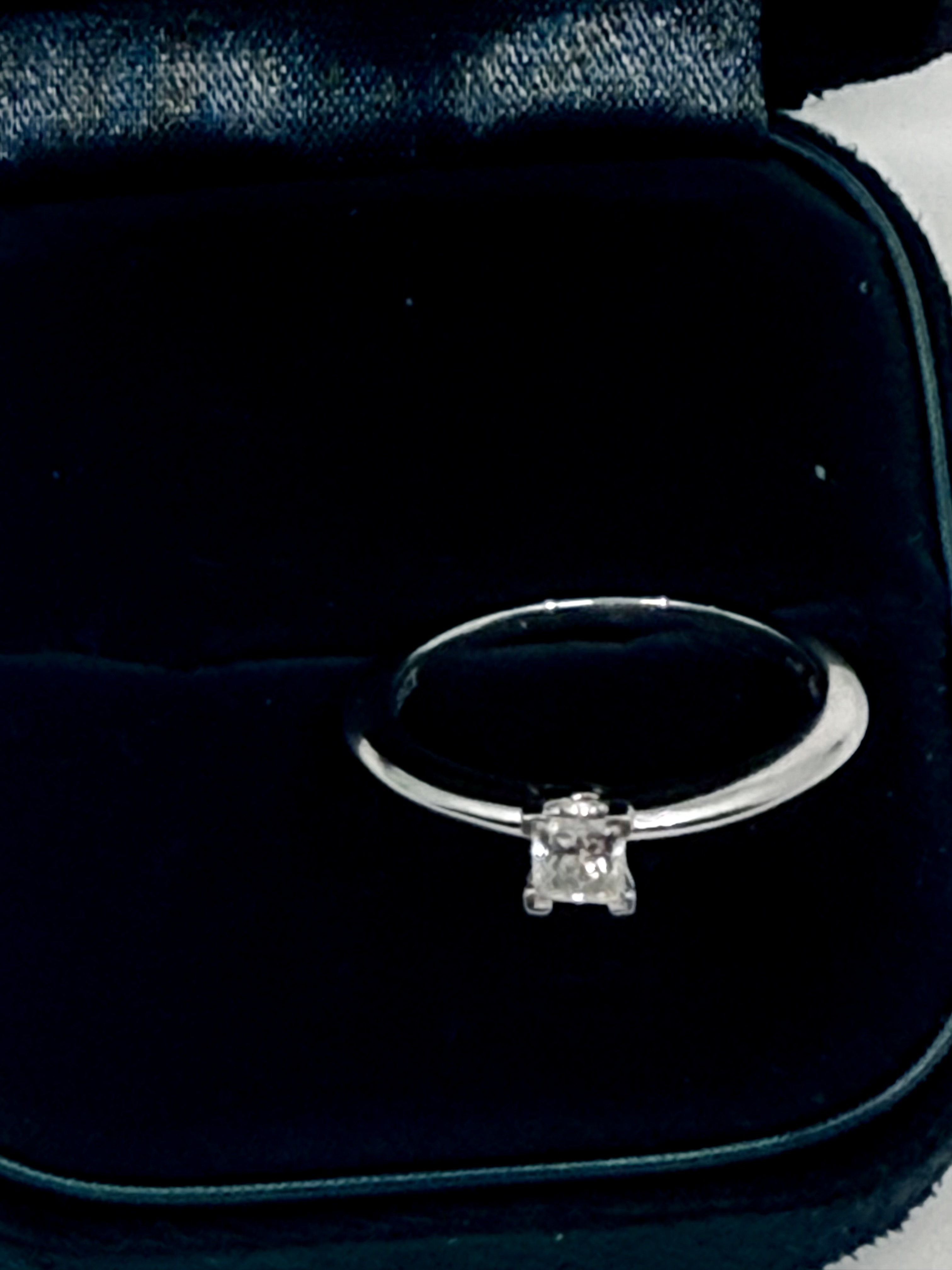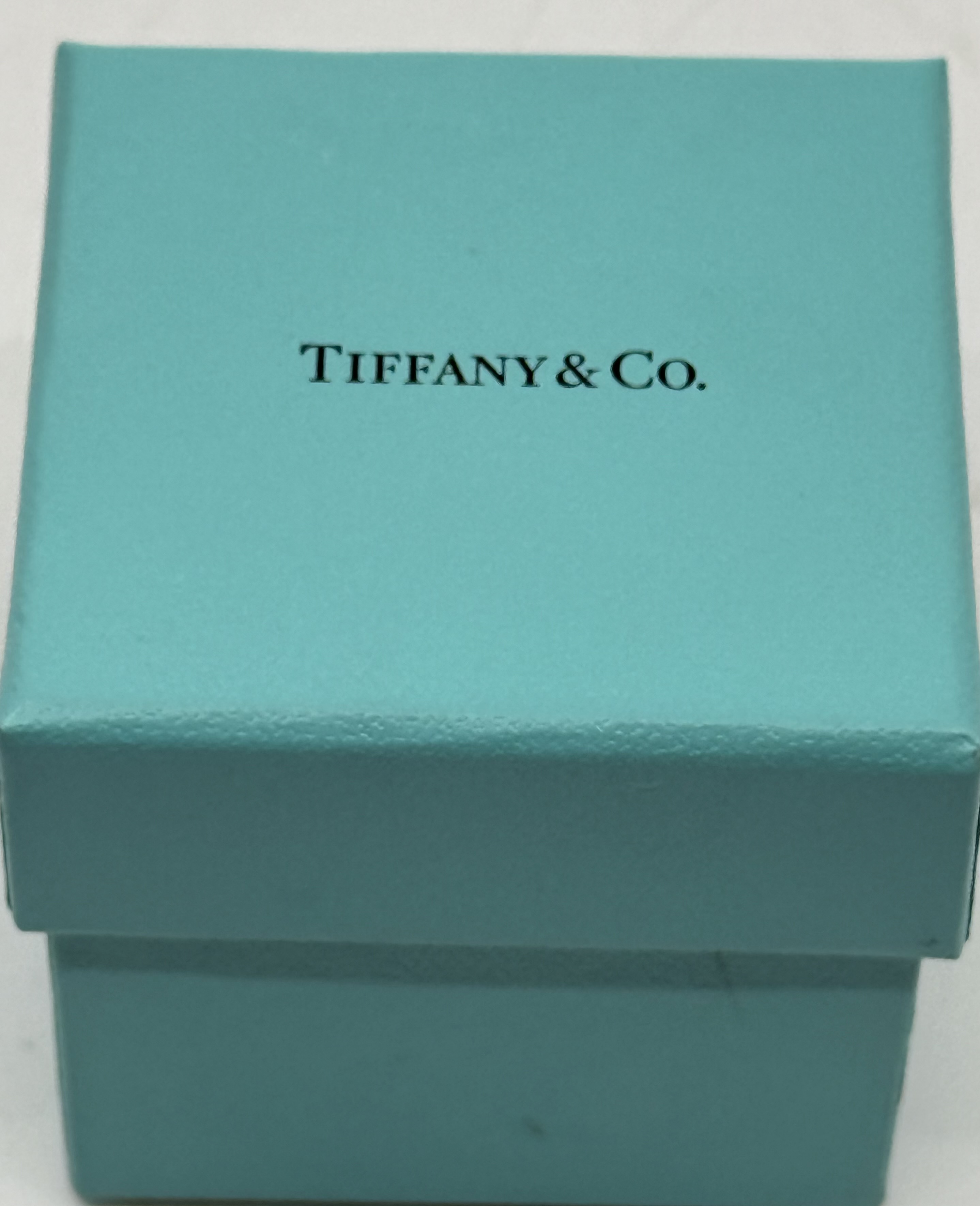 Značený prsten Tiffany s briliantem v platební ně 950/ 000 , polštářkového brusu o hmotnosti 0,23 ct. Původní krabičky . Váha 3,62 g. Velikost 0.53. Certifikát pravosti přiložen.