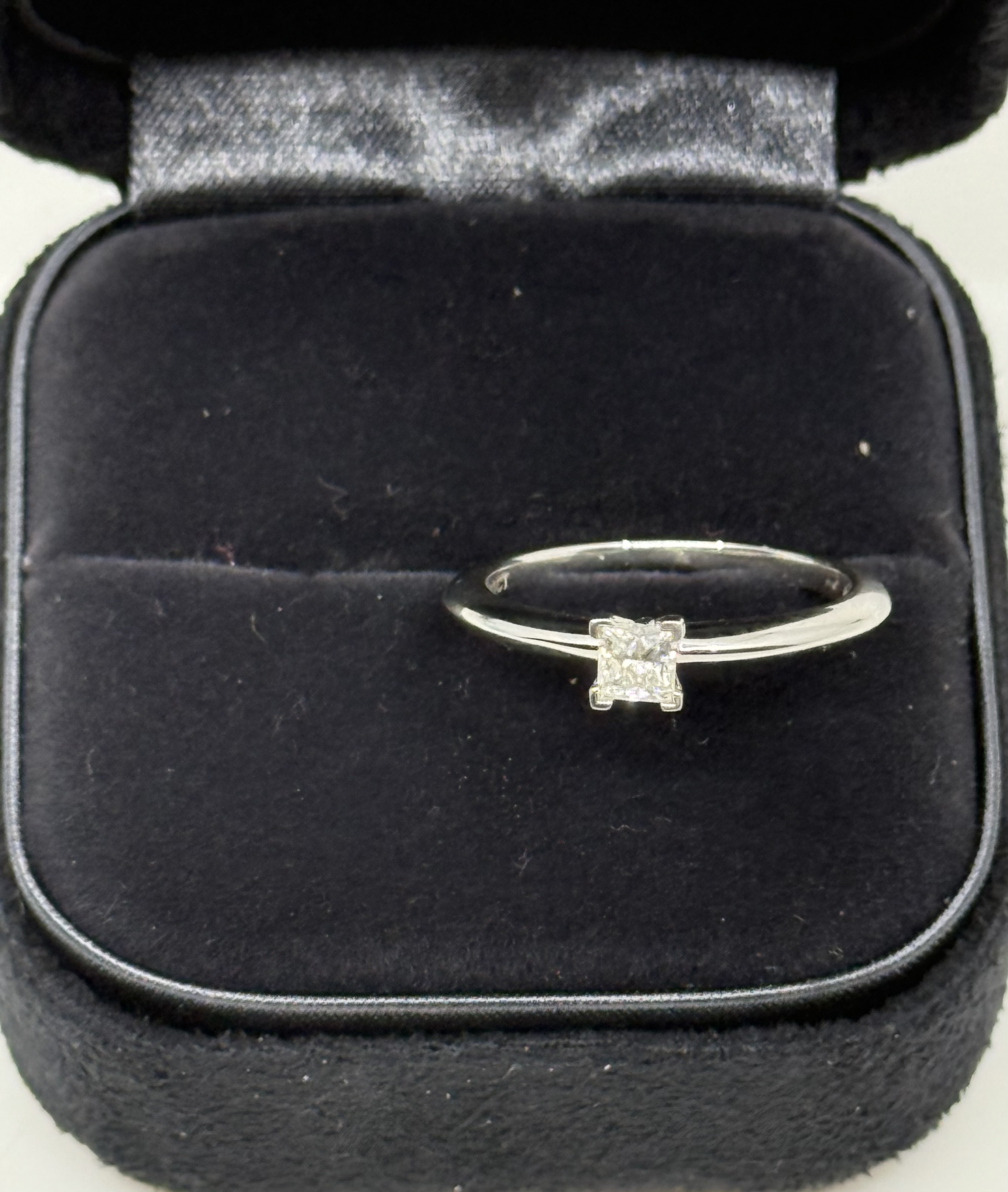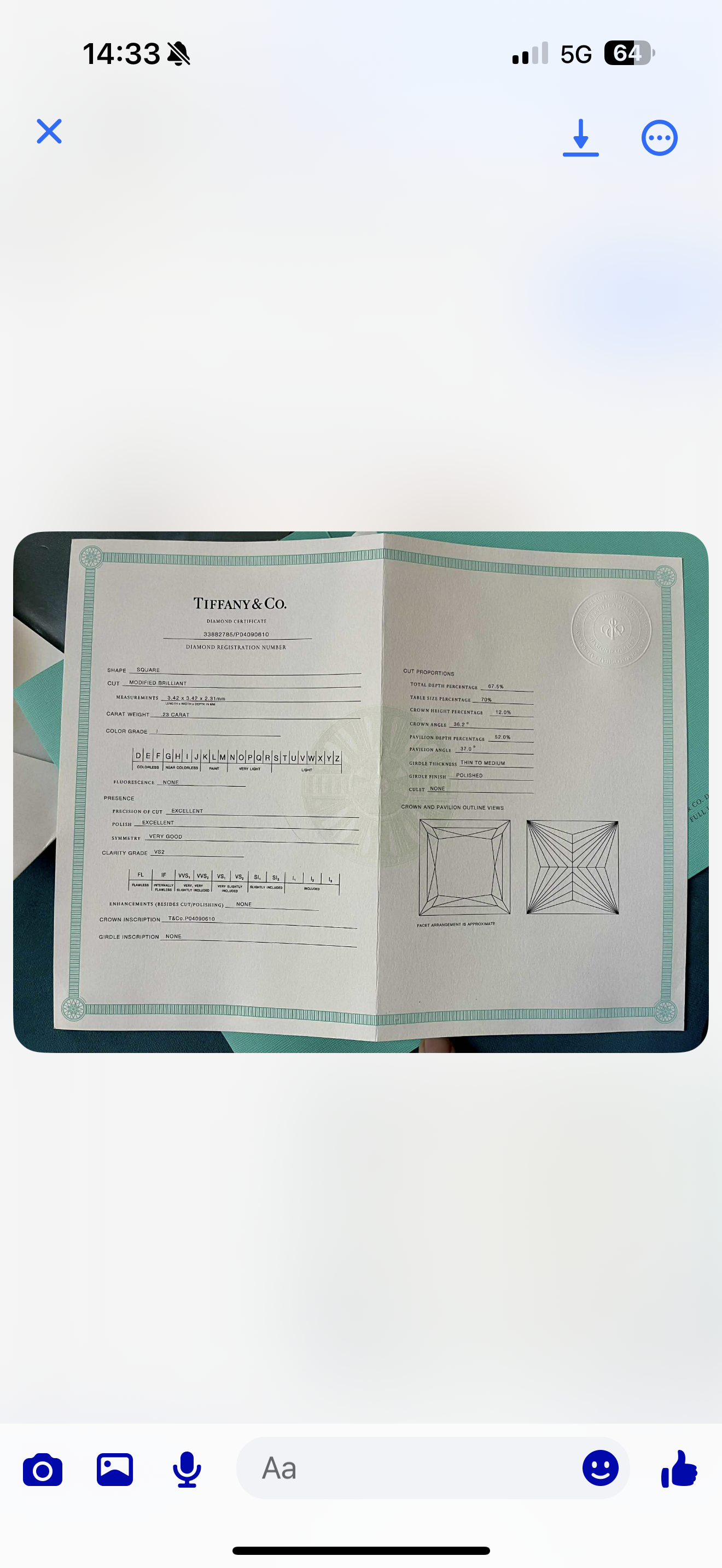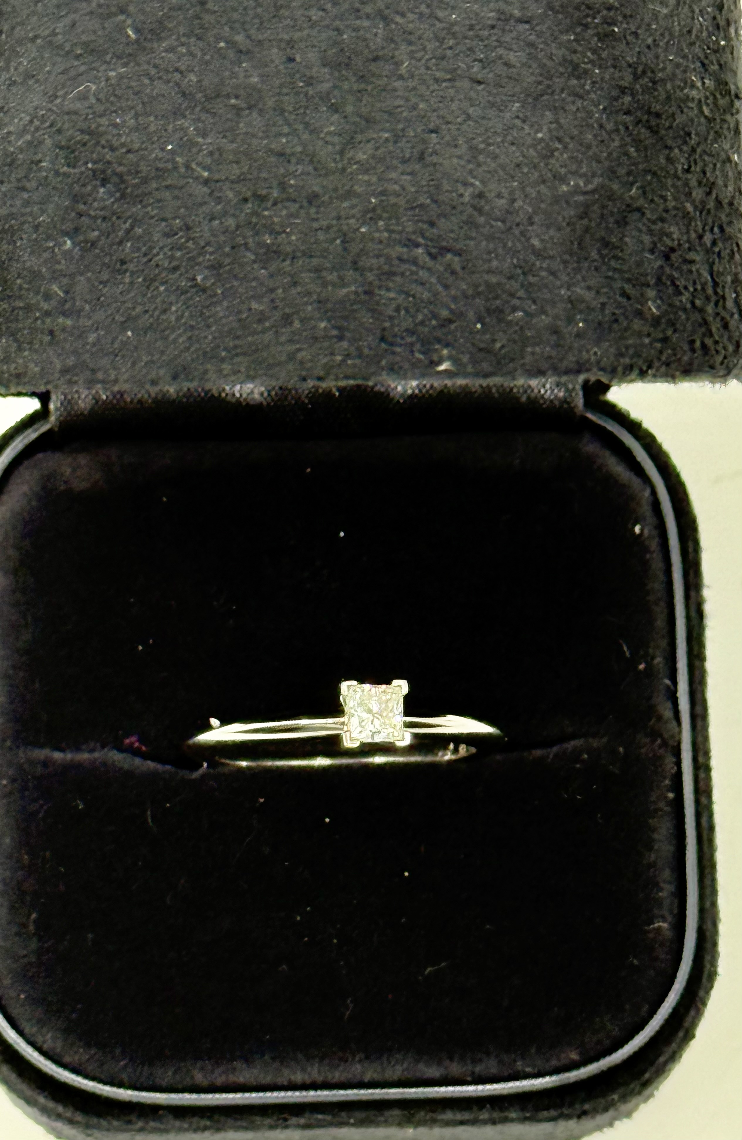 Značený prsten Tiffany s briliantem v platební ně 950/ 000 , polštářkového brusu o hmotnosti 0,23 ct. Původní krabičky . Váha 3,62 g. Velikost 0.53. Certifikát pravosti přiložen.