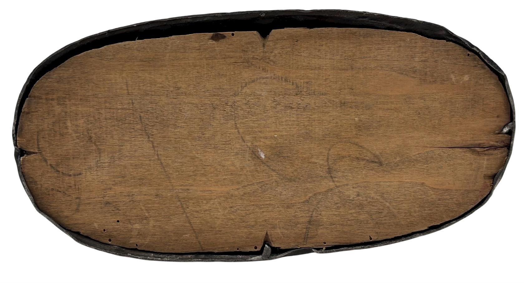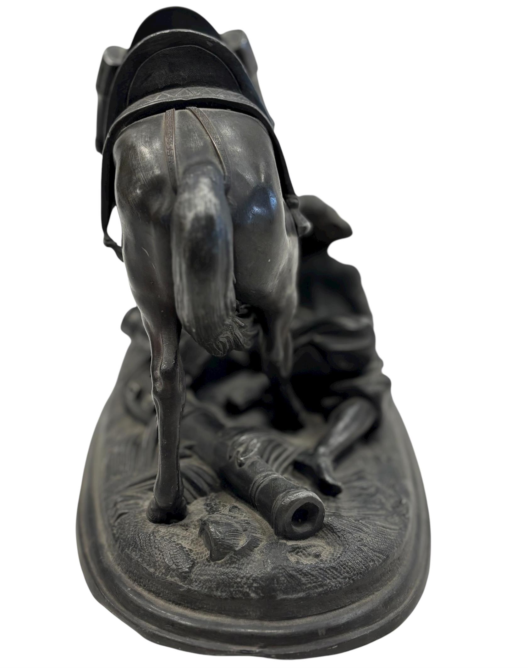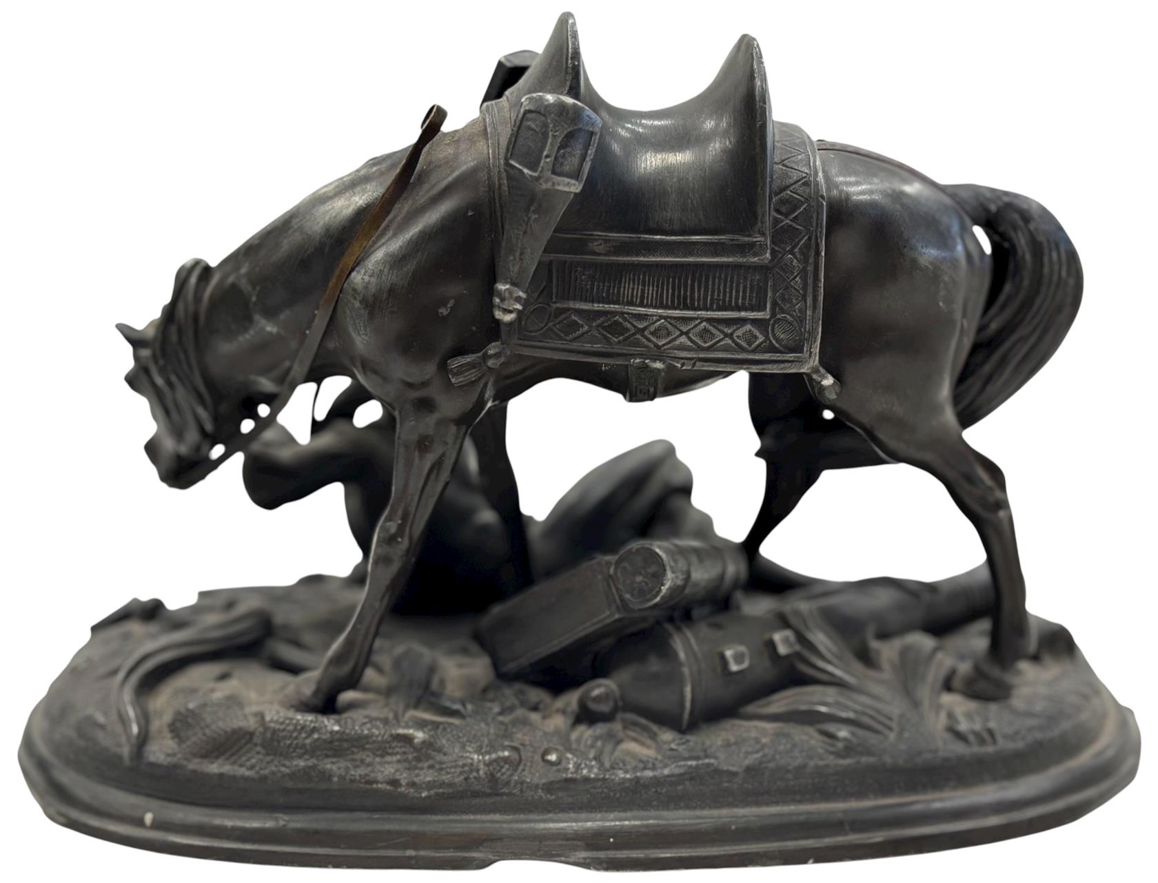 Cínová socha z poloviny 19. století. Výška: 13,5 cm, šířka: 25 cm Stav: Dobrý