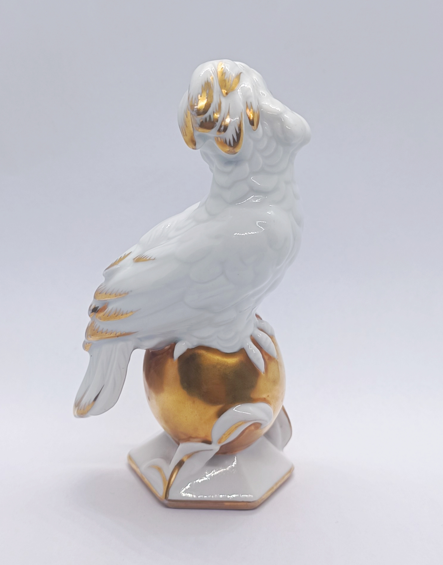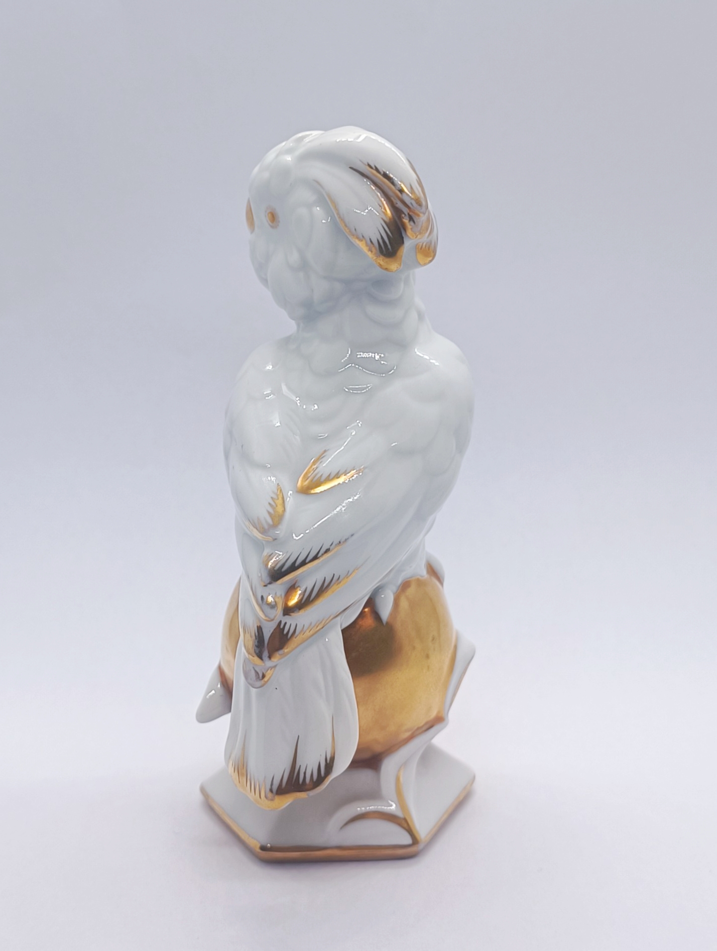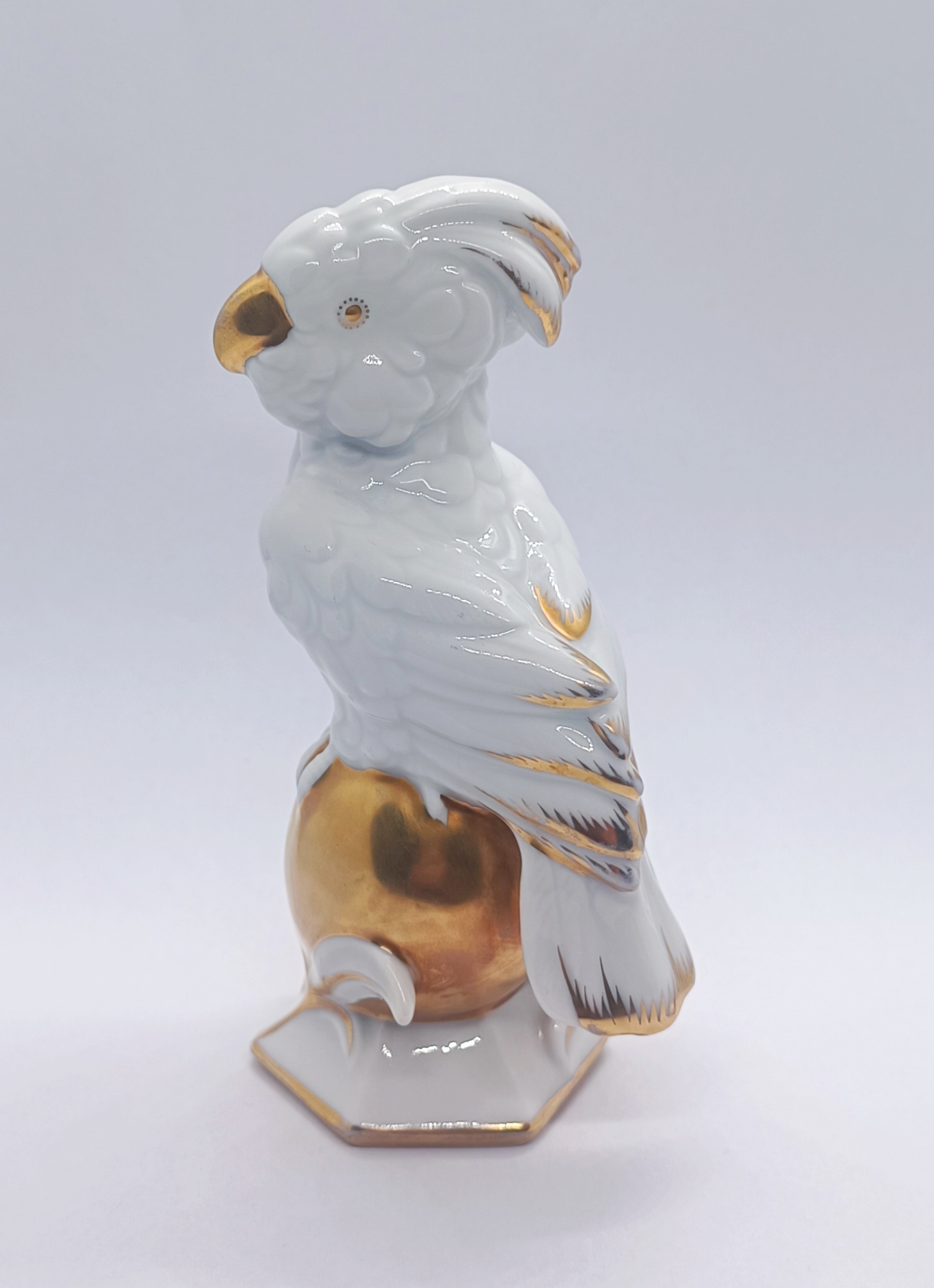 Porcelánová soška papouška, značeno Schlaggenwald/Slavkov, Československo, rok 1932