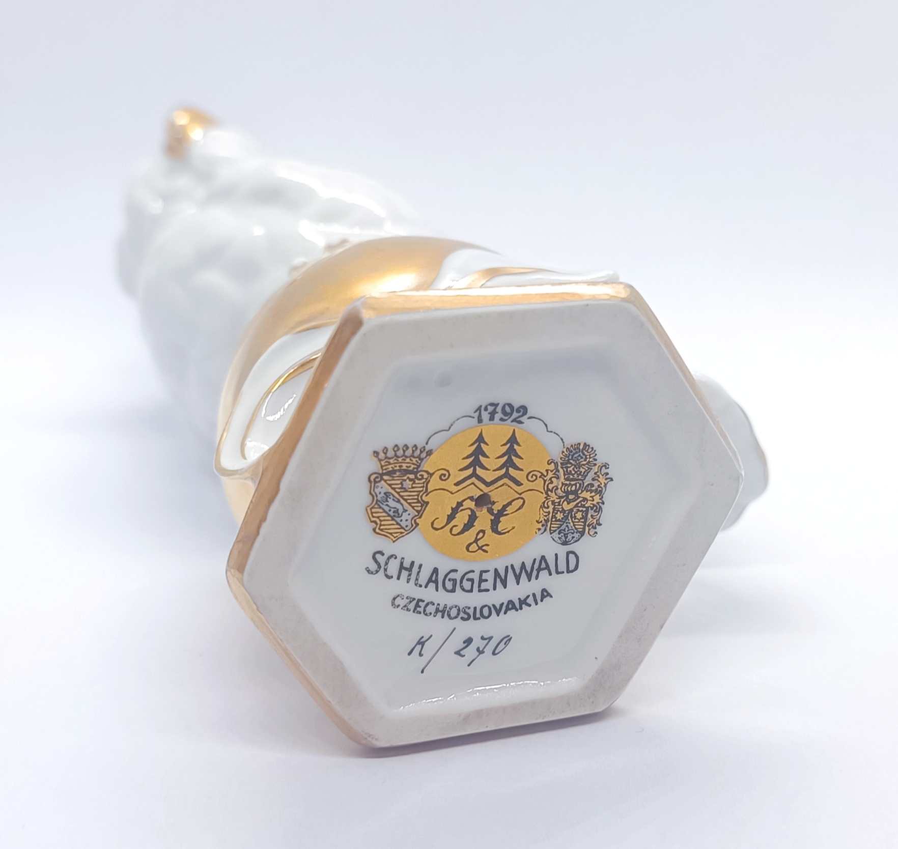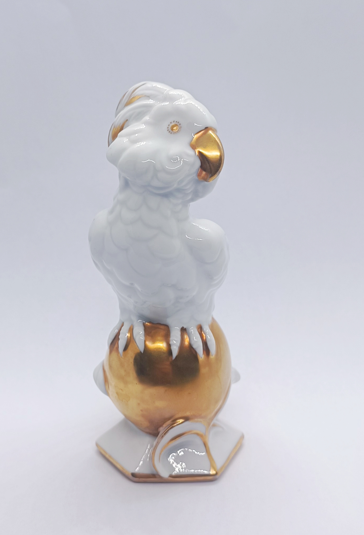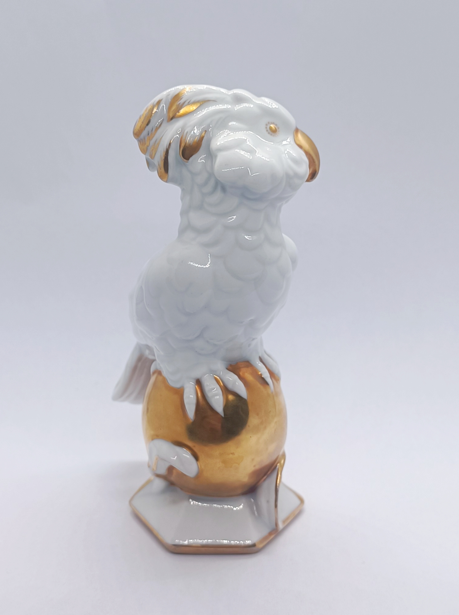 Porcelánová soška papouška, značeno Schlaggenwald/Slavkov, Československo, rok 1932