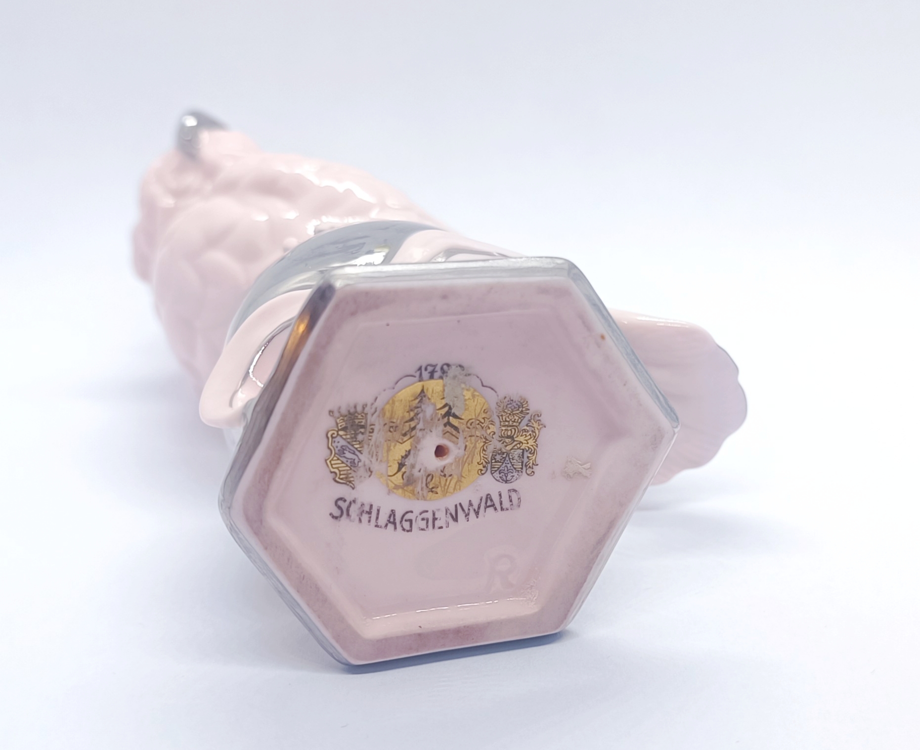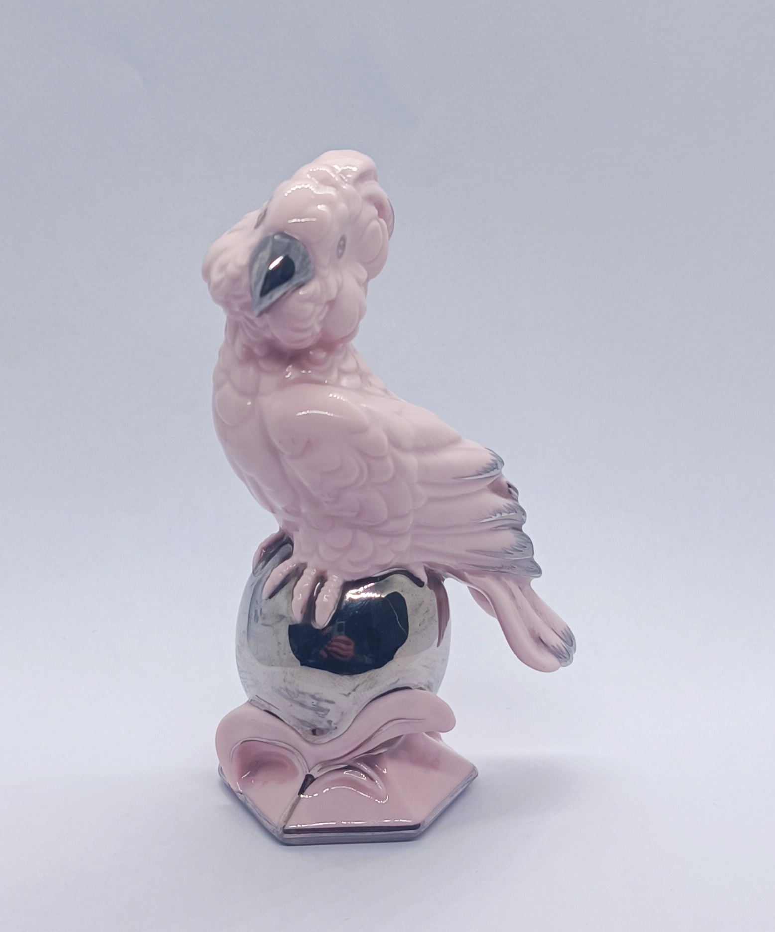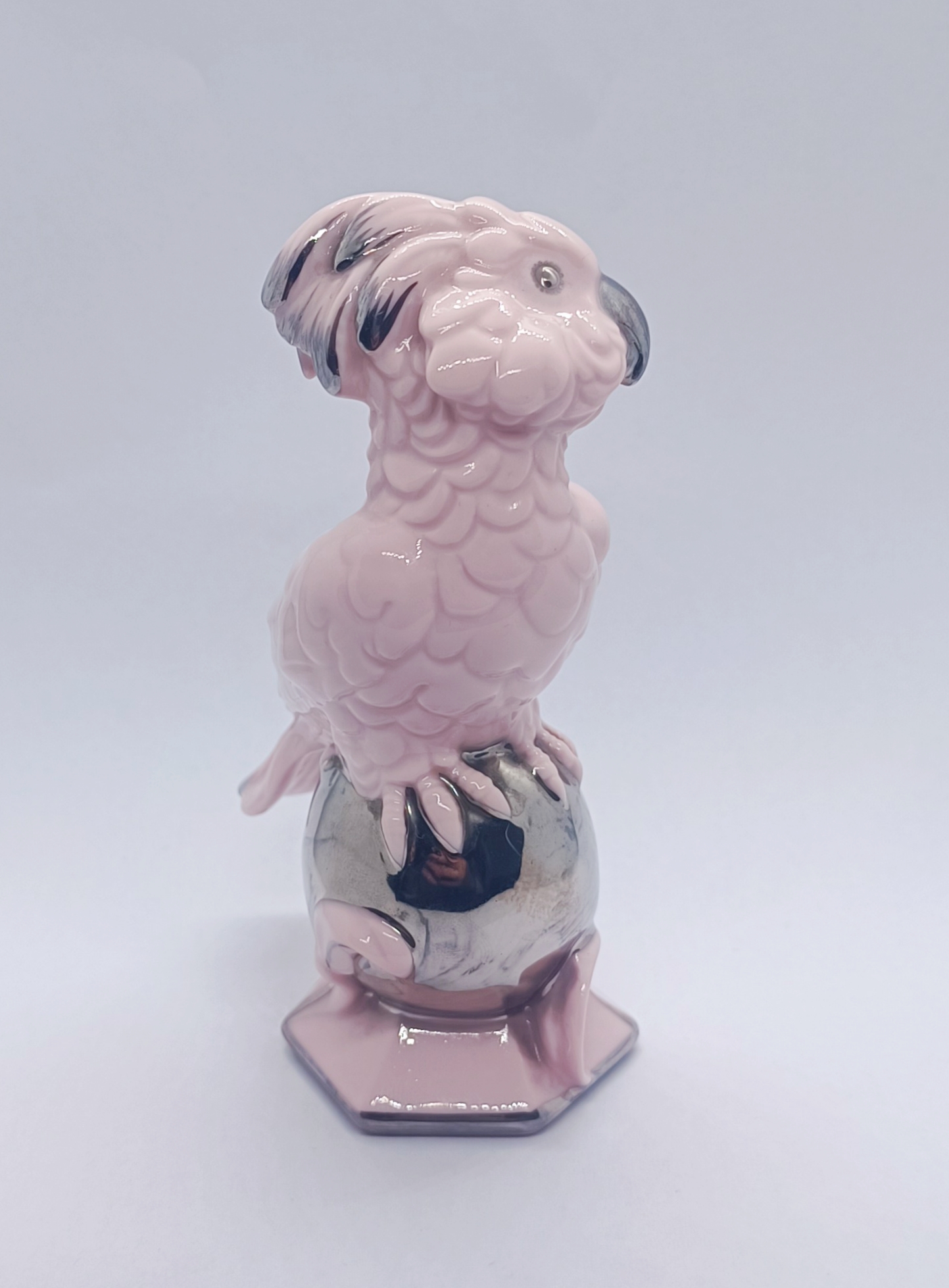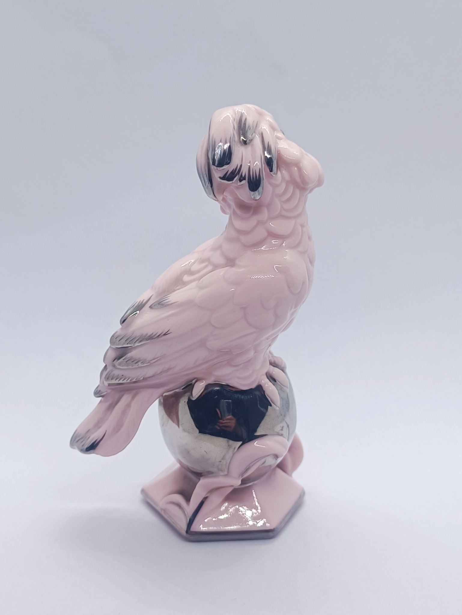 Porcelánová soška papouška, značeno Schlaggenwald/Slavkov, Československo, rok 1932; výška 12 cm