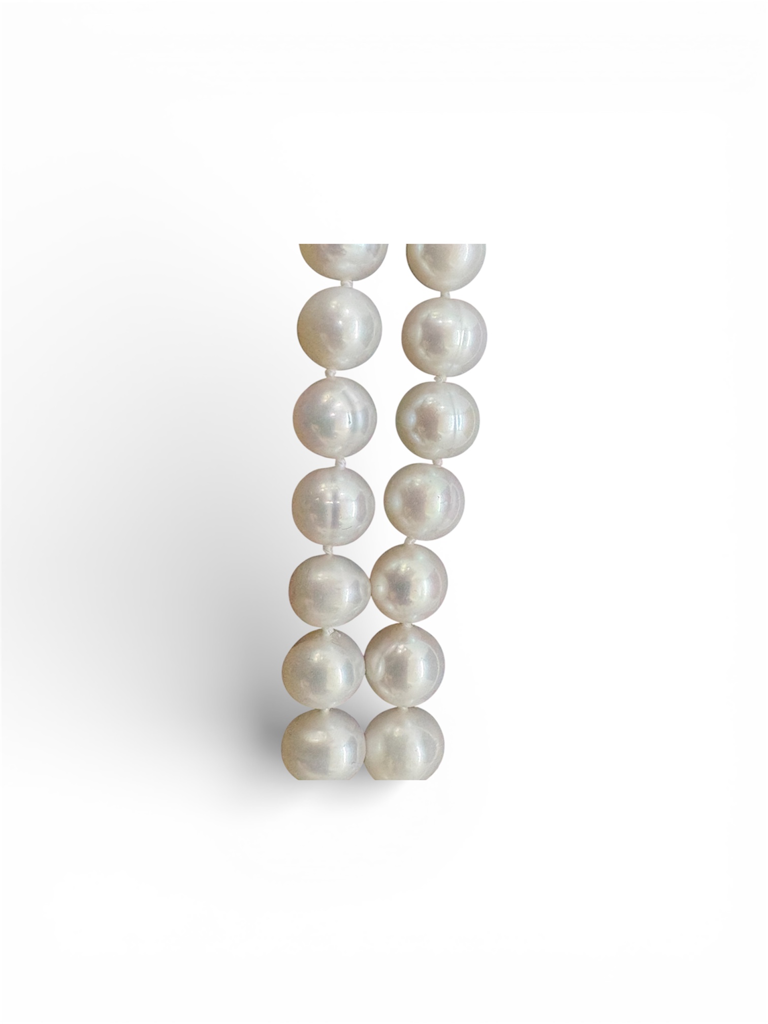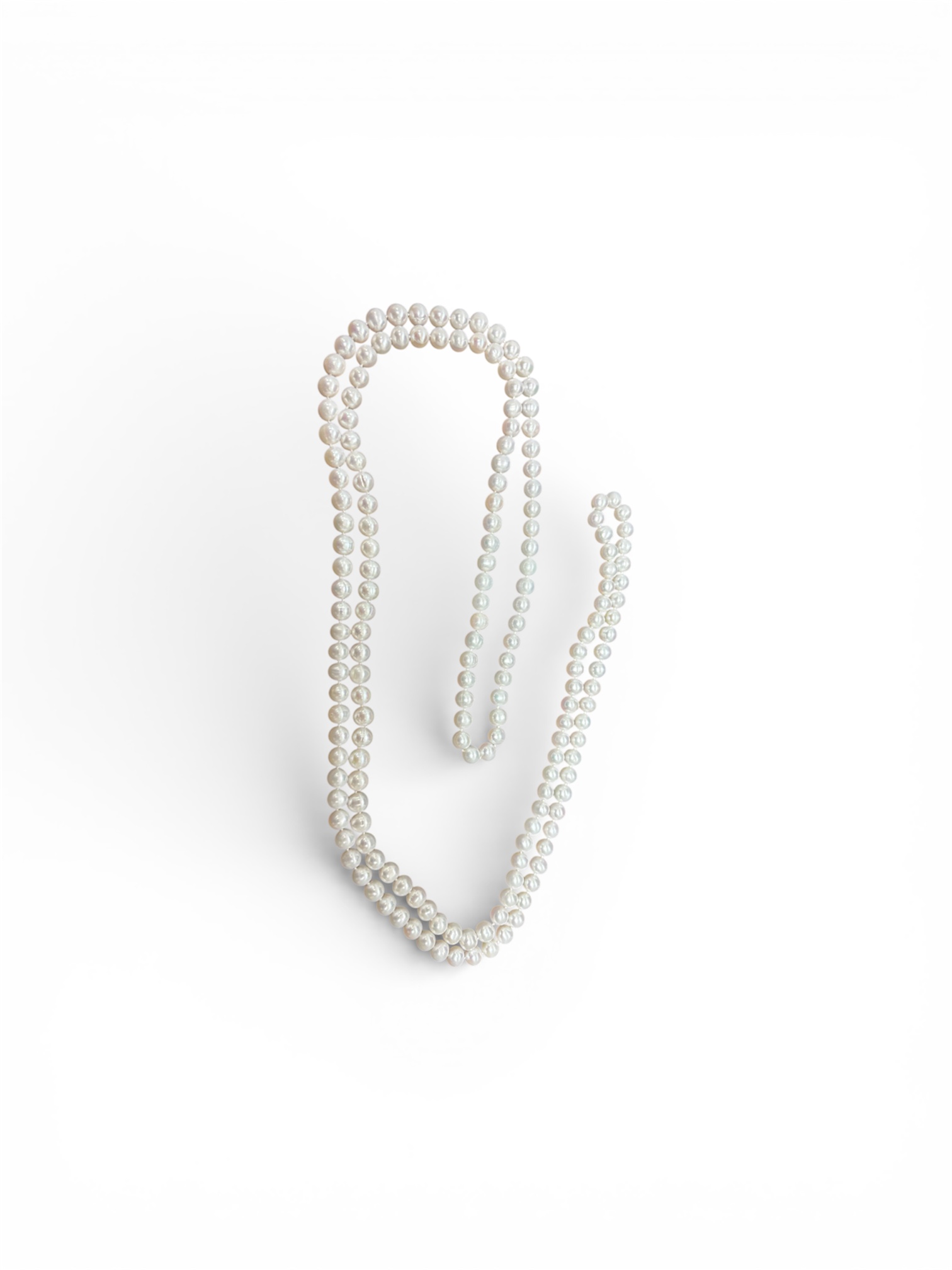 Šňůra z mořských perel. Čechy, začátek 20. století. Délka: 80 cm, průměr perly: 0,8 cm.