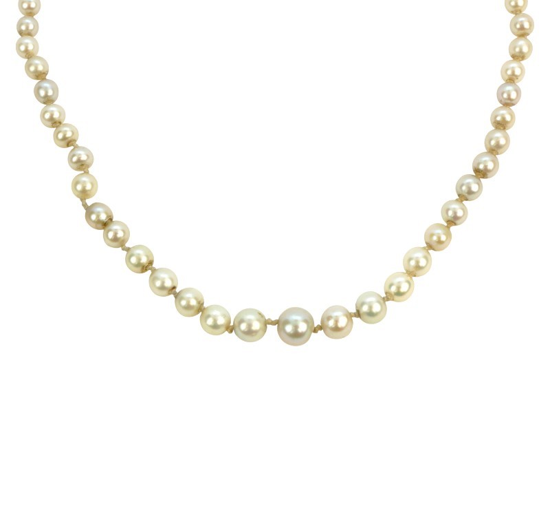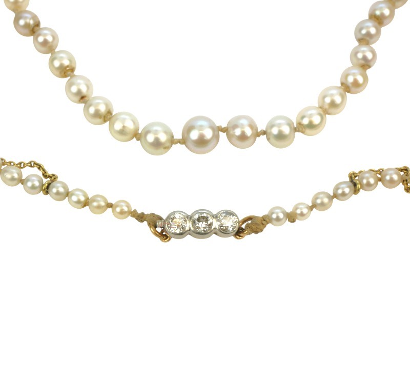 Starožitný náhrdelník z říčních perel se zlatým uzávěrem a brilianty ,