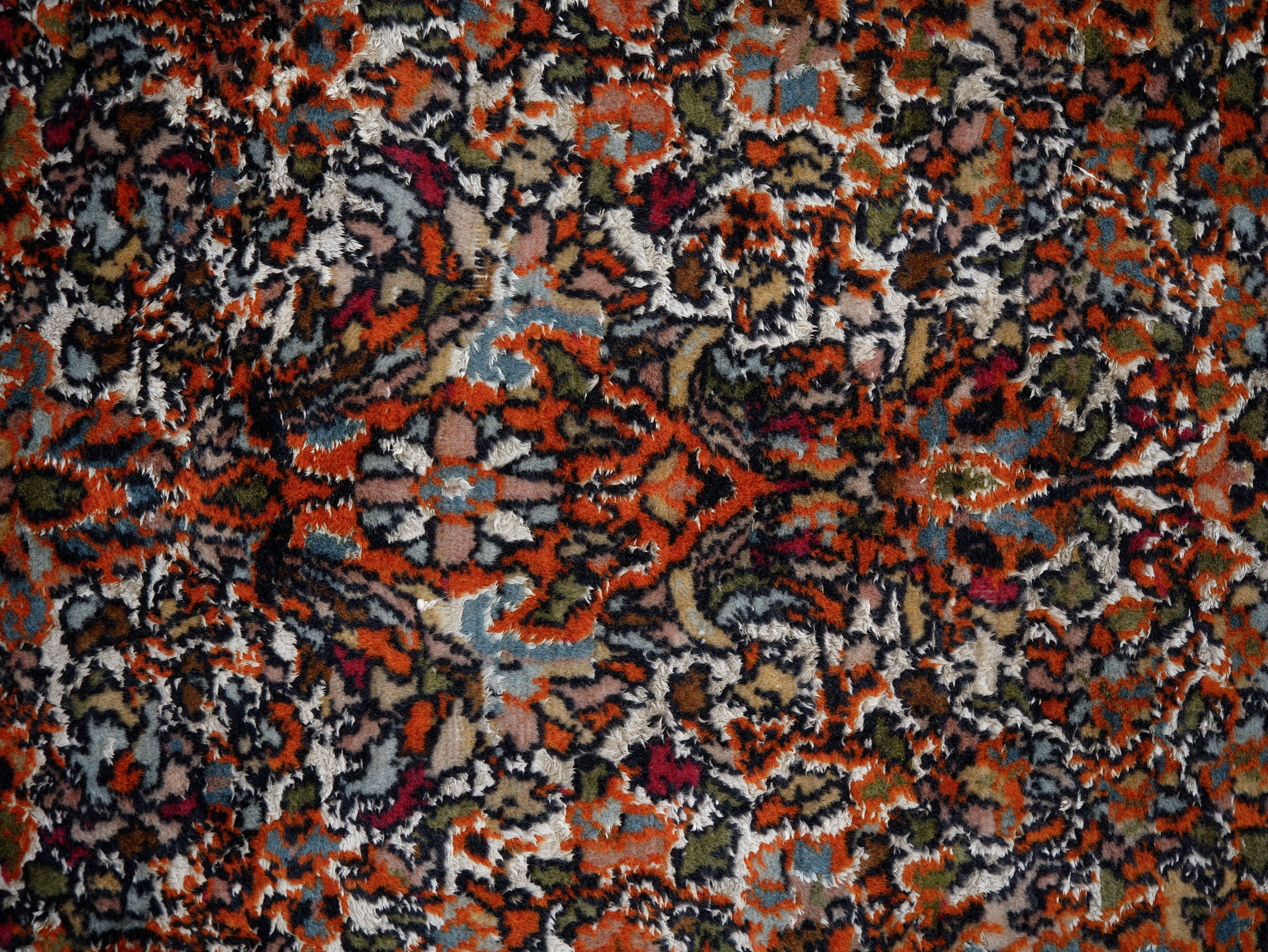 Kompozice je založena na výrazném centrálním medailonu, kolem něhož se rozvíjí hustý květinový dekor s bohatou arabeskovou kresbou. Jemná vazba umožňuje mimořádně detailní provedení motivů, které jsou pro koberce z Ghomu charakteristické.