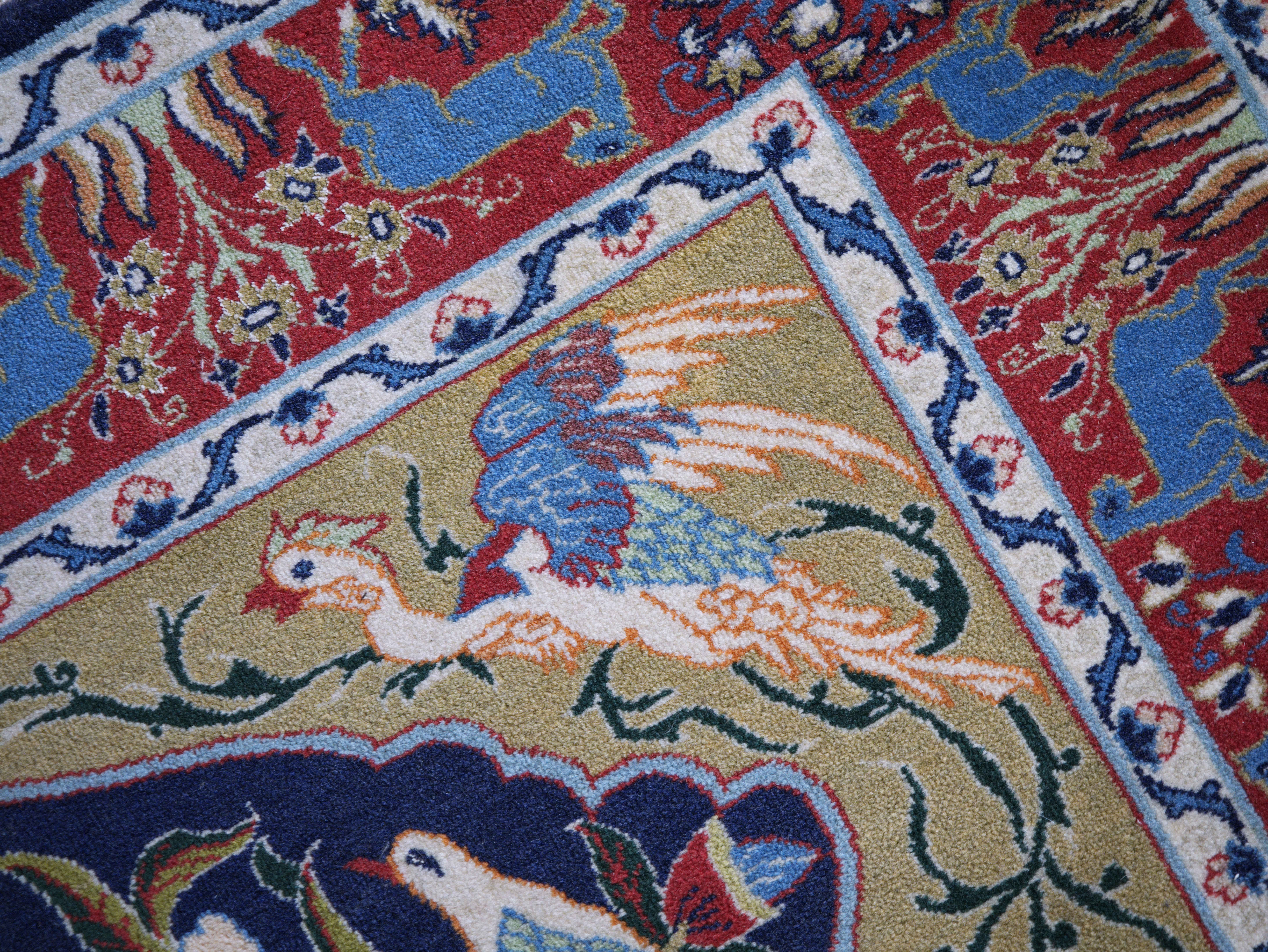 Isfahanské koberce patří mezi nejvyhledávanější perské práce díky jemnosti materiálu, vysoké kvalitě zpracování a harmonickému výtvarnému pojetí. Tento kus je vhodný jako reprezentativní dekorace do interiéru, na stěnu, stůl, komodu nebo do sbírky orientálních koberců.