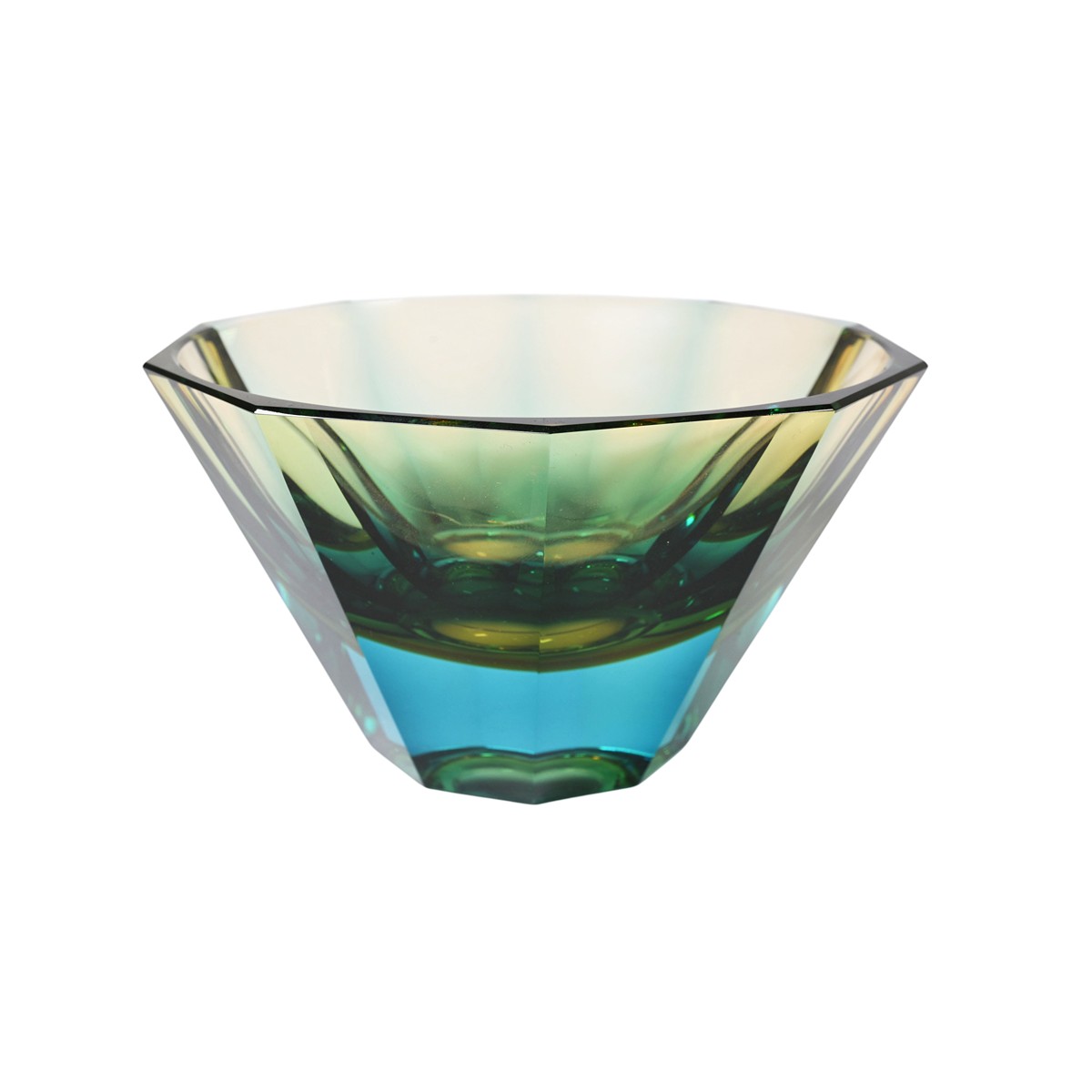 Materiál: sklo, broušené hrany Rozměry: výška 7,5 cm, průměr 12,5 cm Značení: nesignováno Stav: výborný