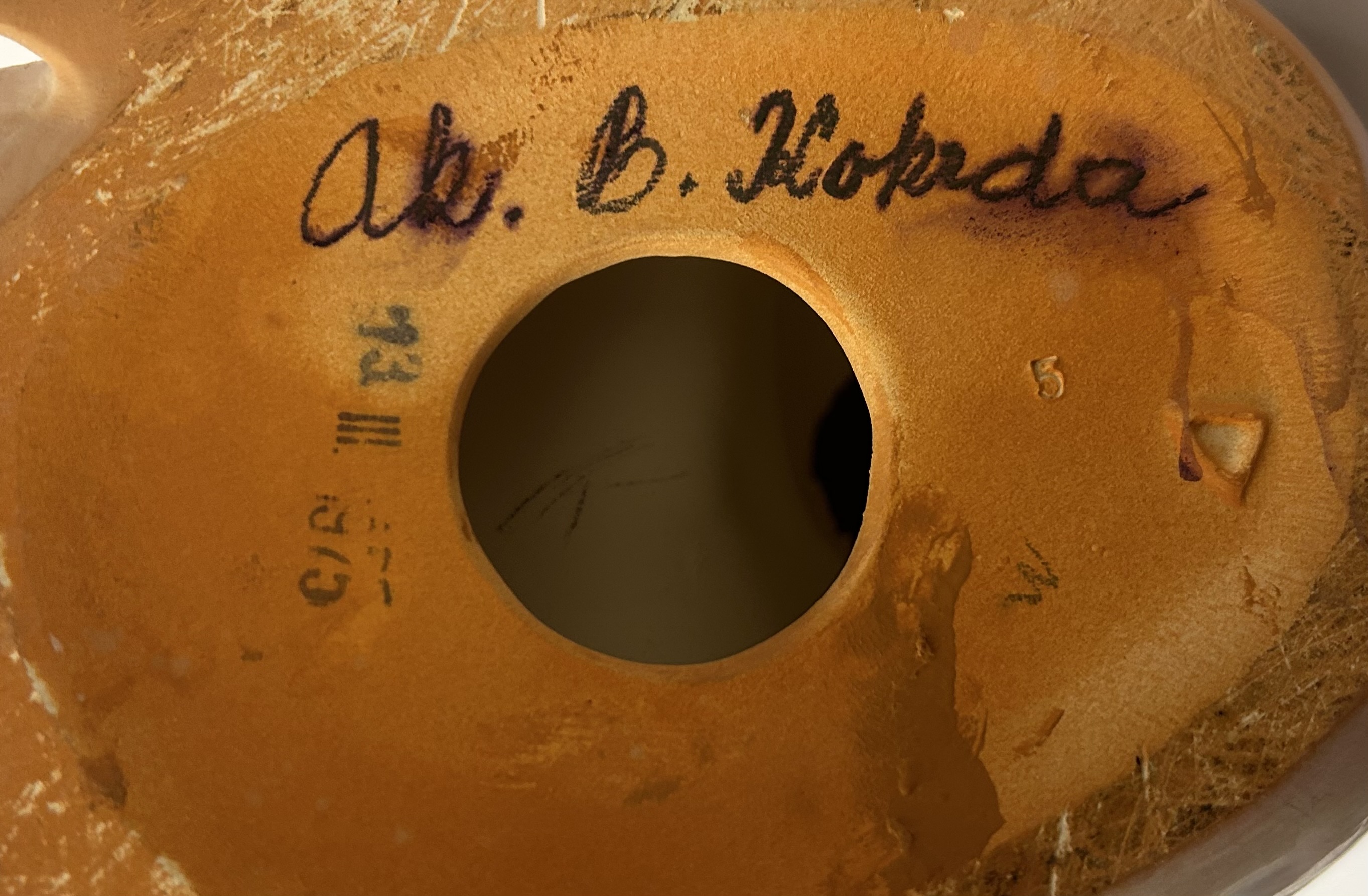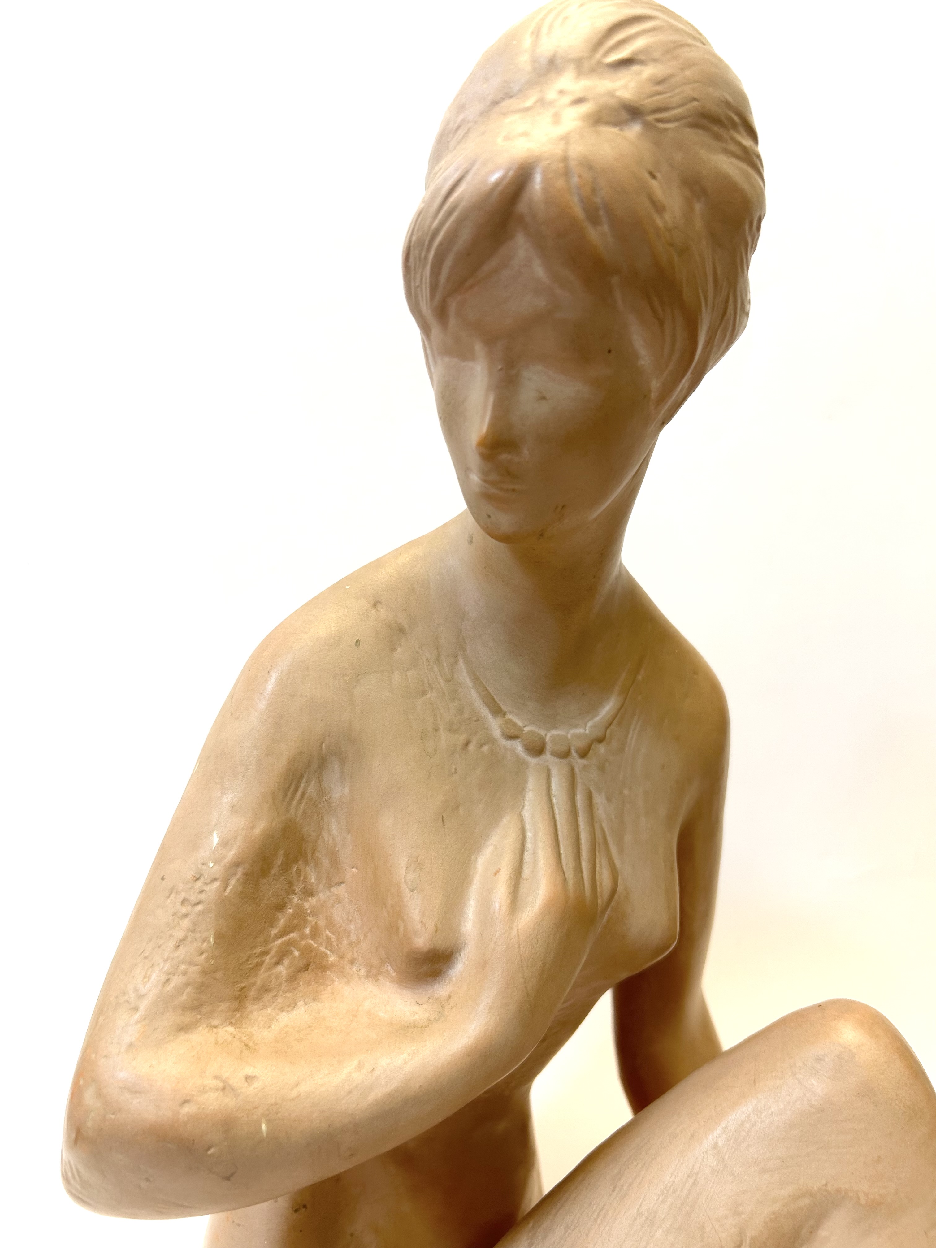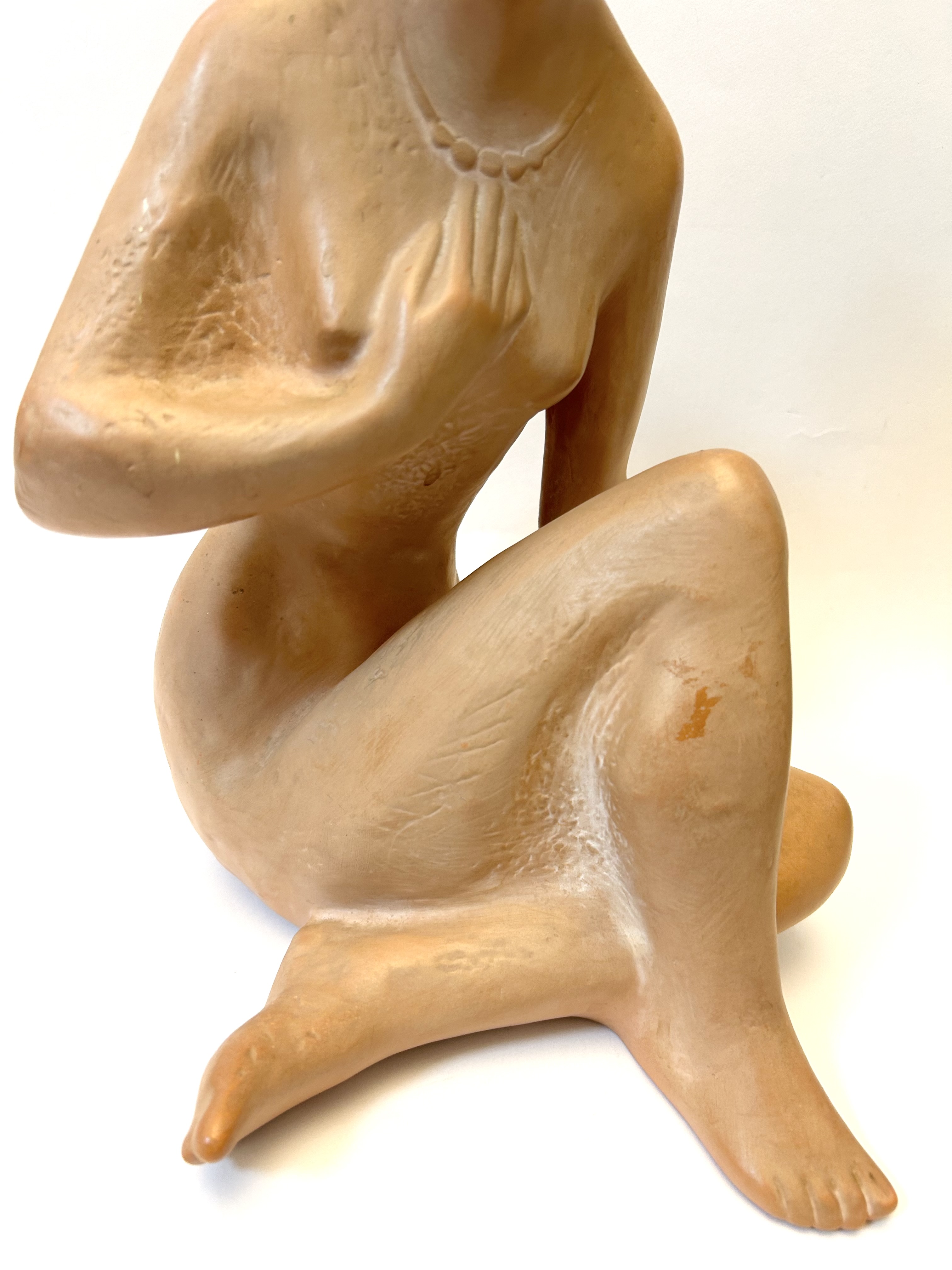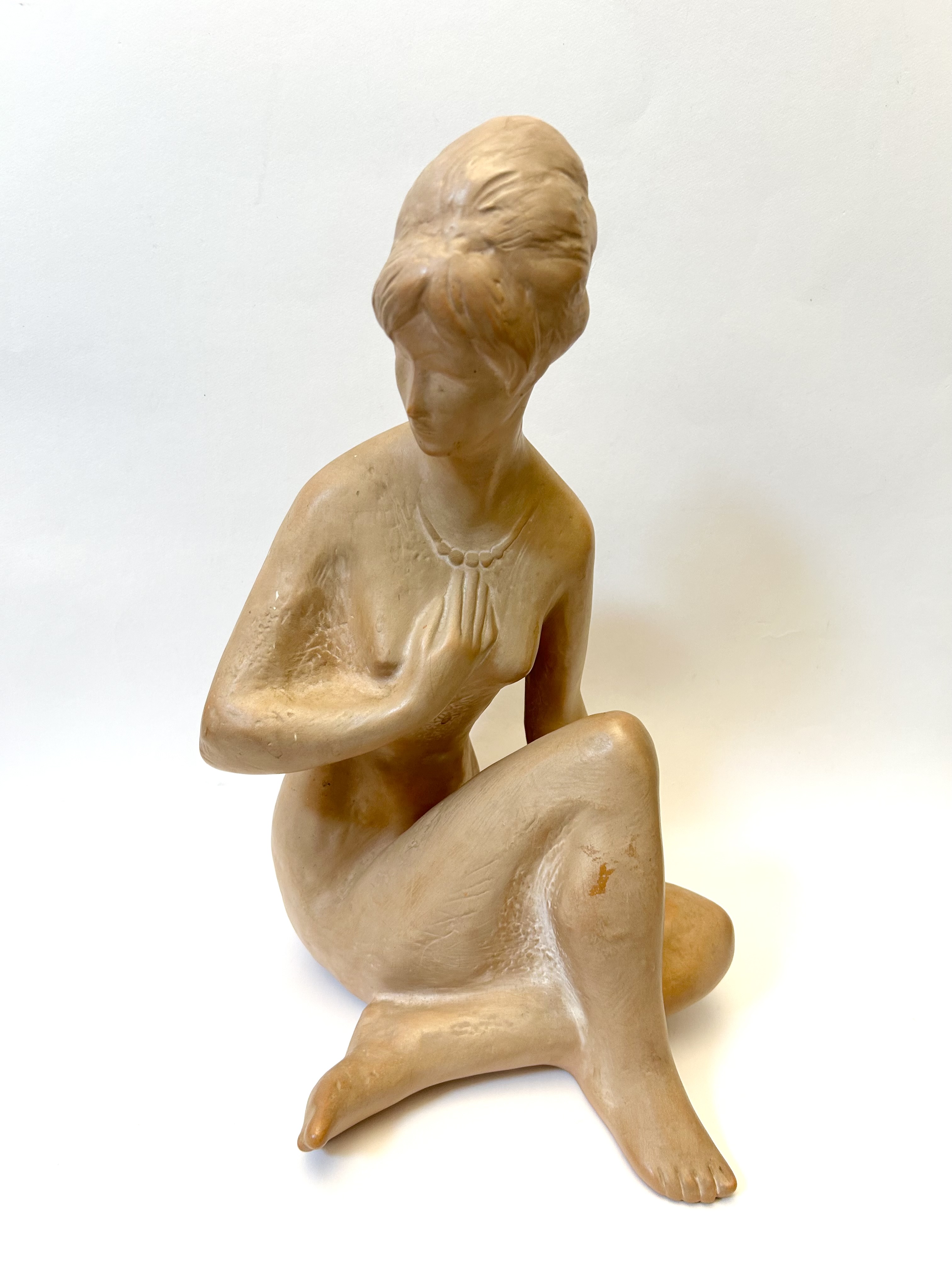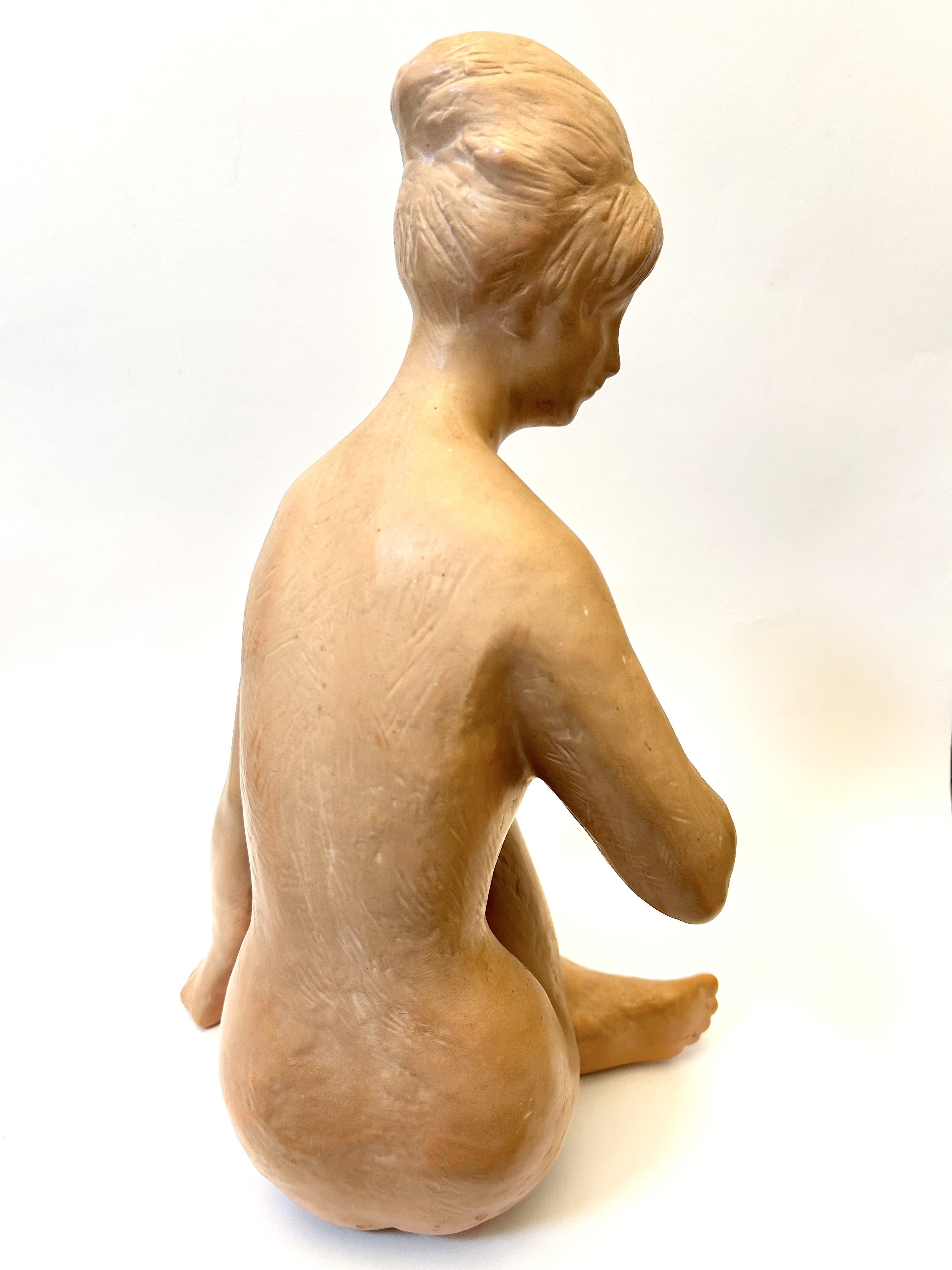 Plastika „Sedící dívka“ Keramika – Bechyně Akademický sochař Bohumil Kokrda 13. 3. 1975 Rozměr 38 x 24 cm