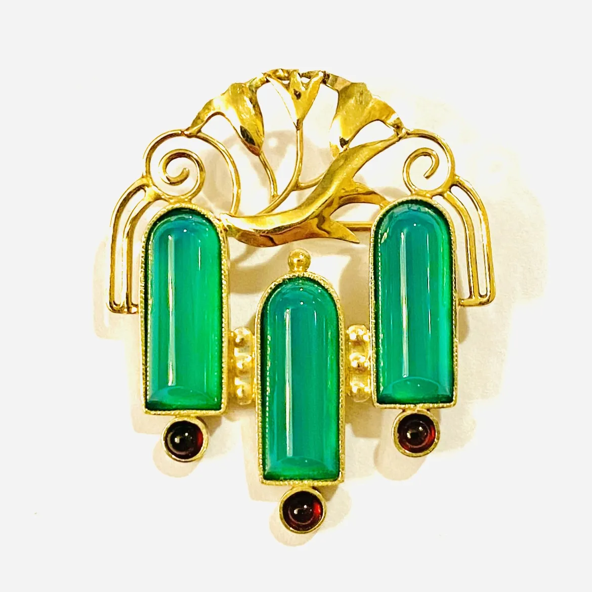 elegantní art deco brož z platiny a ze zlata, Pt+Au 6,10g/900+560/1000, diamanty briliantového brusu cca 1,4 ct a přírodní modré safíry, střední Evropa, kolem roku 1930; pěkná šperkařská práce; osvědčení Puncovního úřadu