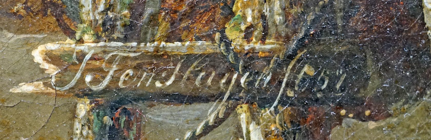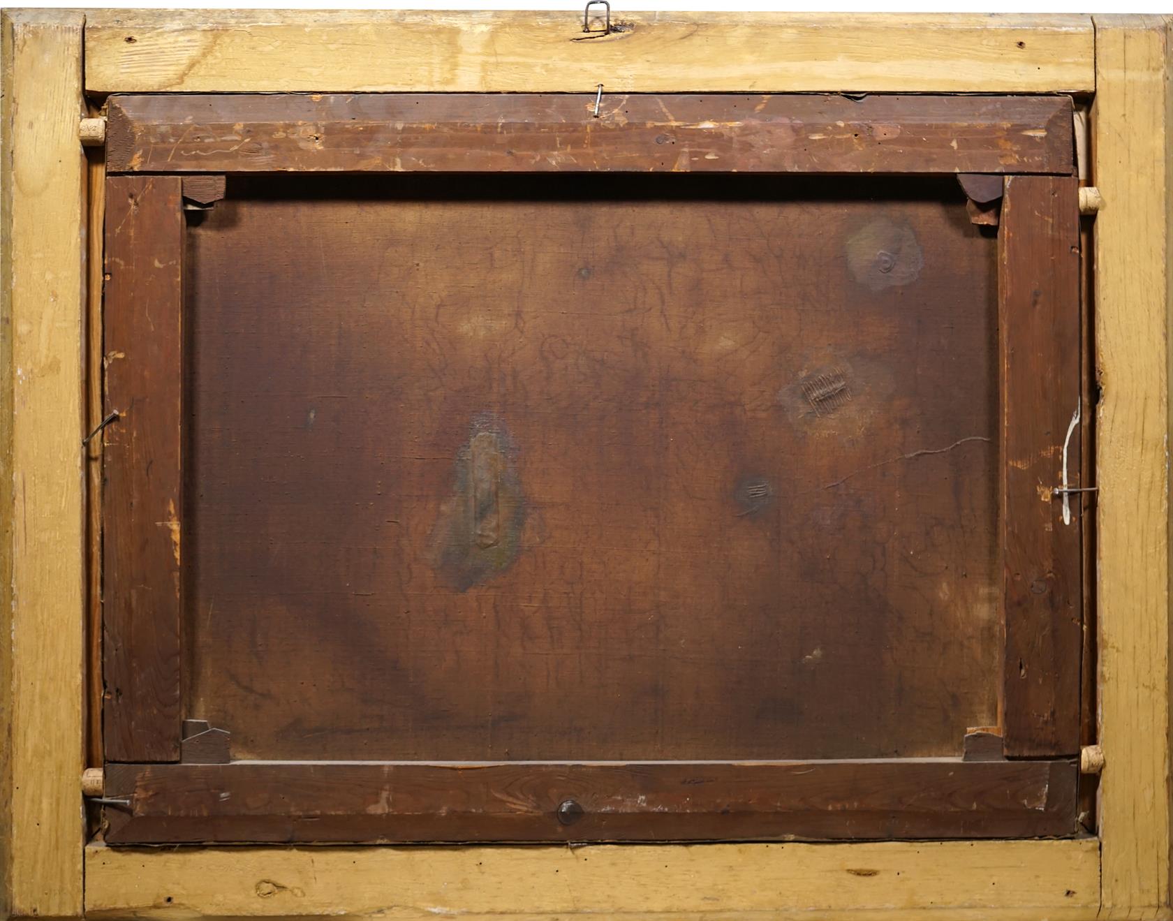 Technika: Olej na plátně Výška: 59 cm, šířka: 77 cm, rámování: 73 x 94 cm Stav: Mírně restaurovaná malba Signatura: signováno