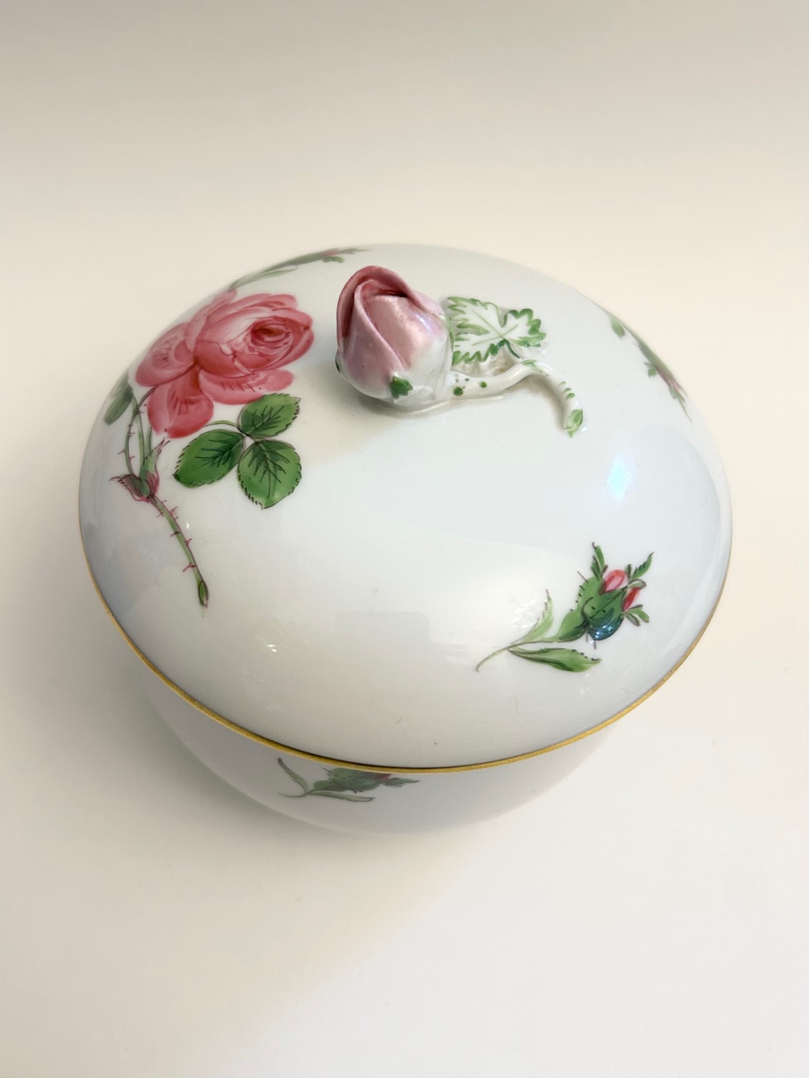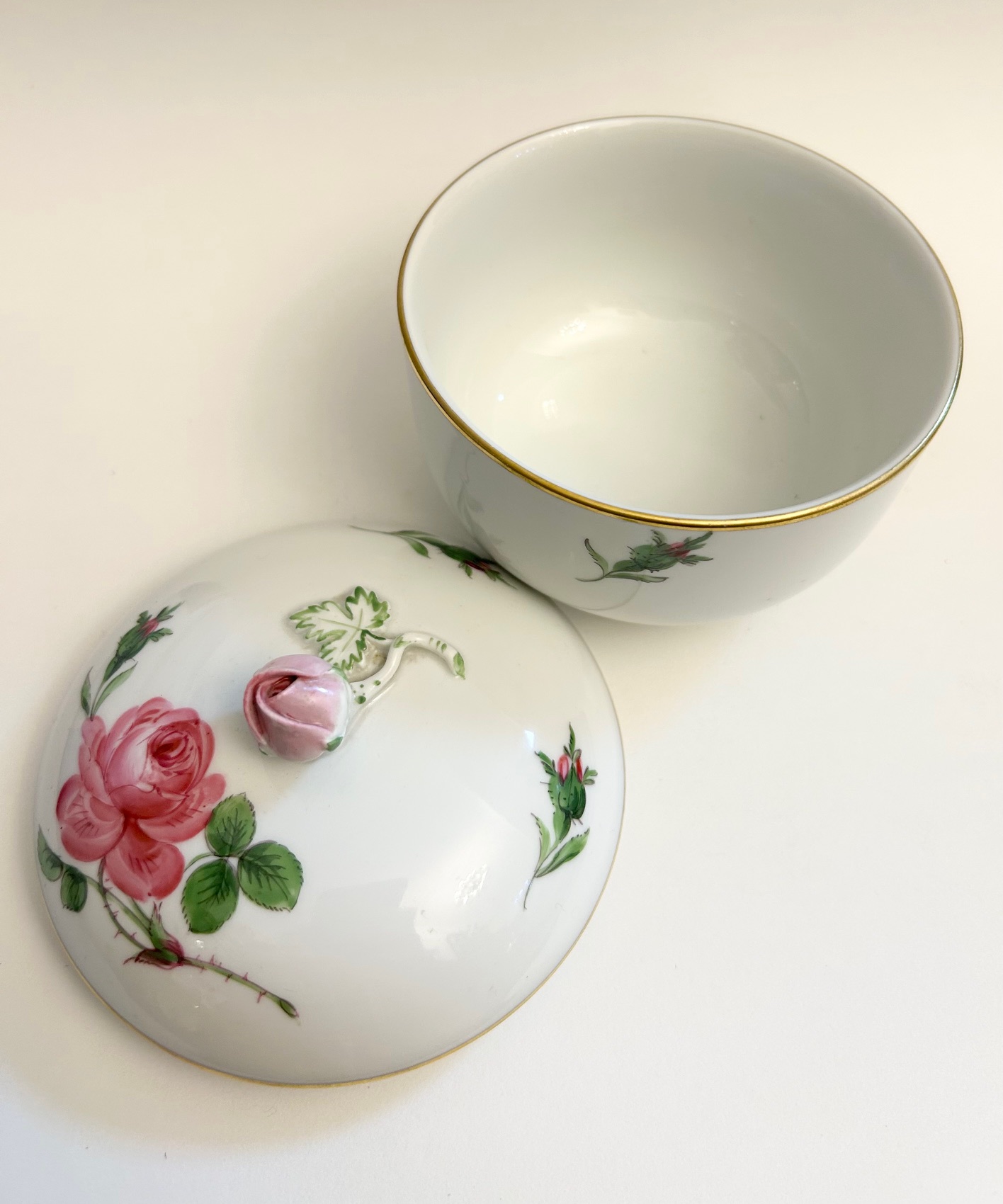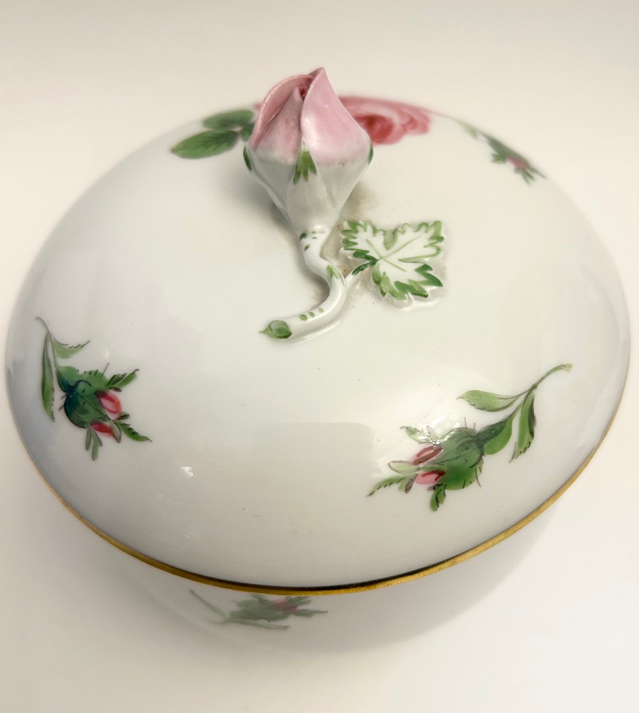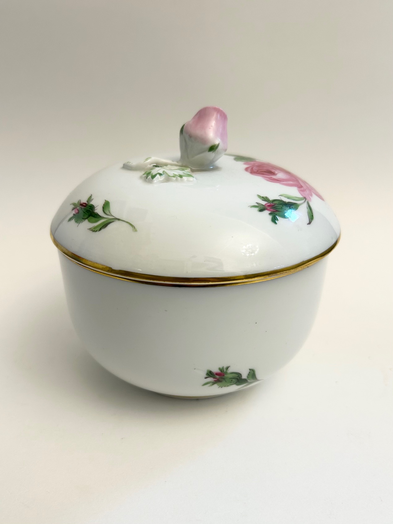 Porcelánová cukřenka Míšeň Značeno ze spodu klasickou značkou Míšně a dalšími určujícími prvky. 1. polovina 20. století Rozměry 10 x 10 cm
