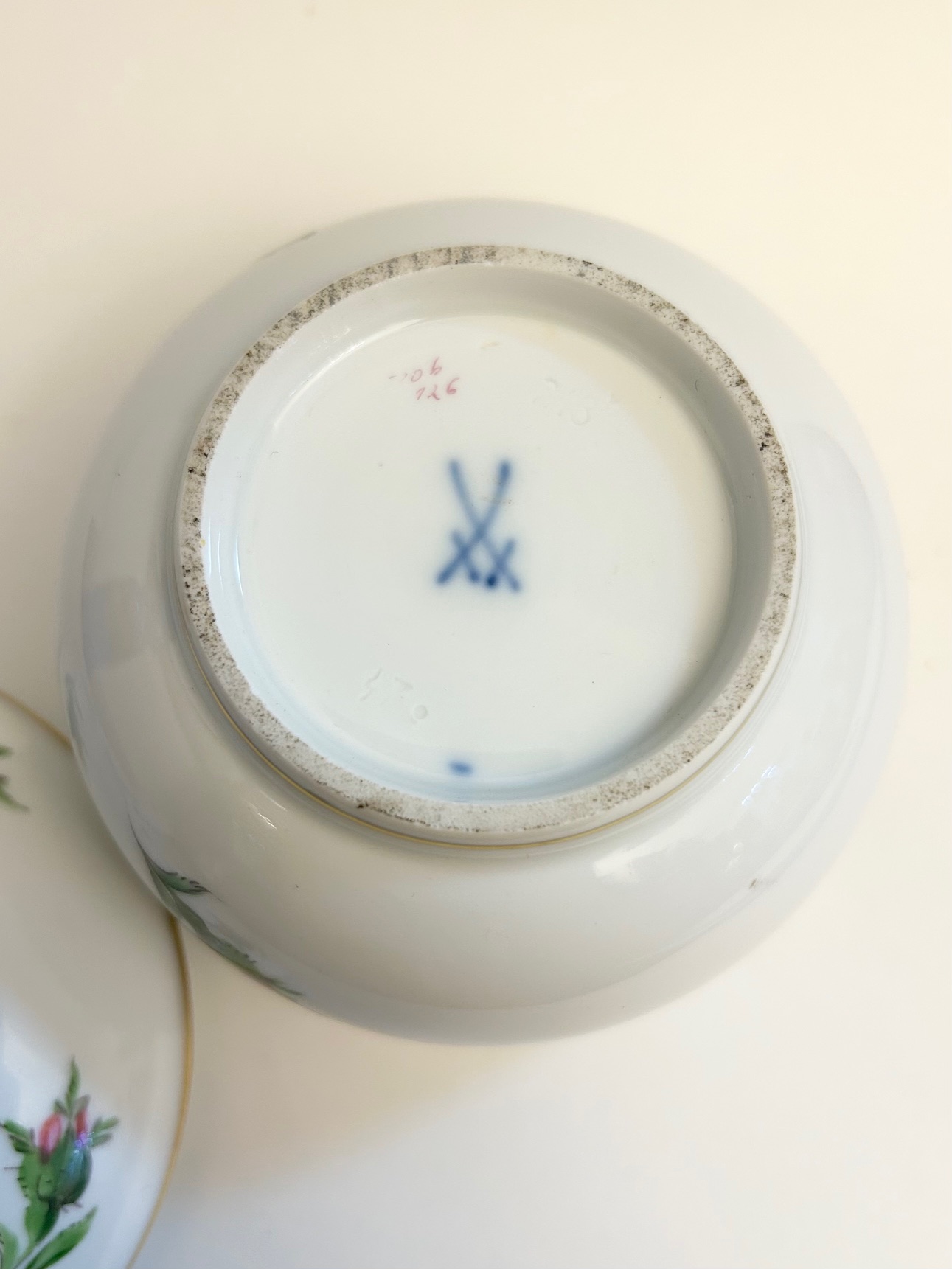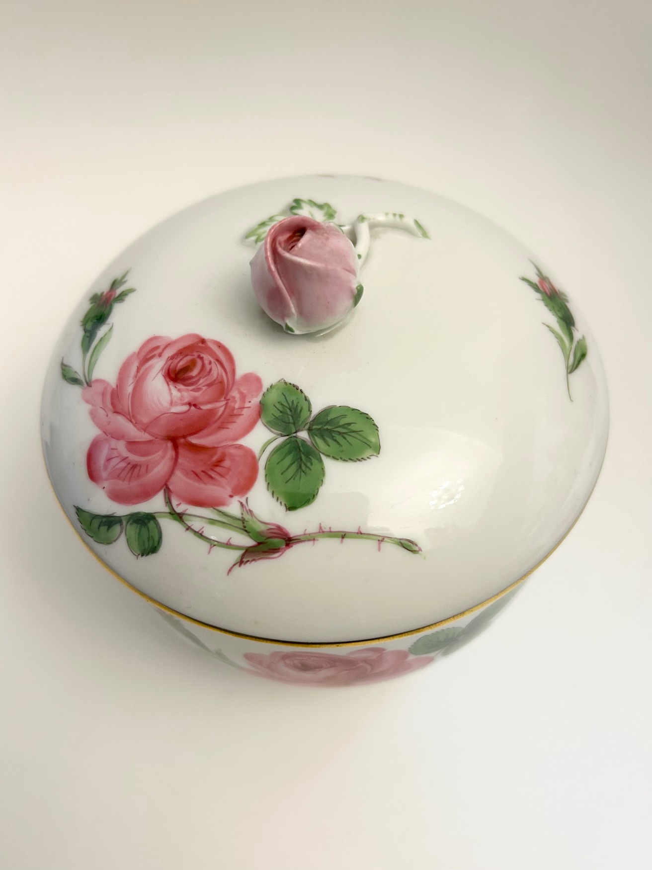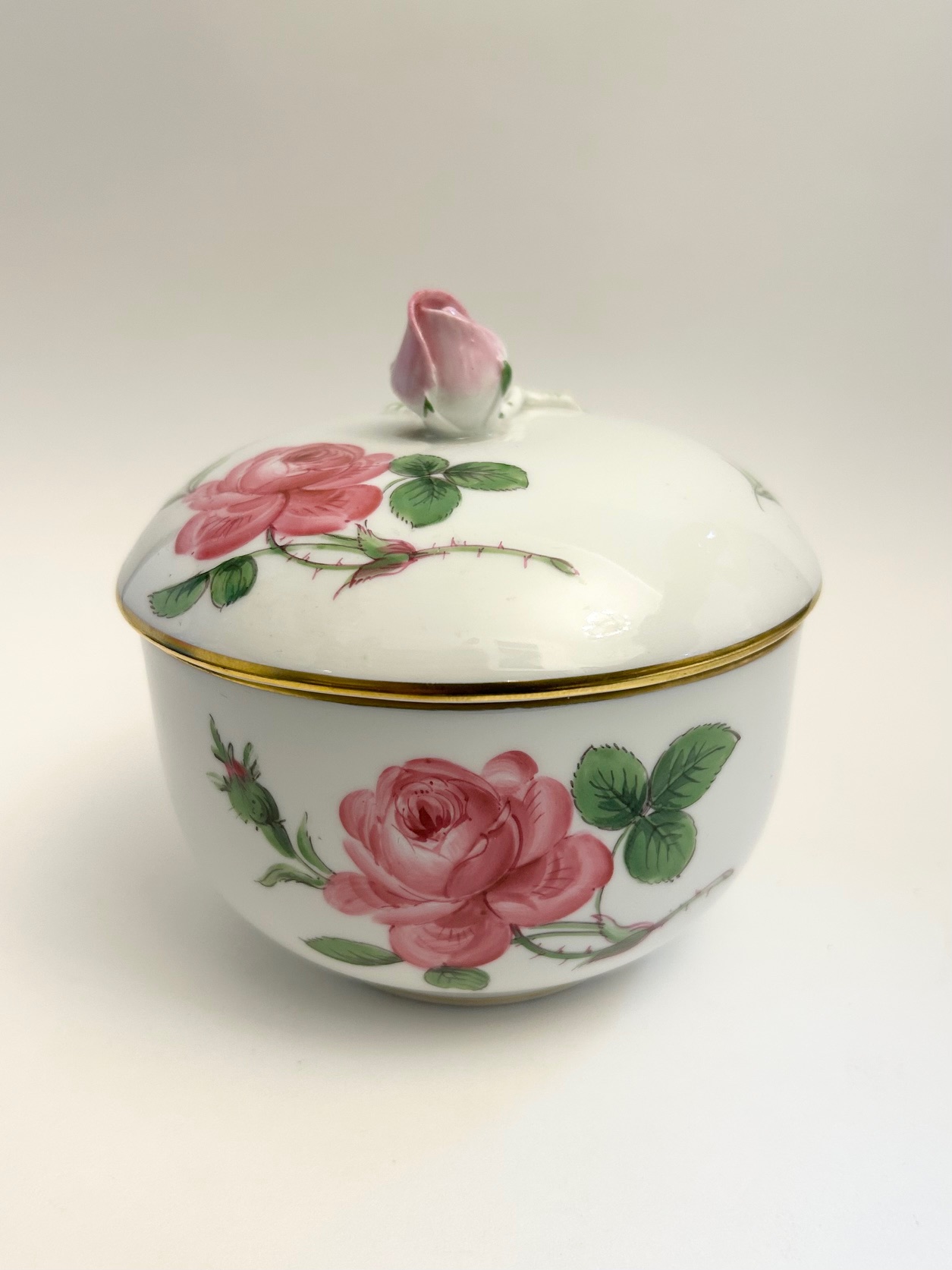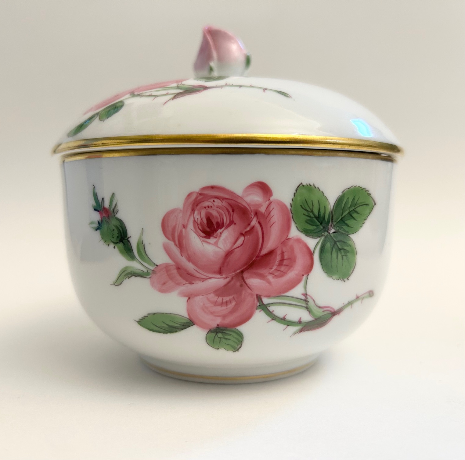 Porcelánová cukřenka Míšeň Značeno ze spodu klasickou značkou Míšně a dalšími určujícími prvky. 1. polovina 20. století Rozměry 10 x 10 cm