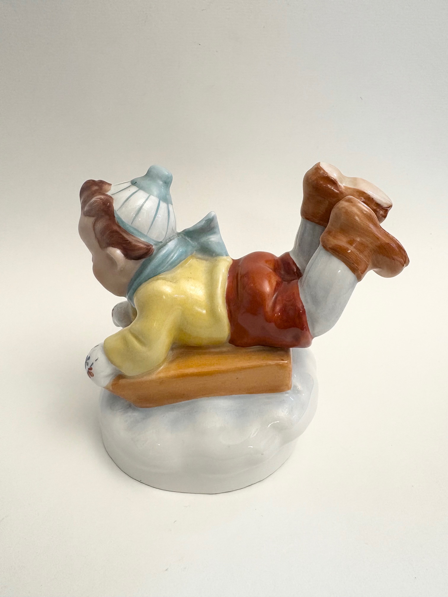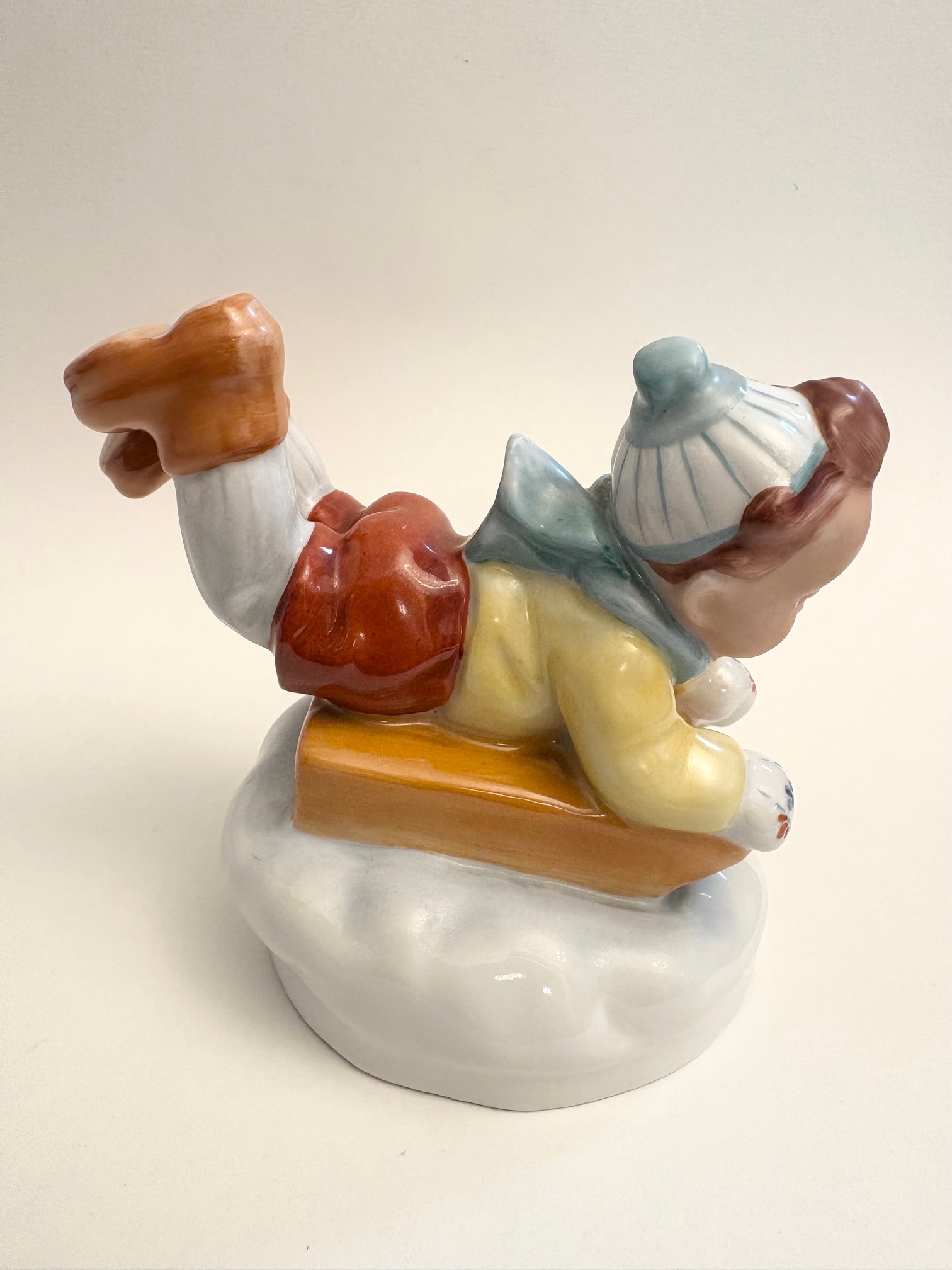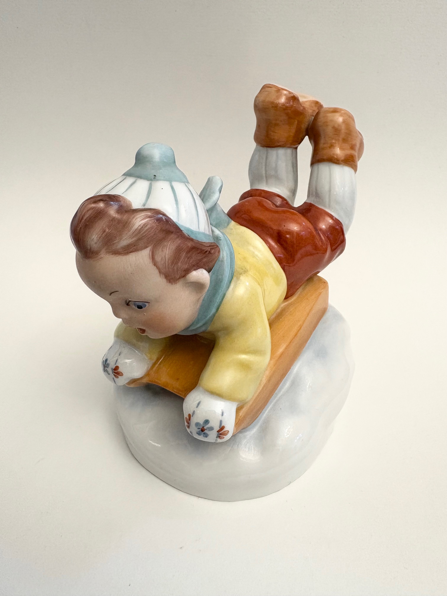 Porcelánová soška chlapce na sáňkách Royal Dux Rok 1930 Rozměr 11 x 11 cm