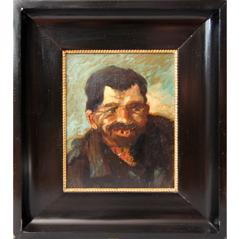 „Portrét tuláka“ – olej na malířské lepence,signatura nenalezena.Rozměry s rámem 52 x 44,5 cm.