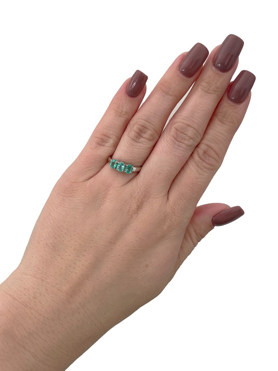 – 3 ks přírodních smaragdů, celková hmotnost 1,10 ct, ovál fasetový, rozměr 5 x 4 mm