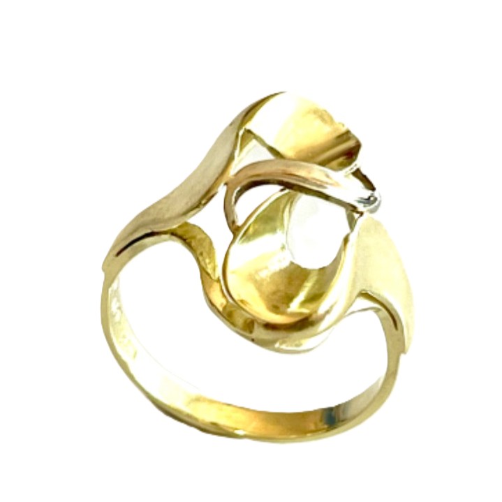Prsten zlatý žluto-bílé zlato punc Čejka Dámský zlatý prsten z kombinace žluto-bílého zlata ryzost 14 karátů – AU 585/1000, váha prstenu 3,45 gramů, punc Čejka. Velikost prstenu 54