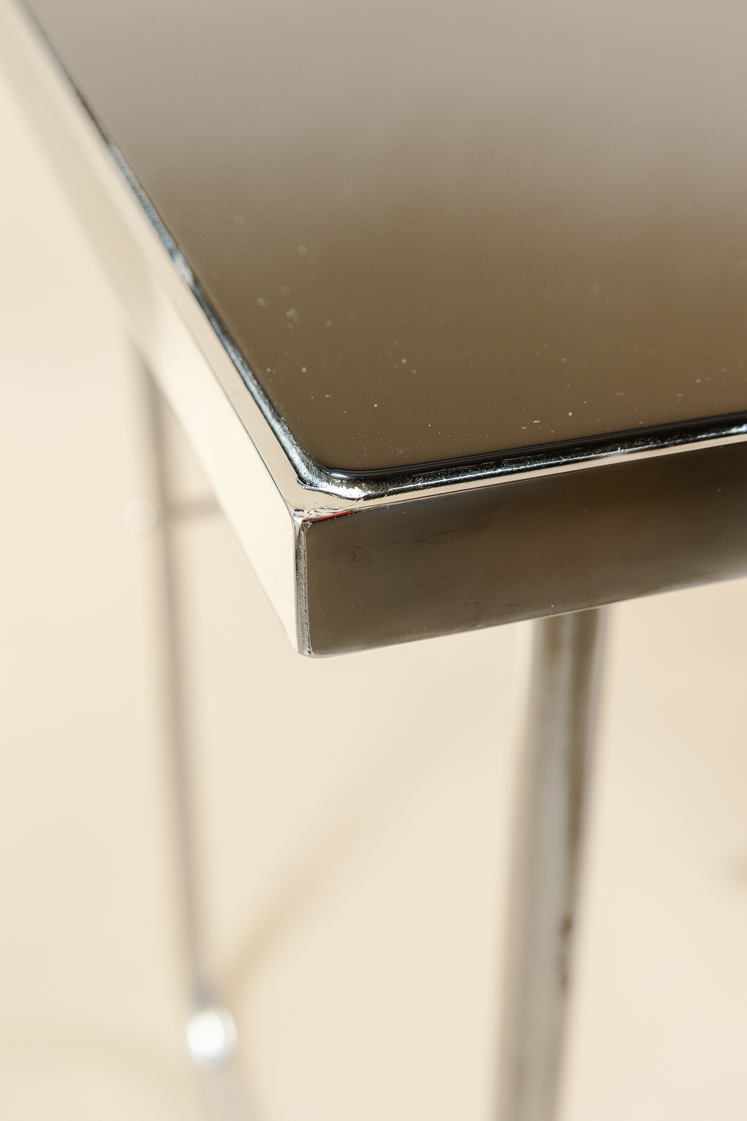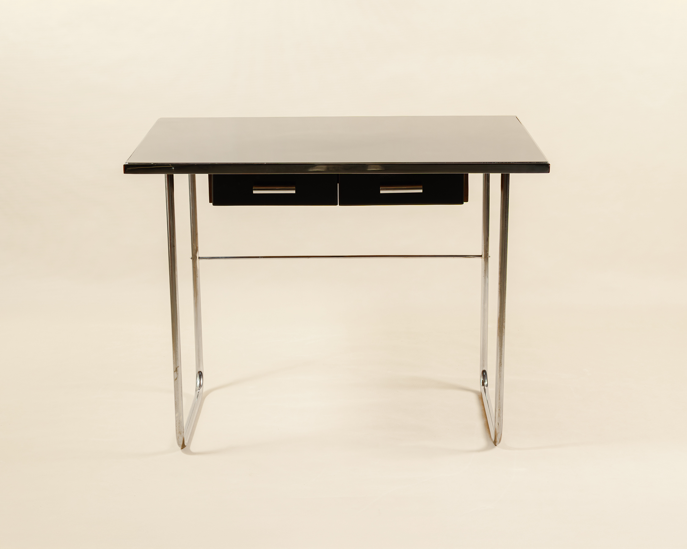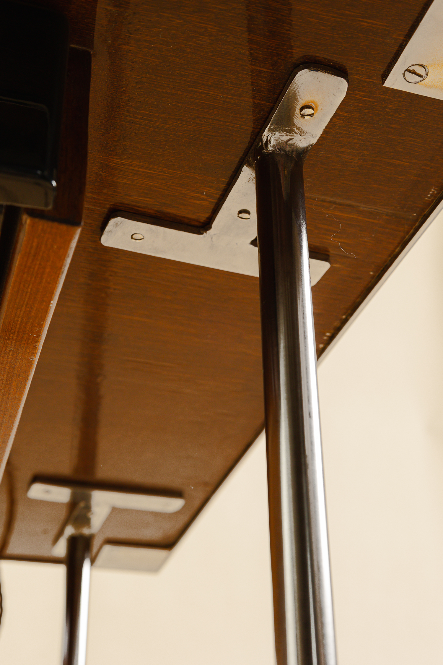 Materiál -chromováná trubková ocel, laťová překlížka, kovový lem.