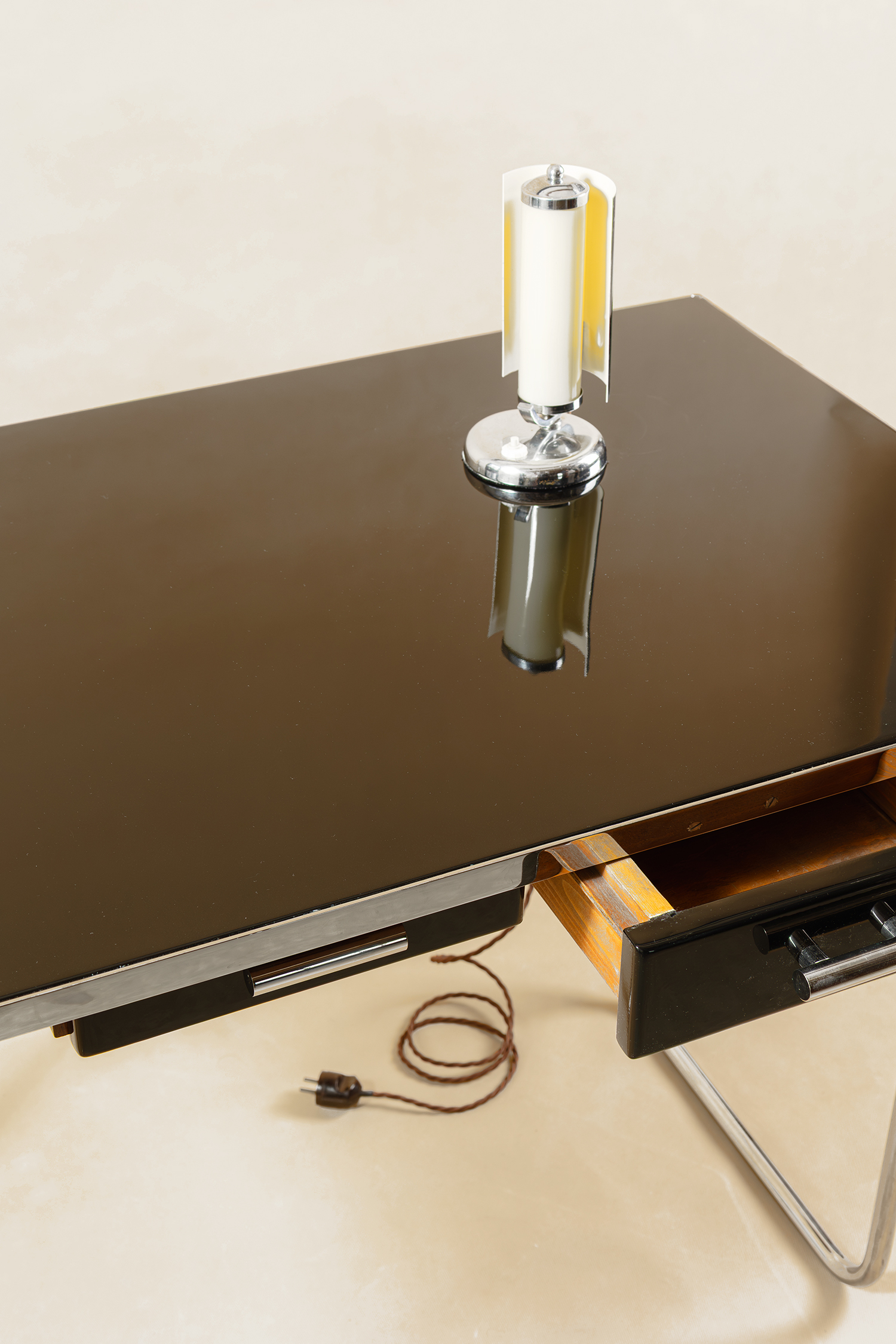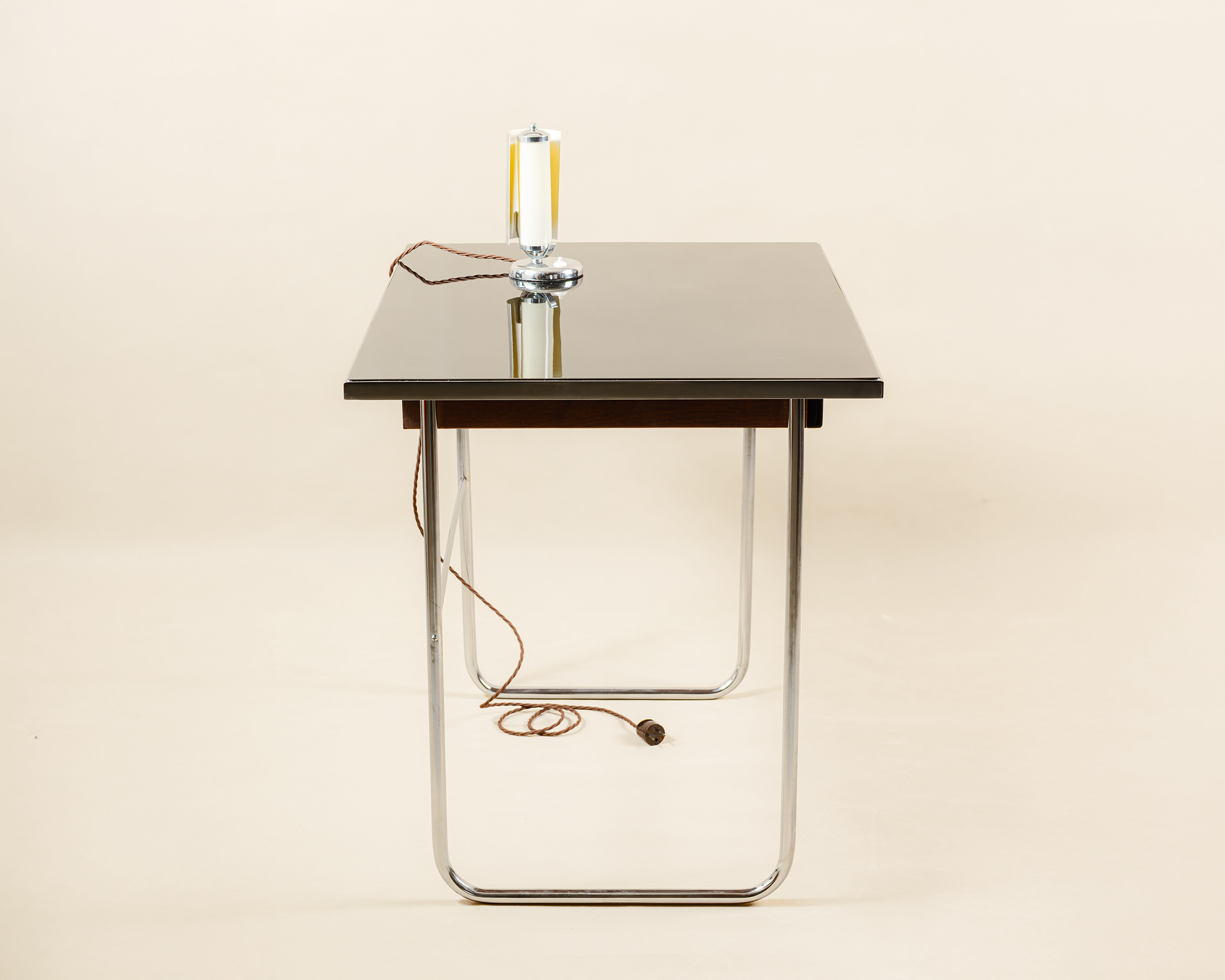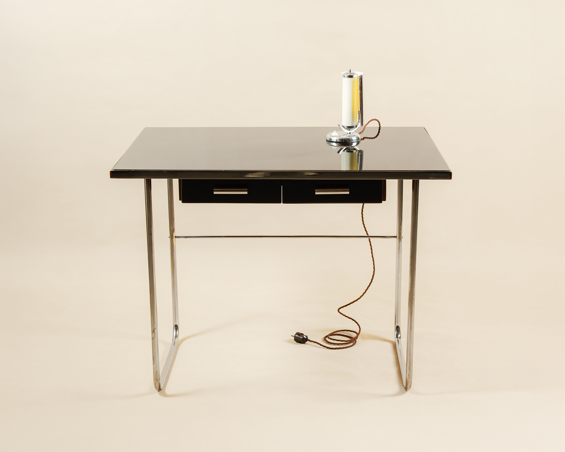 Materiál -chromováná trubková ocel, laťová překlížka, kovový lem.