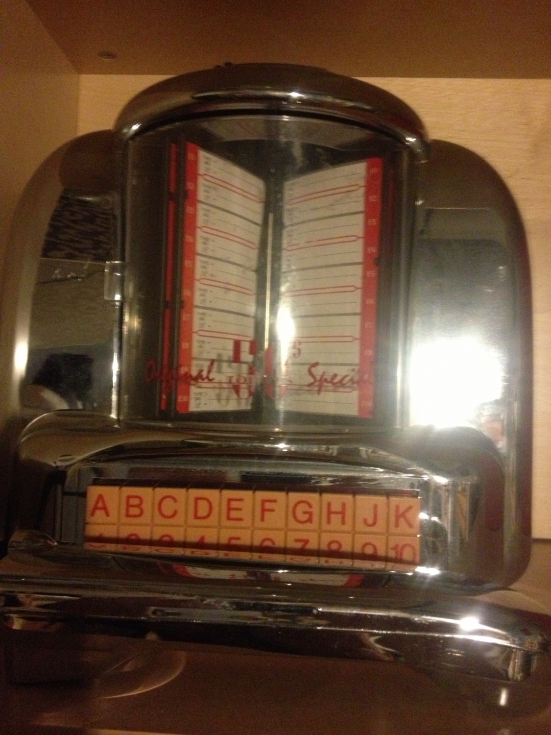 ZAJÍMAVĚ ZKOMBINOVANÝ TELEFON V HUDEBNÍ SKŘÍŃI,OTVÍRACÍ DVÍŘKA JSOU POUŽITY NA ADRESÁŘ,U JUKEBOXU TAM BYL PLAYLIST,VÝŠKA CCA 37CM,MOŽNOST ZAVĚSIT NA ZEĎ,VELMI DEKORATIVNÍ,SLUCHÁTKO JE ZAVĚŠENÉ ZE STRANY