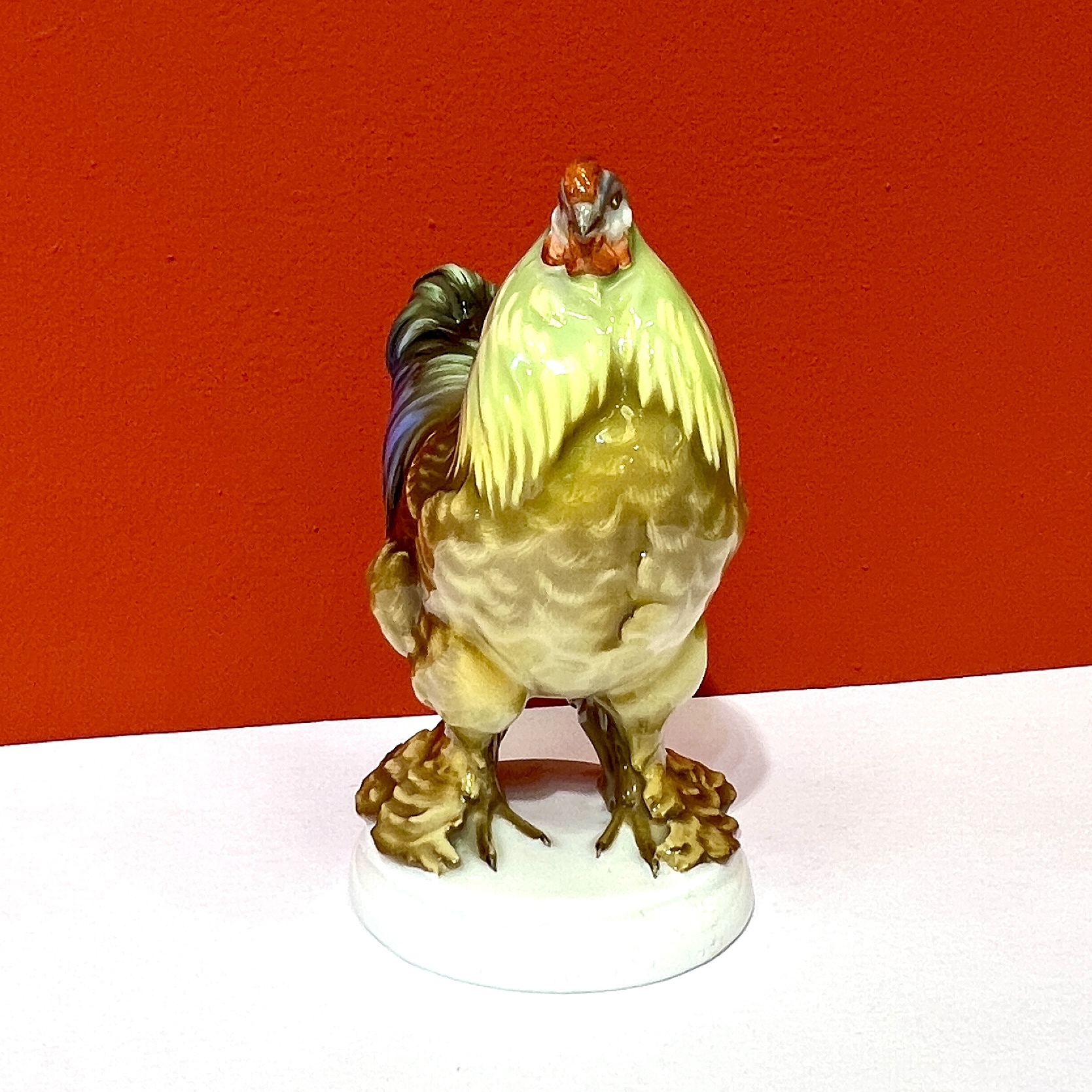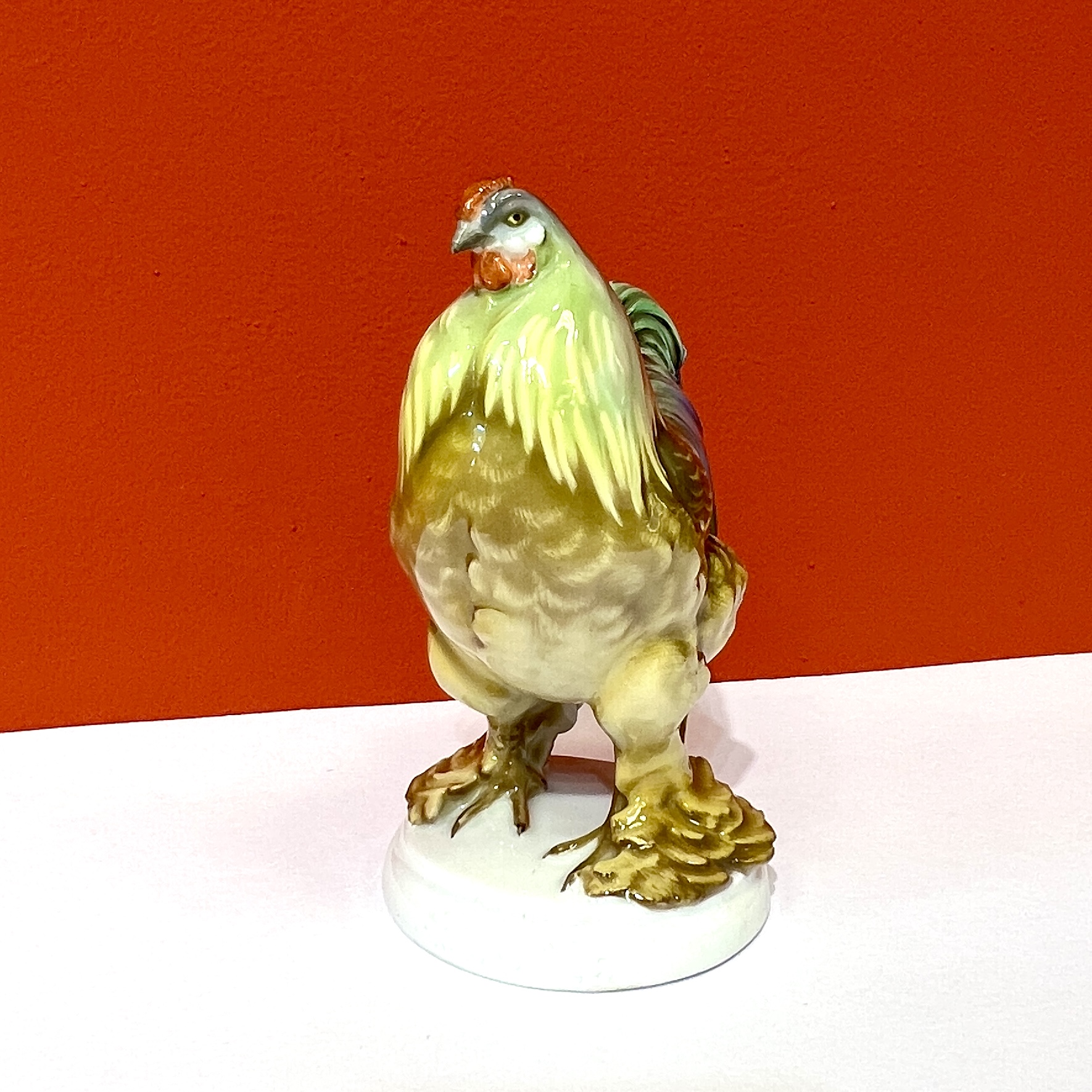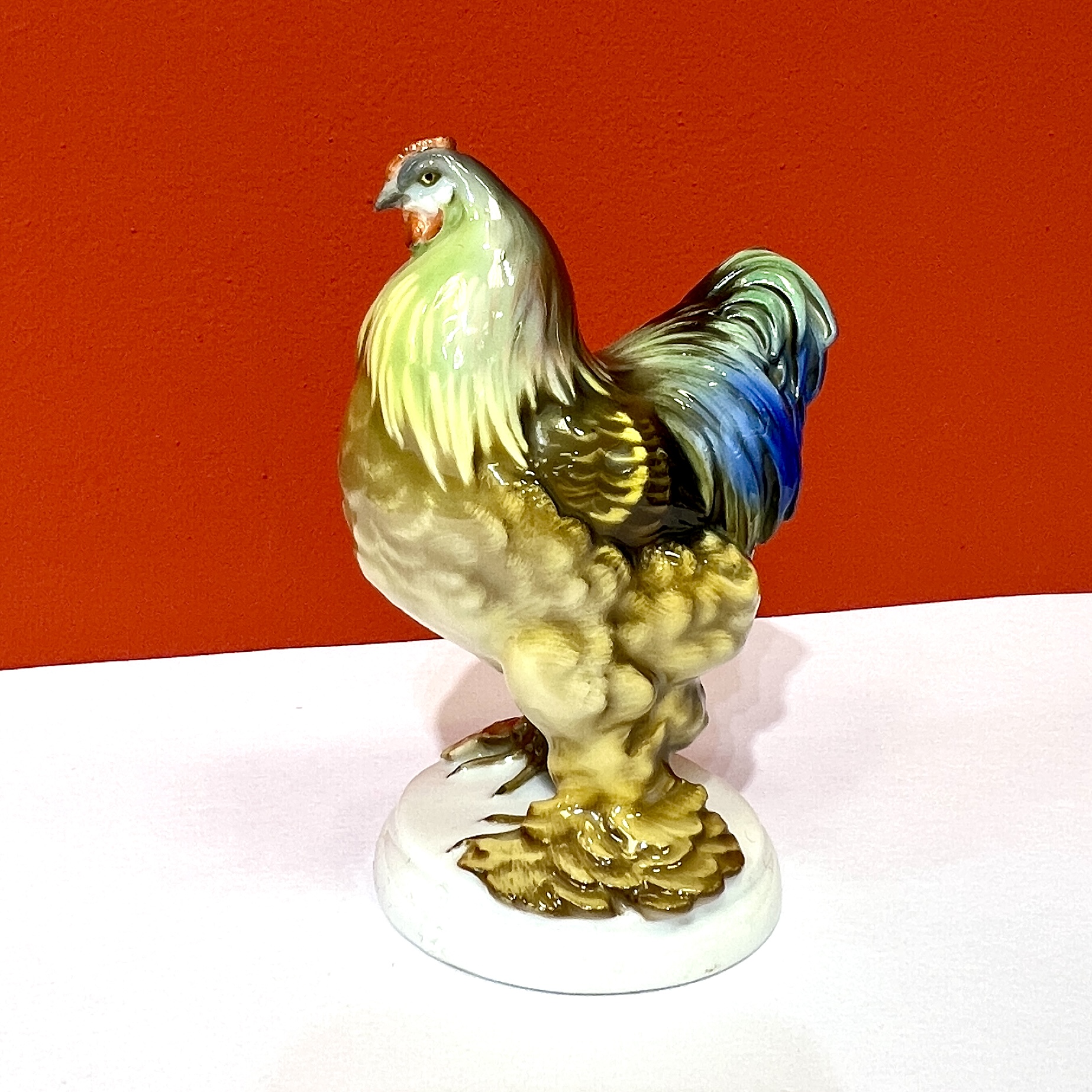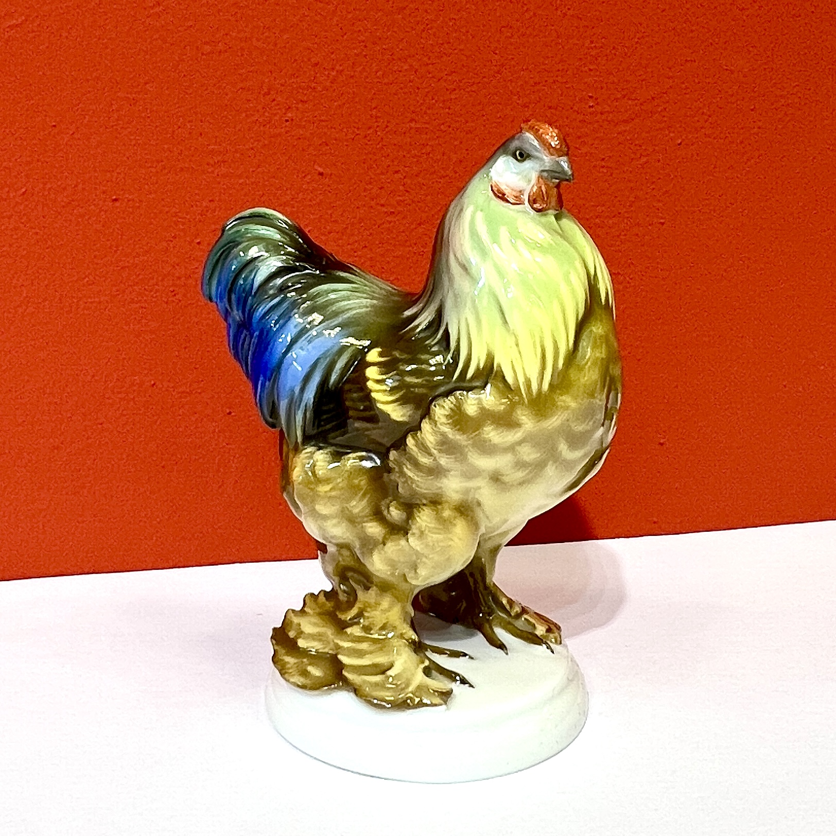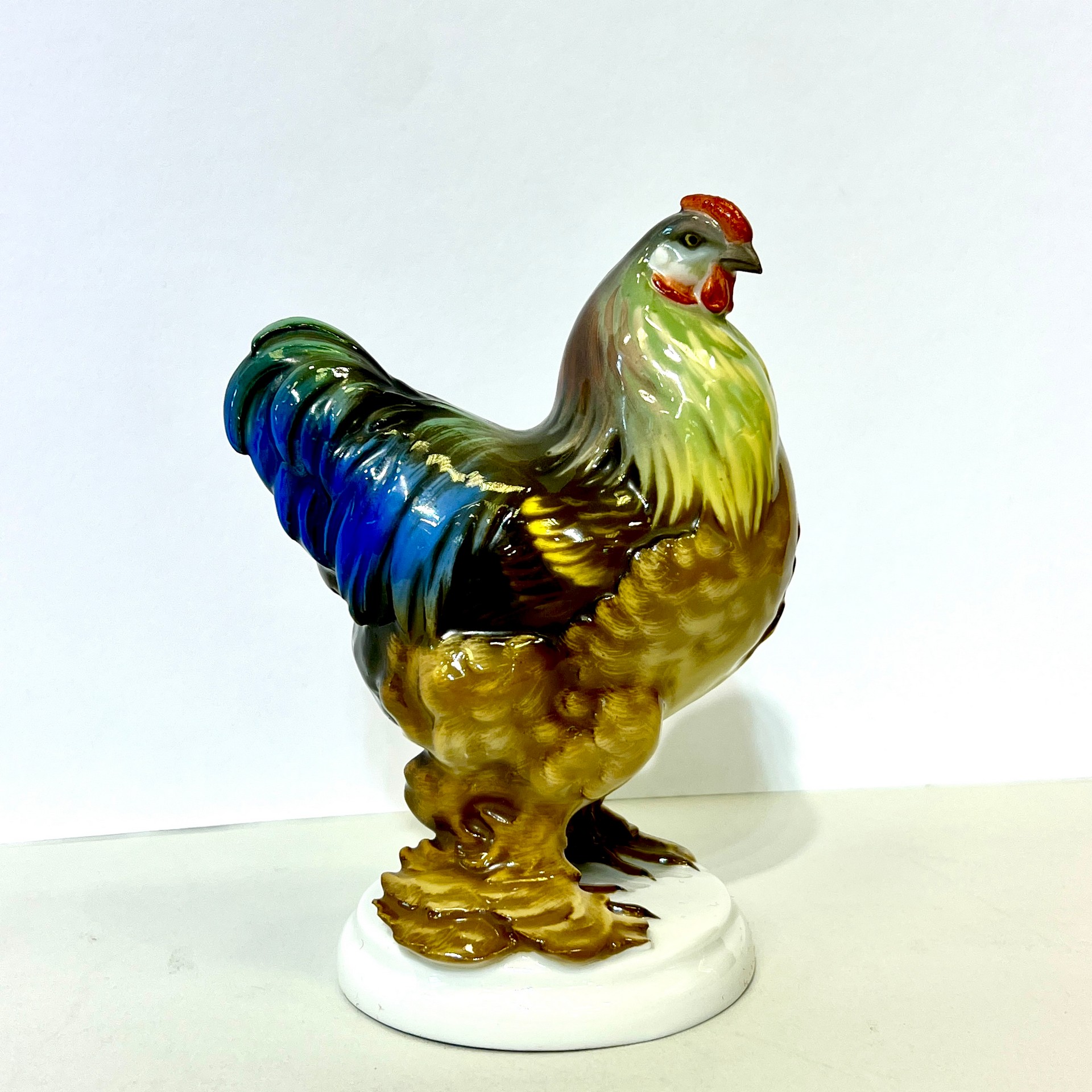 Nádherná barevná porcelánová plastika slepice
