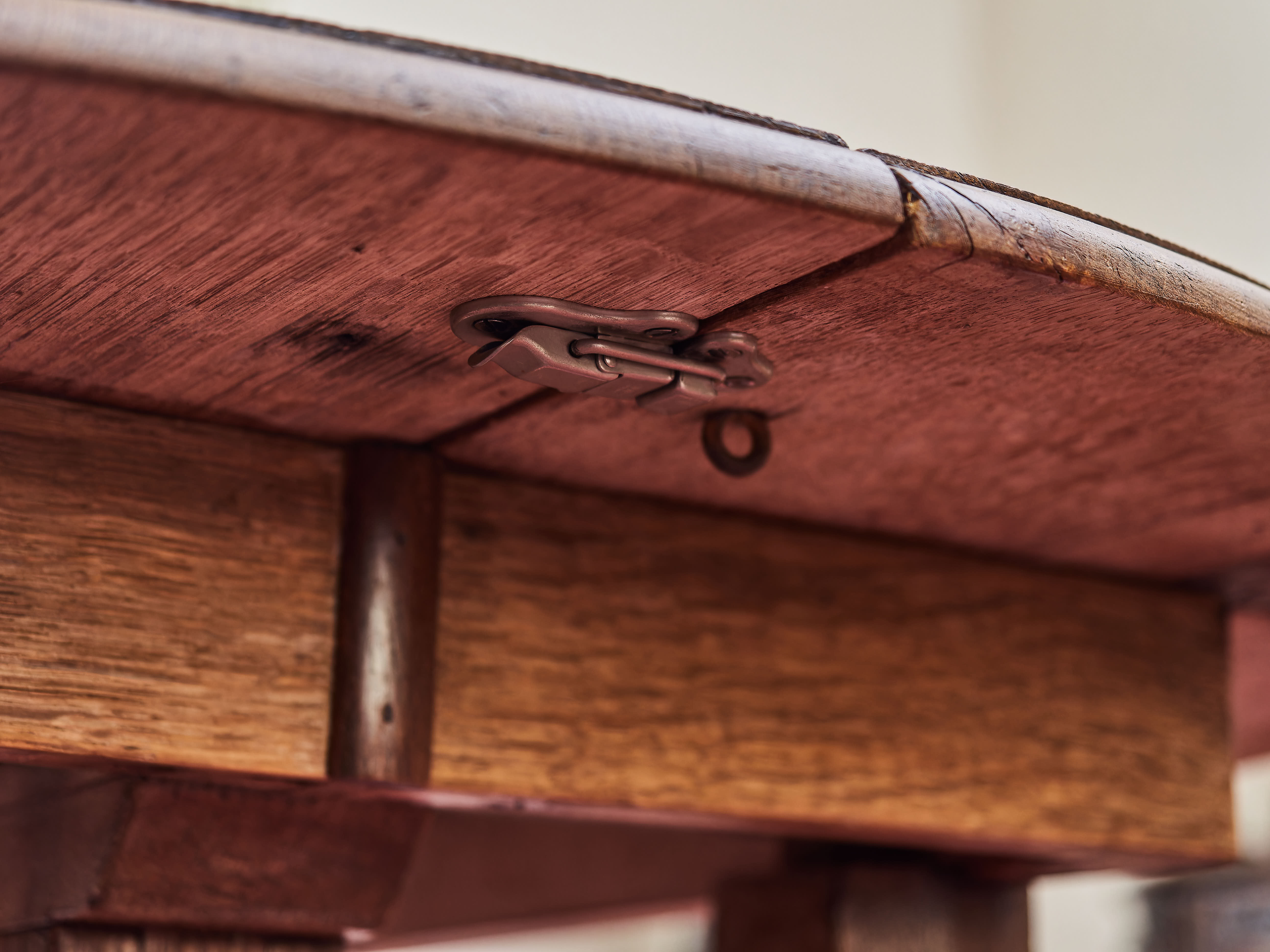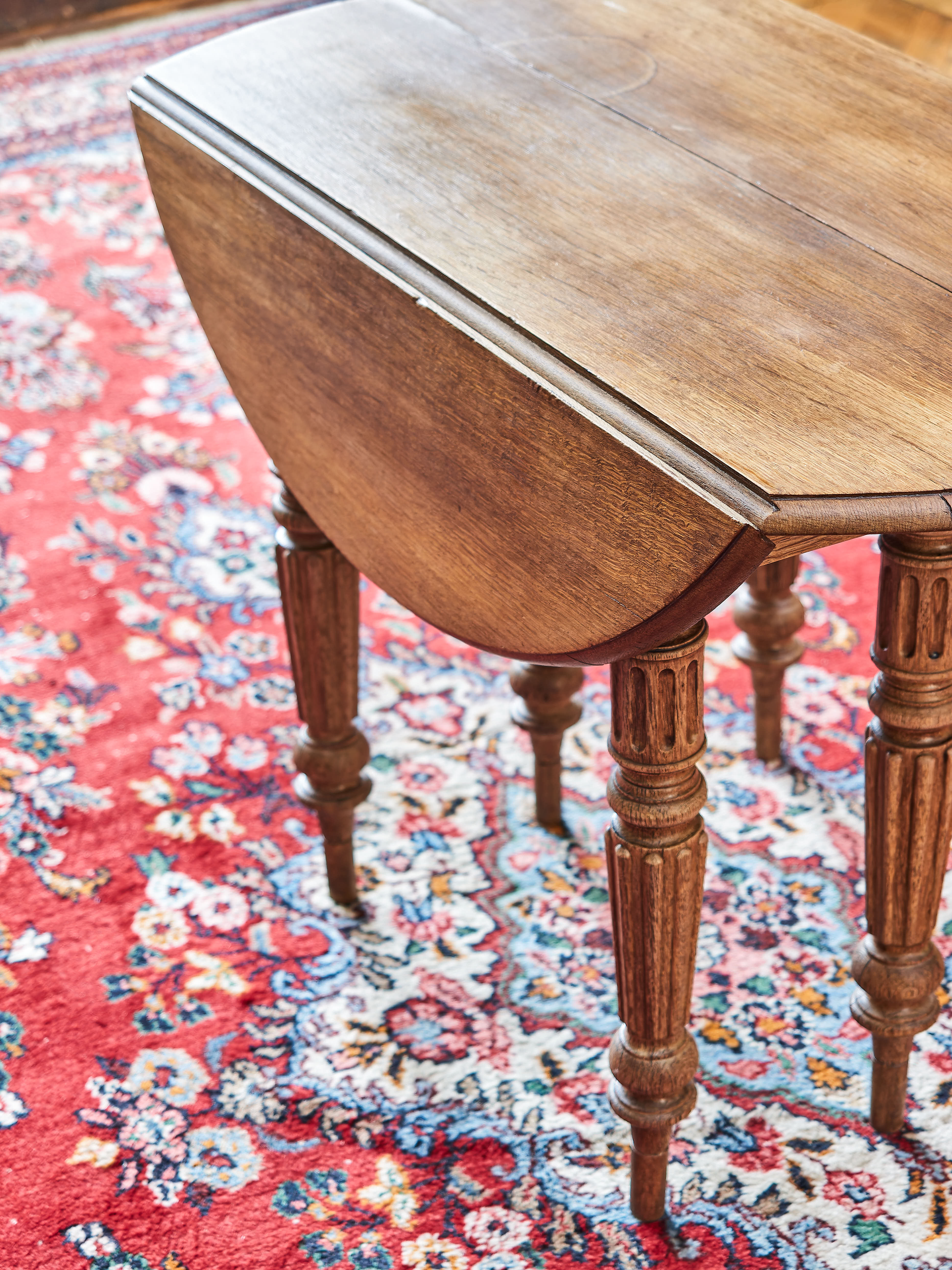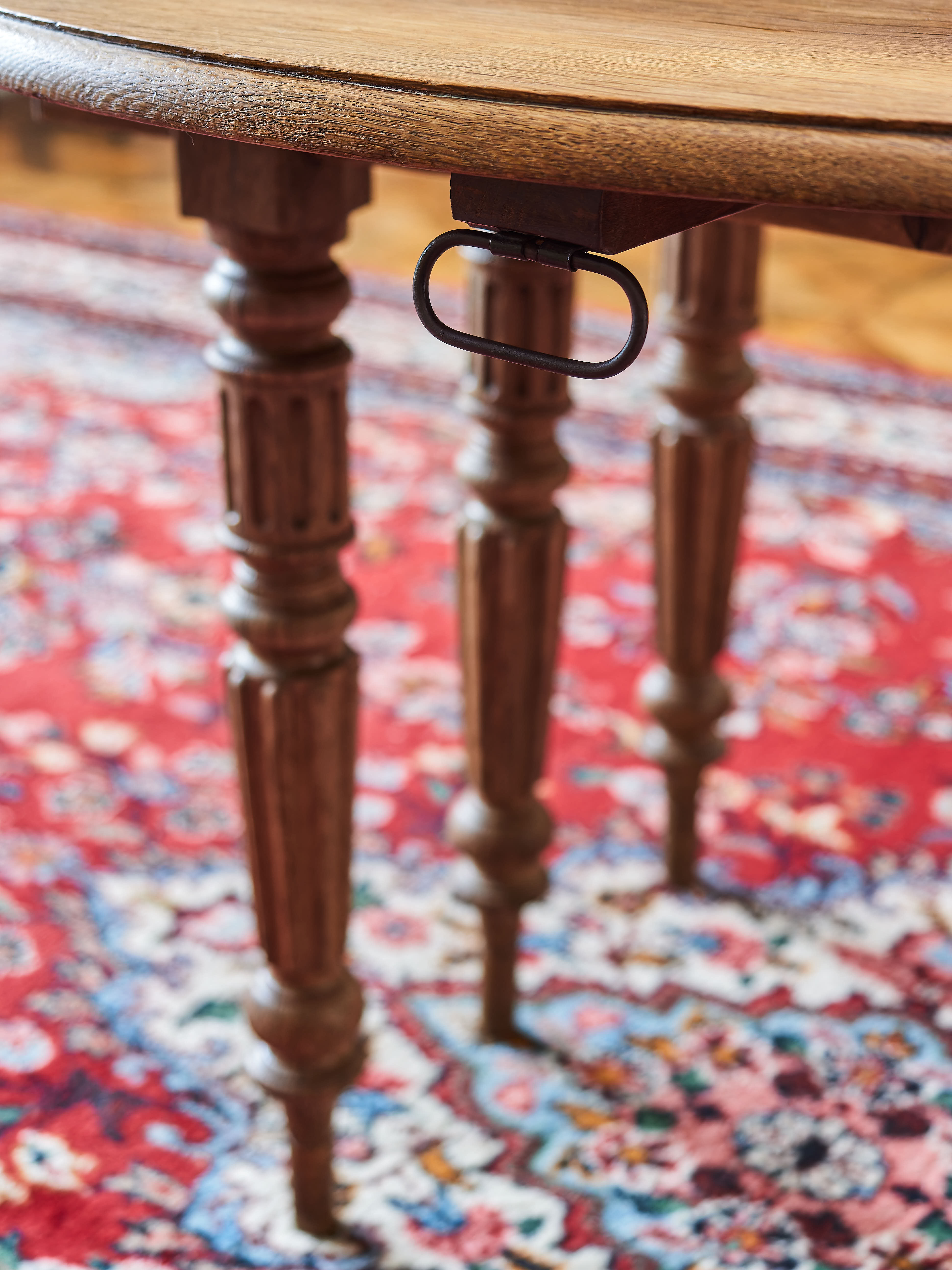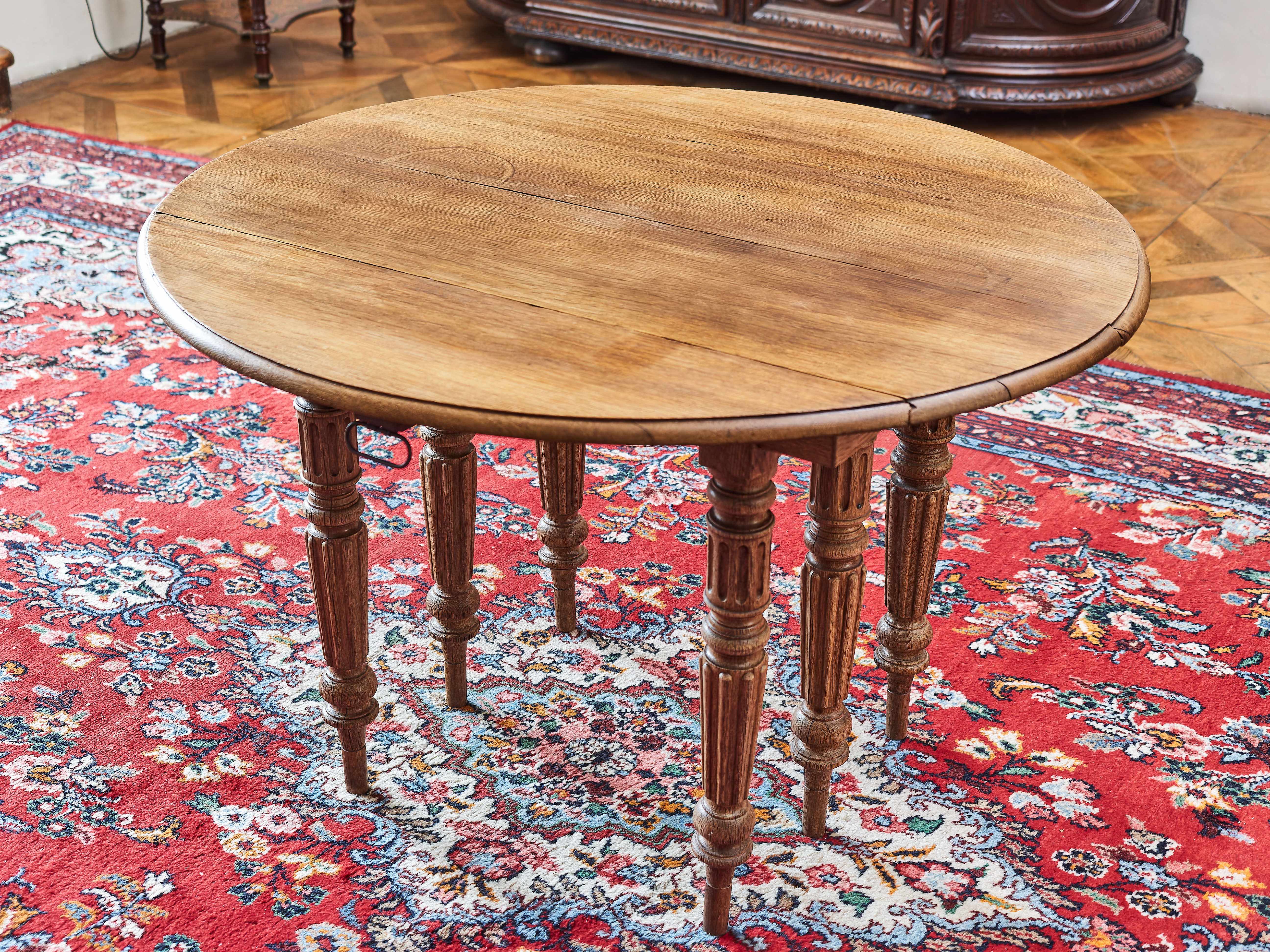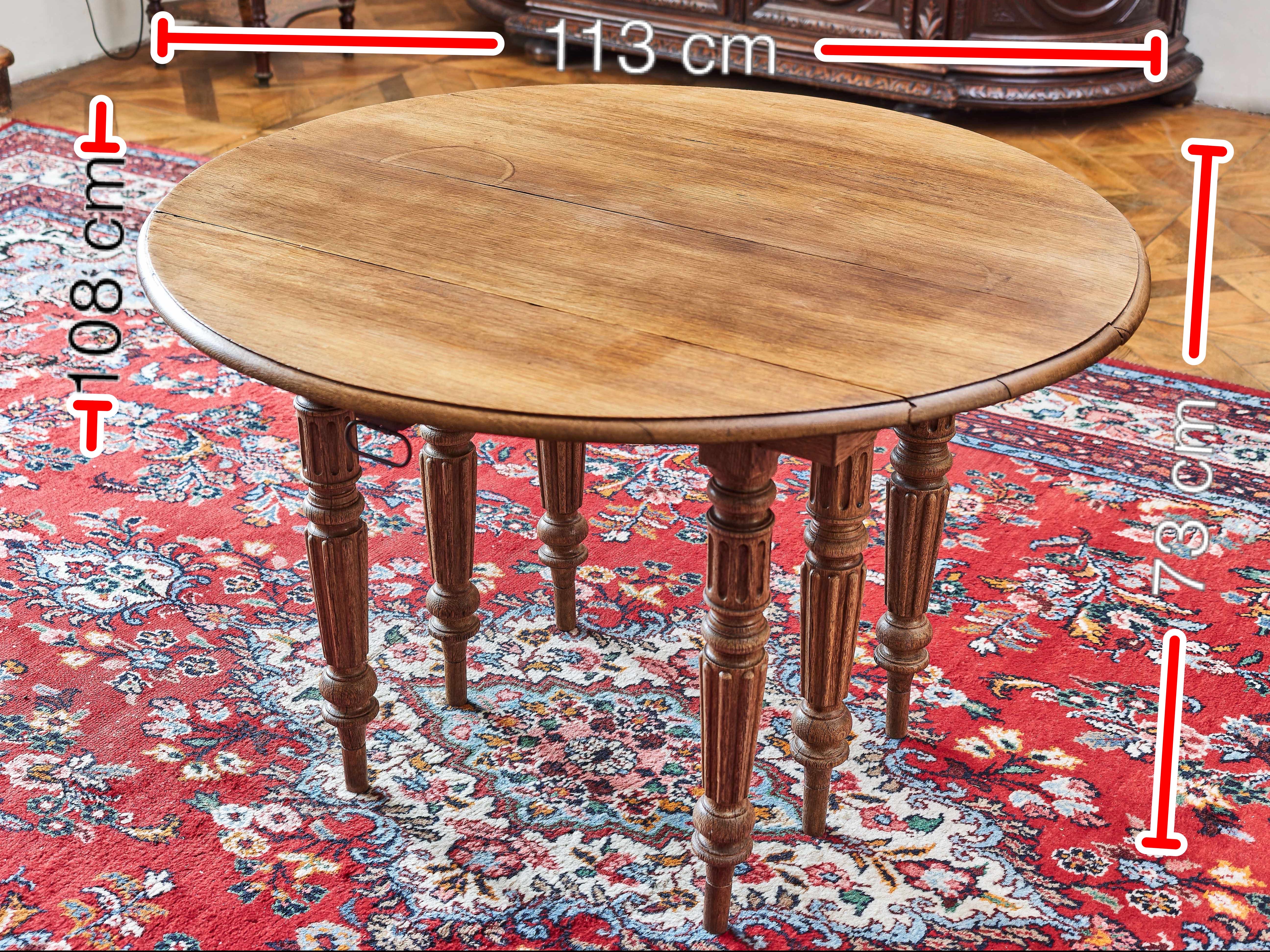 Tento nádherný rozkládací dubový stůl, známý jako Gate Leg Table, je vynikajícím příkladem praktického a estetického nábytku. Jeho design pochází z 17. století a dodnes je oblíbený díky své funkčnosti a elegantnímu vzhledu.