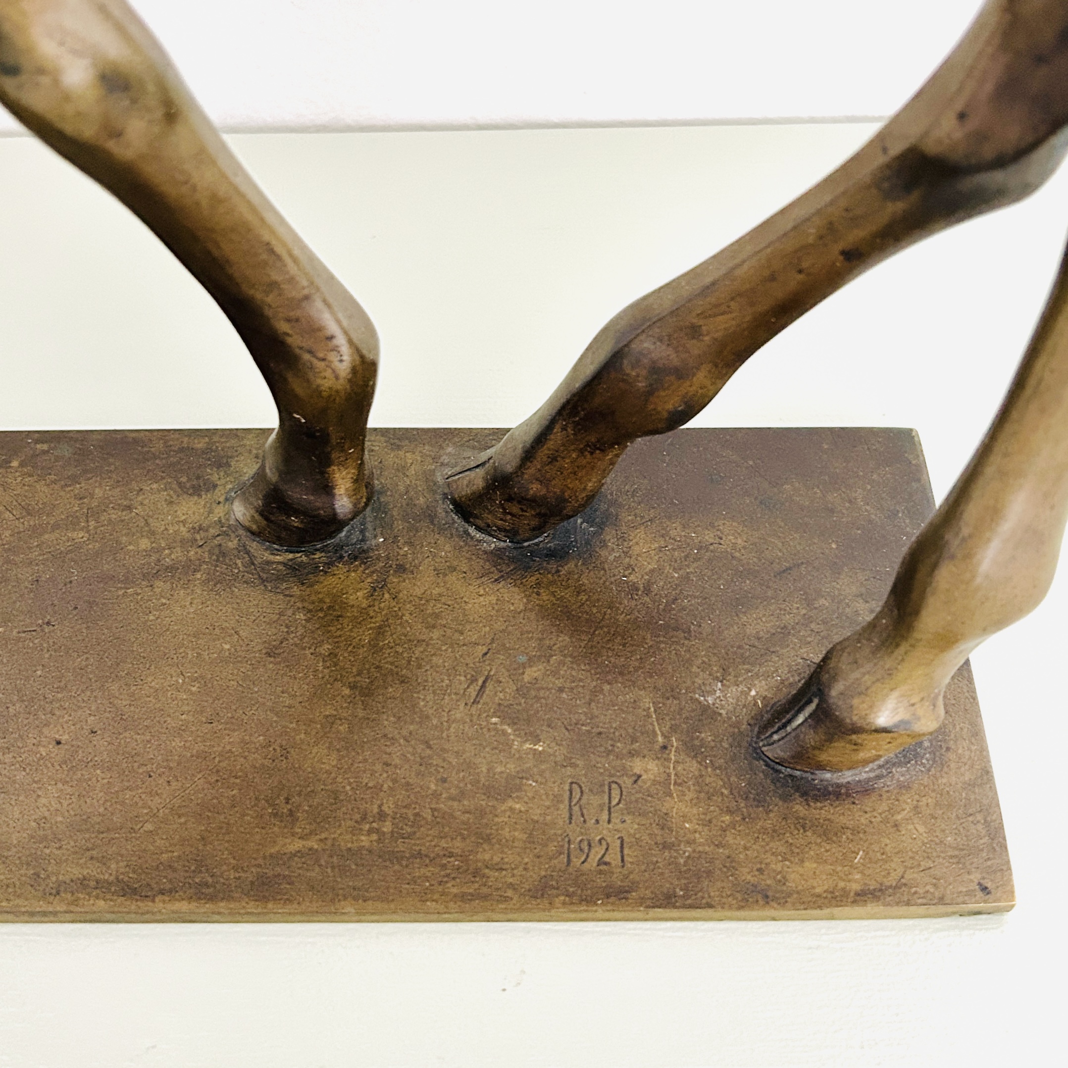 Bronz světleji patinovaný. Signováno frontálně na podstavci „R. P 1921.“. Výška 33 cm, délka 33 cm, délka podstavce 27 cm, šířka 10 cm. V zachovalém stavu.