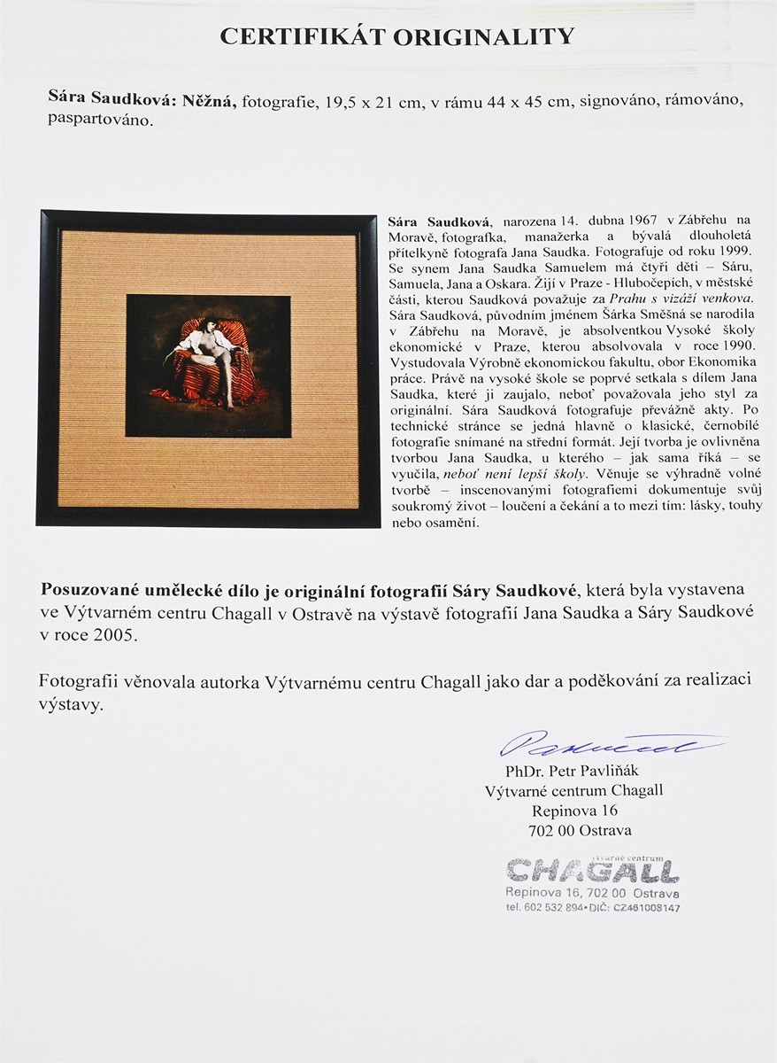 Popis Technika: fotografie (originální) Rozměry: 19,5 × 21 cm (s rámem 44 × 45 cm) Signatura: signováno PD Stav: výborný